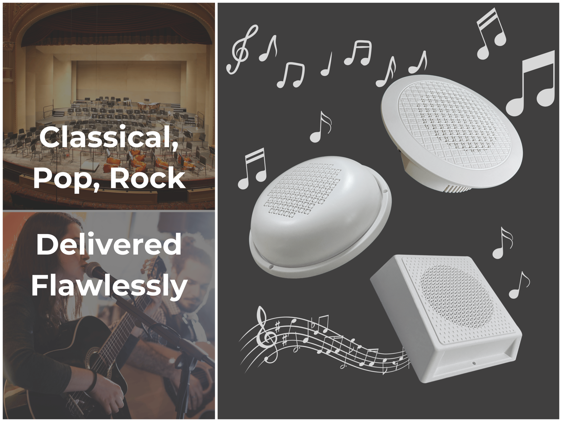 This speaker series is currently deployed at key locations across the globe, including government facilities and other mission-critical environments. With annual production volumes in the millions, it stands as a trusted solution for large-scale audio infrastructure. This collection is also ideal for a wide range of environments, including schools, shopping malls, train stations, and other public or commercial spaces where dependable audio performance is essential.
