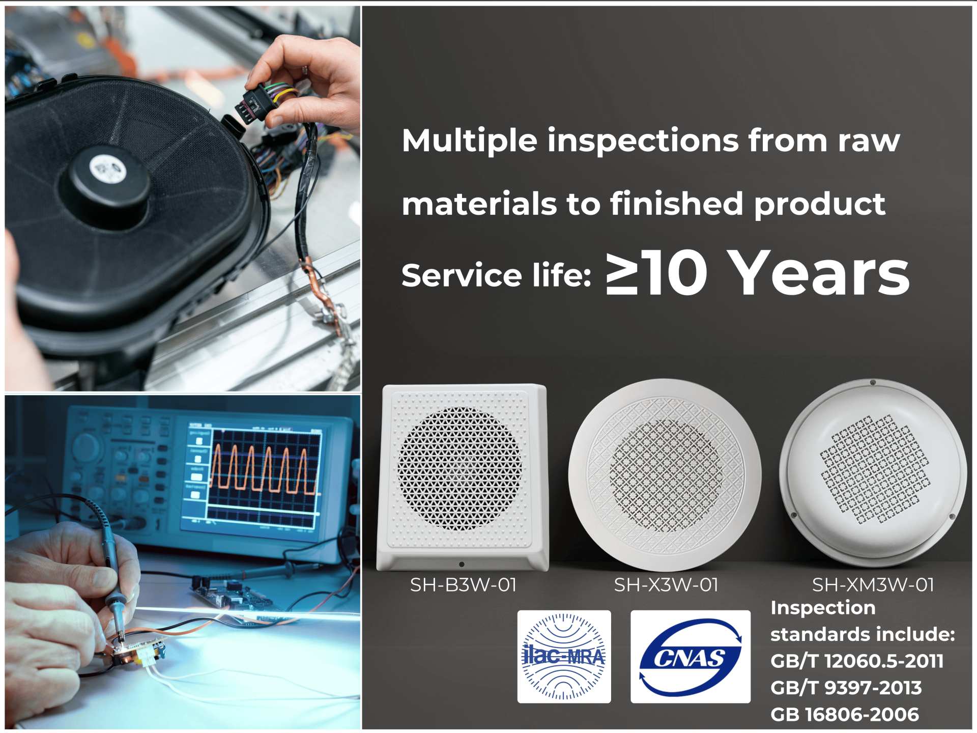 From raw materials to finished products, each unit undergoes multiple layers of inspection to ensure top-tier quality and compliance with international standards. Built to last, our speakers offer exceptional durability and a service life of over 10 years, making them a reliable choice for any professional audio setup.