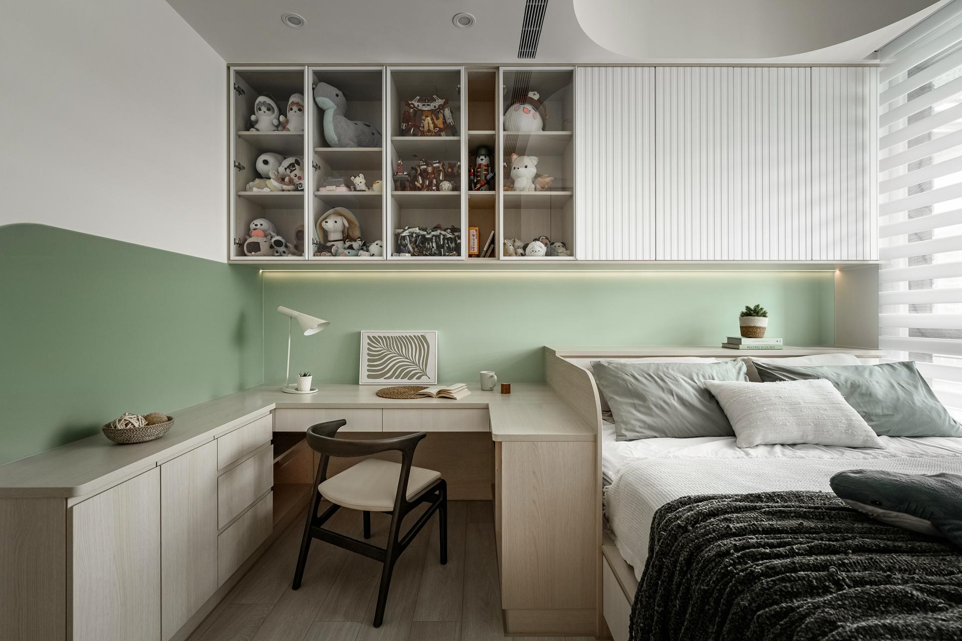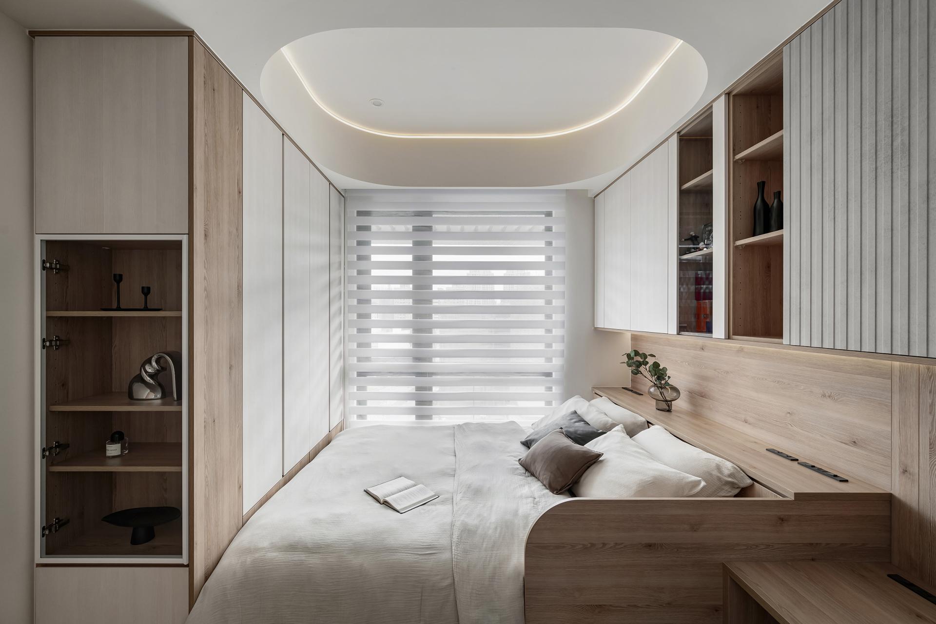 Just as a cherished book reveals marks and creases with every rereading, a home too accumulates its own folds over time. In this project, the designer employed curved forms to evoke the flow of time and the turning of pages. As residents move through the space, there’s a sense of anticipation for the “next page” of their story—each favorite scene or moment prompting the creation of a small, folded corner. Elements such as the daybed and display cabinets become those little “nooks” that the family naturally folds into their daily life, gradually accumulating the unique story of home.