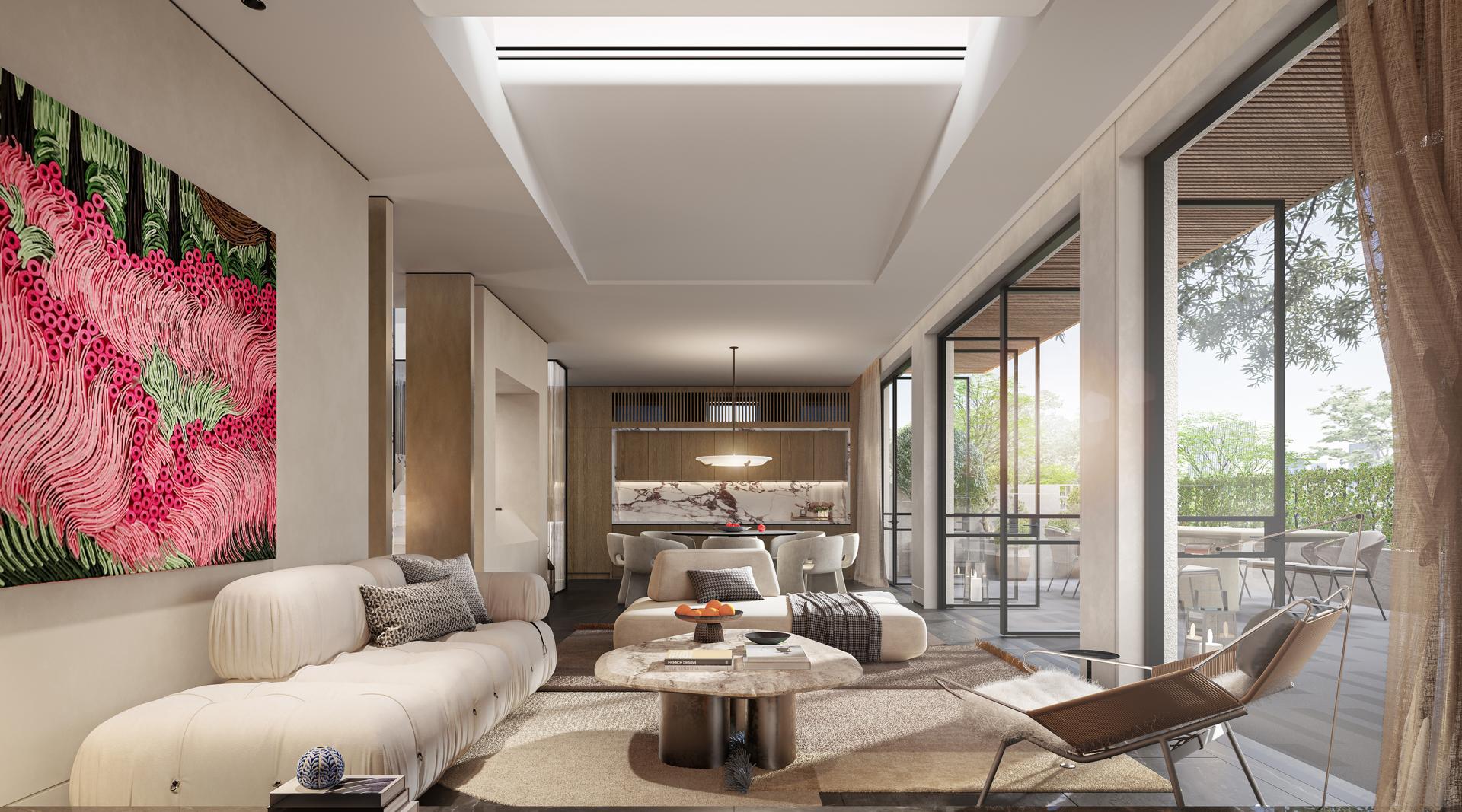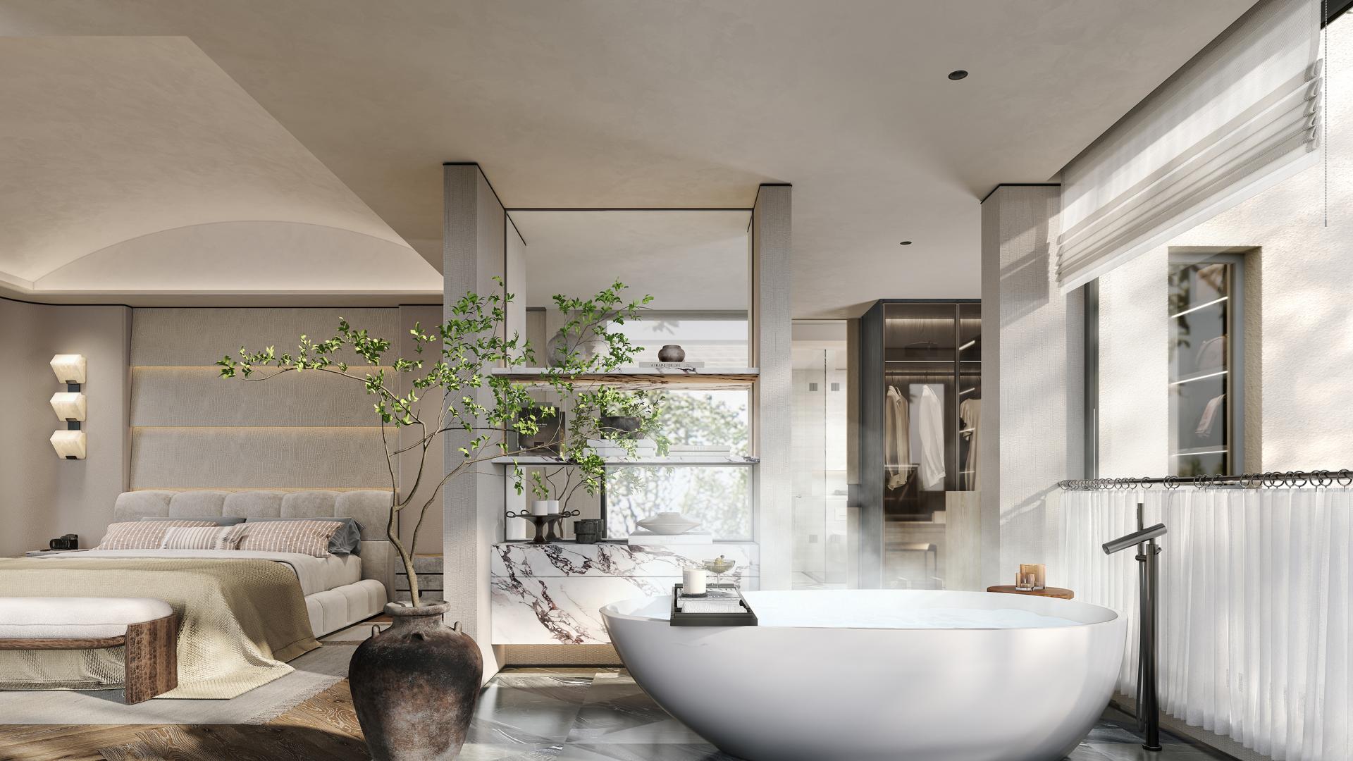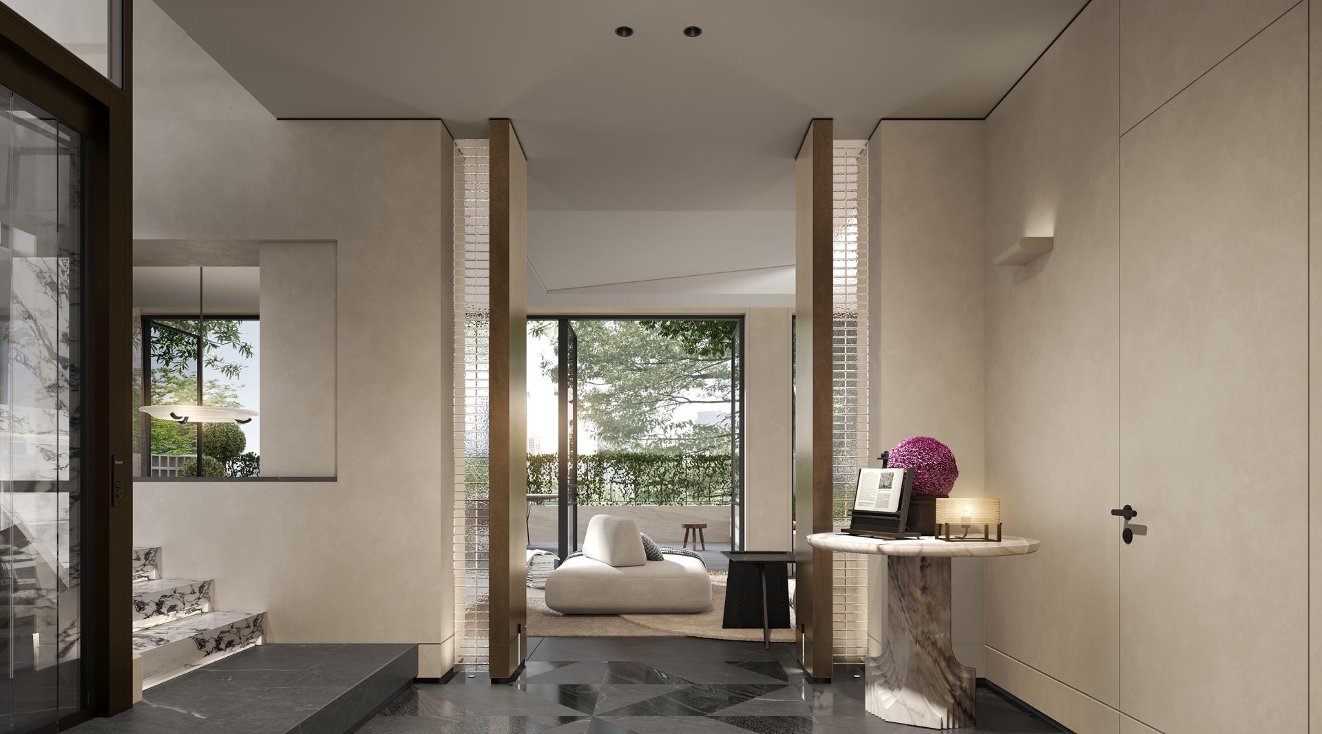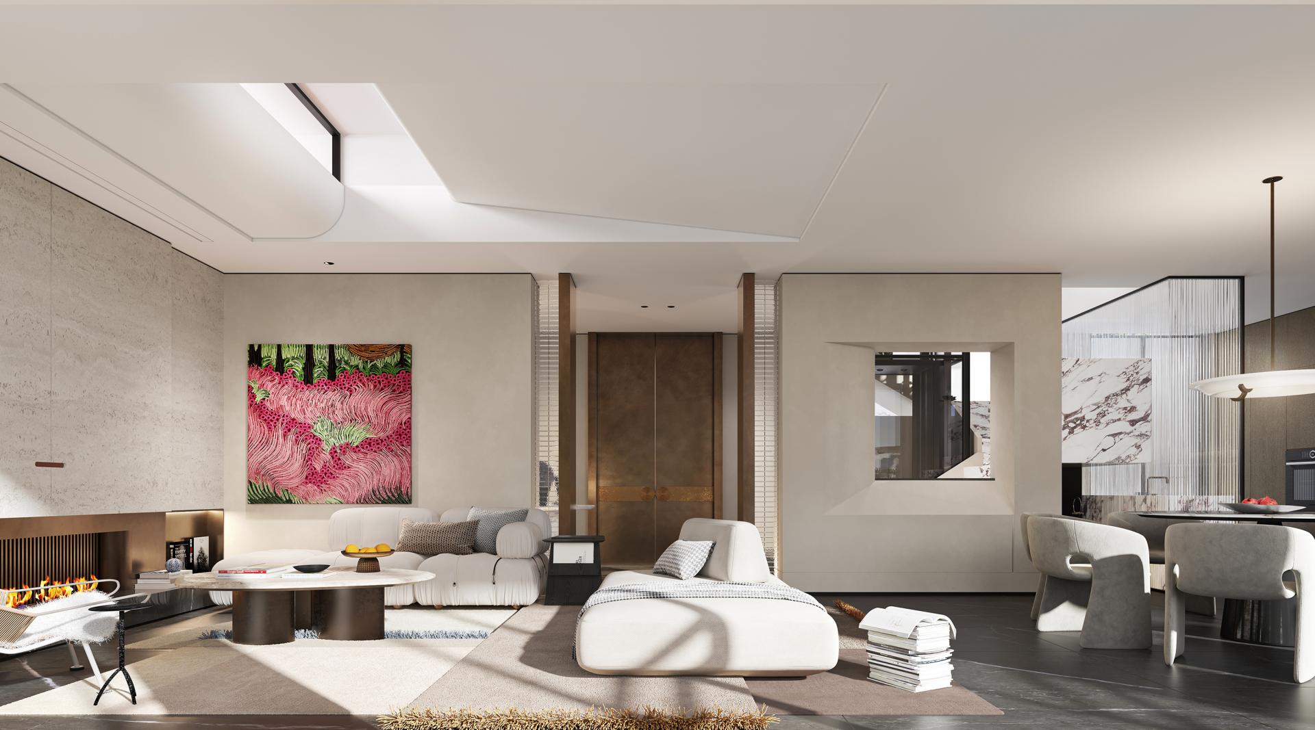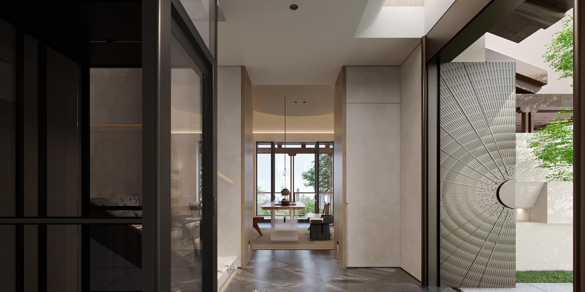 This project centers on the concept of “modern relaxation,” integrating nature, comfort, and humanistic care into spatial details through in-depth communication with the client. Inspired by Swiss architect Peter Zumthor’s philosophical focus on subtlety, the design begins with a meticulously crafted door handle at the courtyard entrance, weaving a natural narrative that connects indoor and outdoor spaces. Dual-entry foyers, the master bathroom, and other areas feature stone mosaics with fruit and botanical motifs, while key walls incorporate fruit-themed artistic elements. Soft curves and organic forms dissolve architectural rigidity, creating a space that embodies “natural growth.”