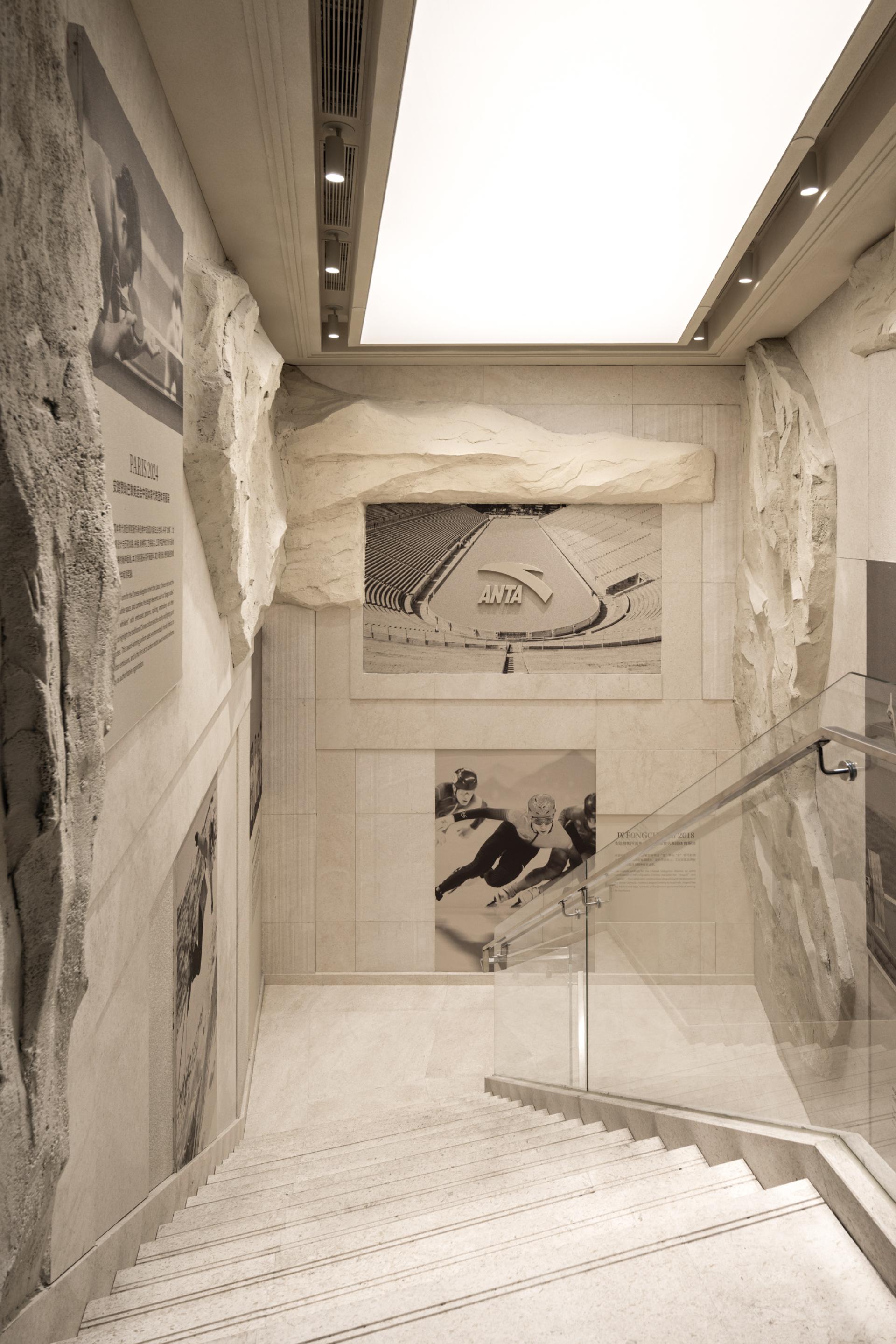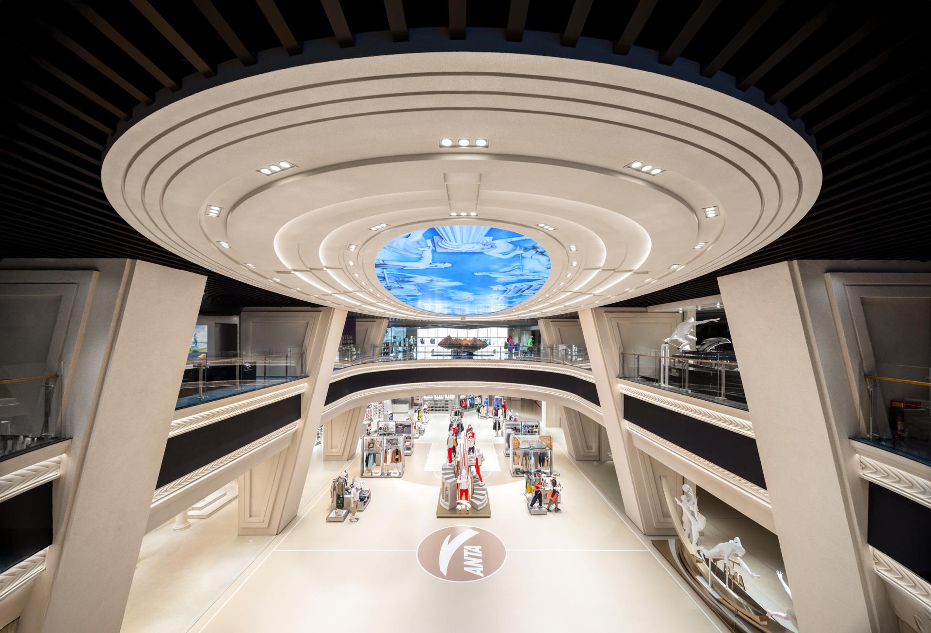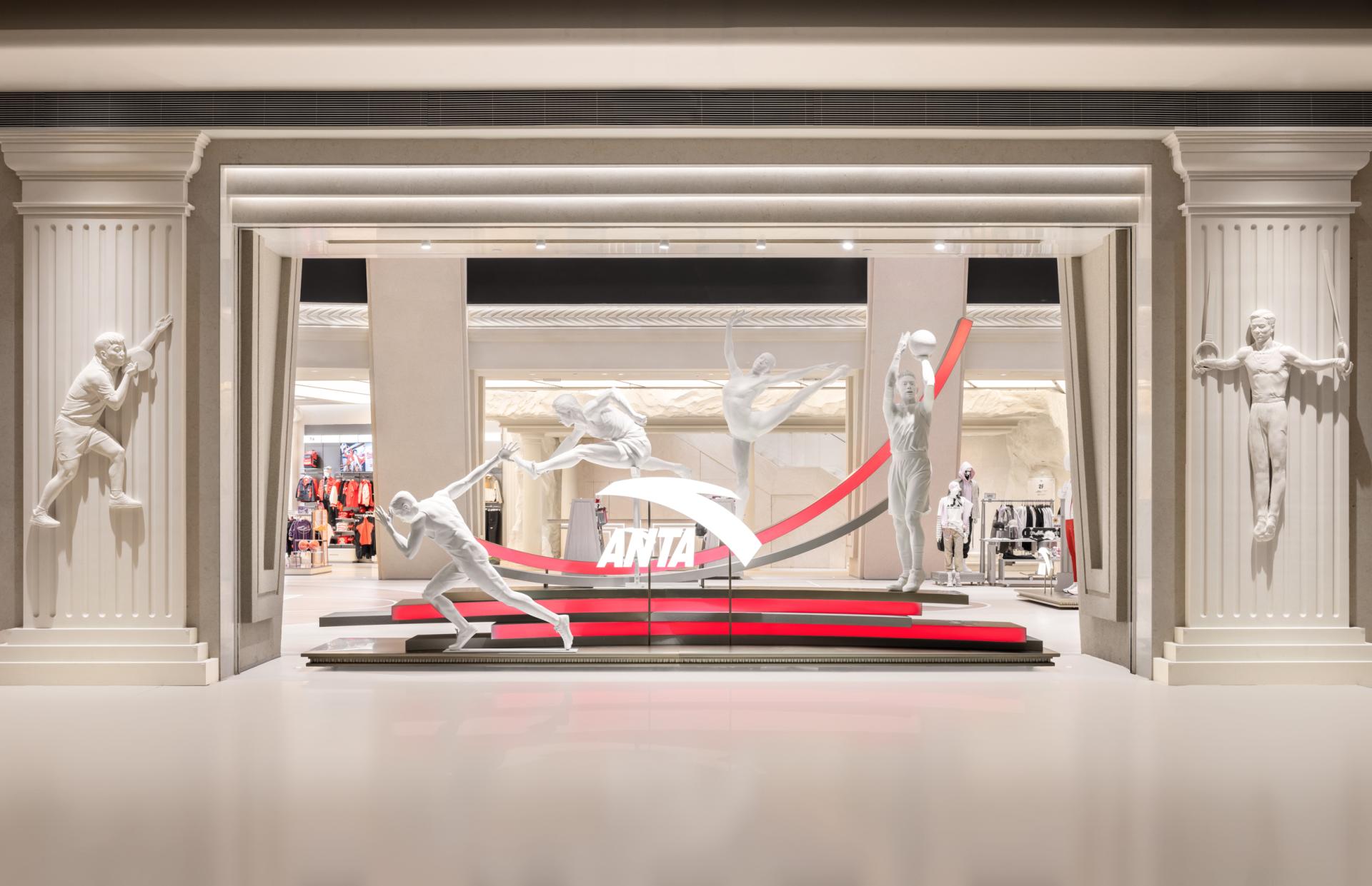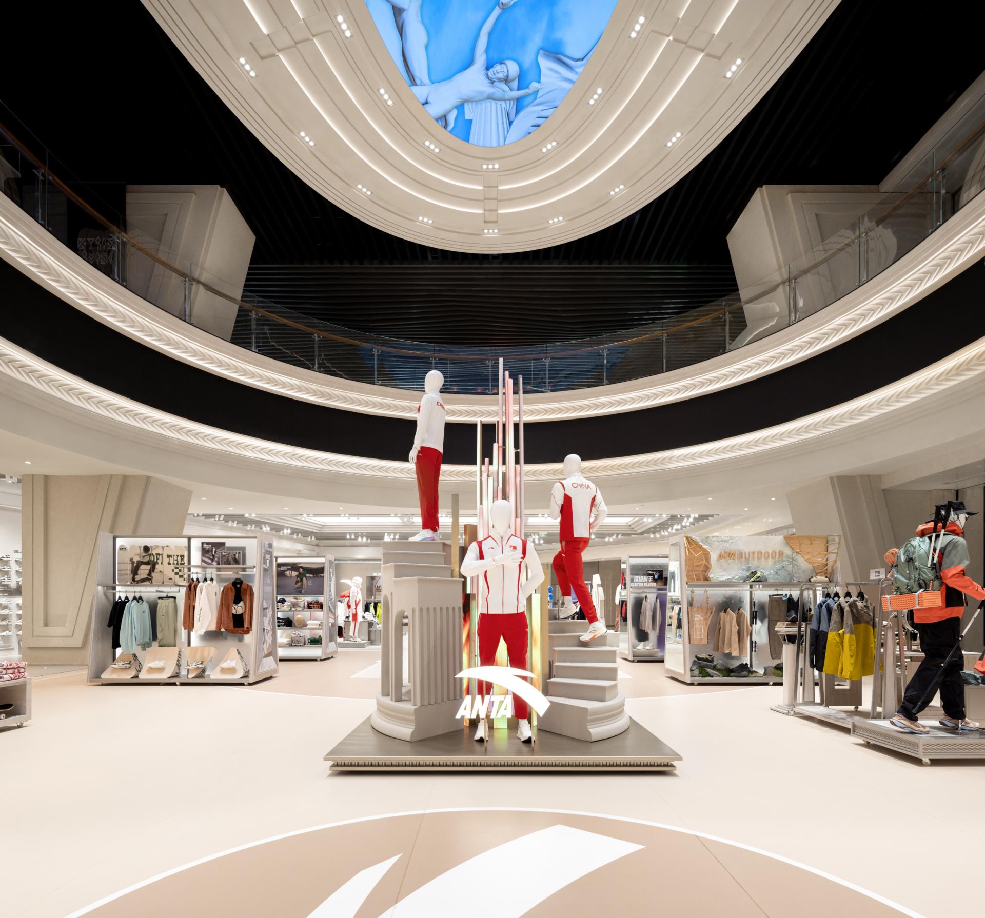 Breaking free from traditional constraints, the space bridges classicism and modernity with innovative aesthetics. The sub-brand ANTA SNEAKERVERSE focuses on trend culture, featuring a bold logo that bursts out of classical art frames with unstoppable energy, while ANTA GUANJUN caters to elite outdoor enthusiasts. By fusing the Olympic spirit of ancient Greece with China’s natural landscape culture, the space evokes a sense of divine power rooted in nature.