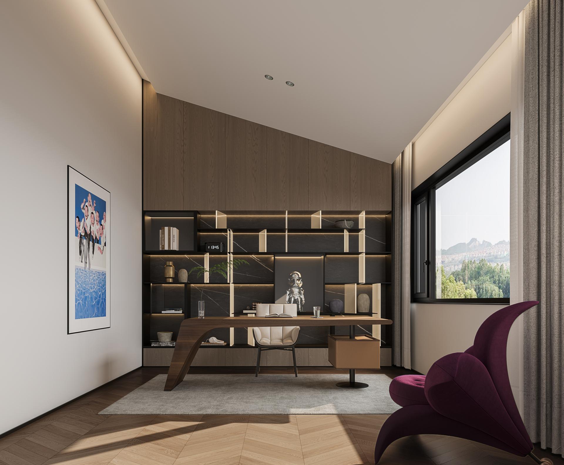 Inspired by the surrounding ecological landscape of Jinping Park, the design incorporates natural light, water features, and greenery into the courtyard and overall space planning. The blend of international minimalist styles with local cultural elements from Taizhou creates a unique design identity, expressed through abstract artwork and contemporary furniture.