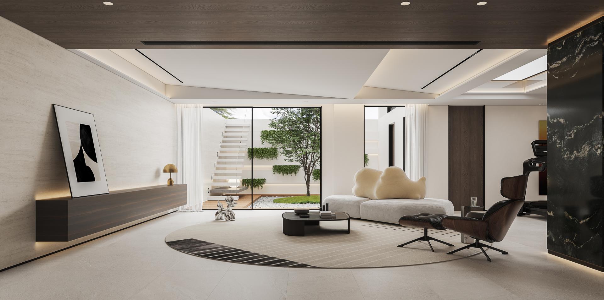 The design philosophy centers on the concept of "harmony with nature," integrating minimalist aesthetics with modern functionality. By emphasizing the principle of "less is more," the design features neutral tones, such as ivory and light gray, combined with natural materials like wood. This creates an open and airy atmosphere that fosters comfort and tranquility. Smart home systems have been seamlessly incorporated to enhance the convenience and quality of living, offering residents a futuristic yet comfortable lifestyle.