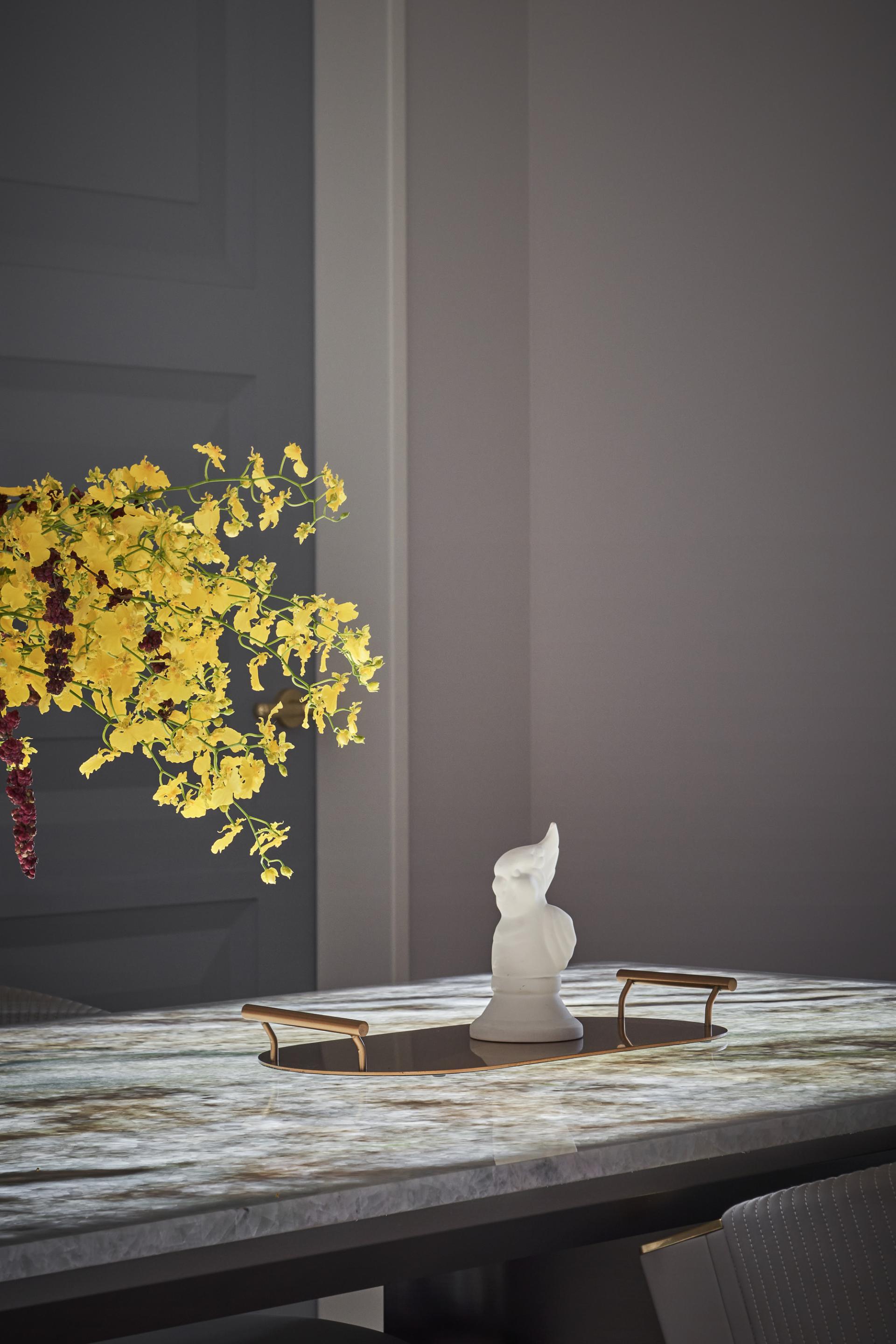 而最終的主角為獨一無二的奢石透光餐桌,以天然結晶體的藍水晶為媒介,巧妙地運用光源