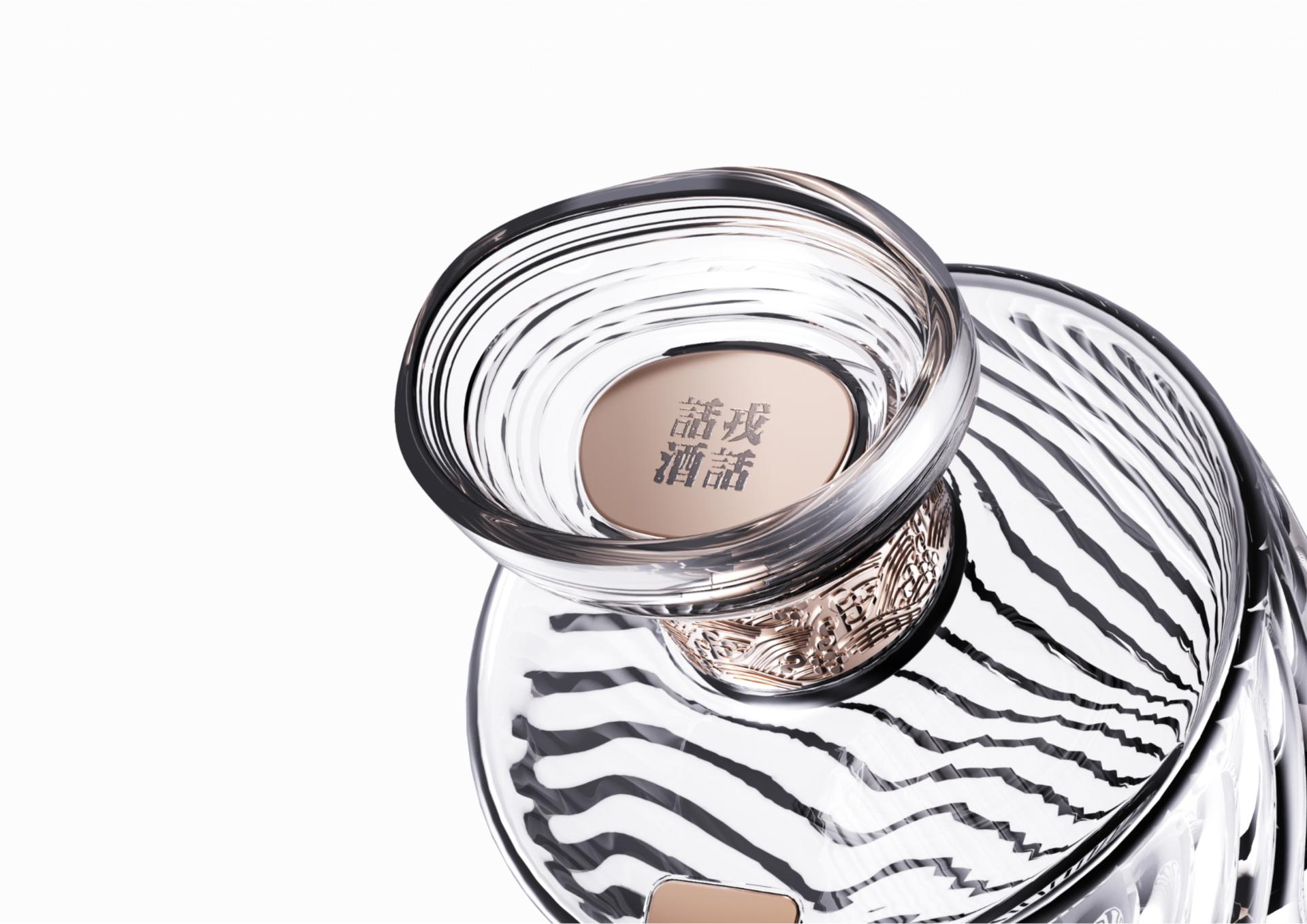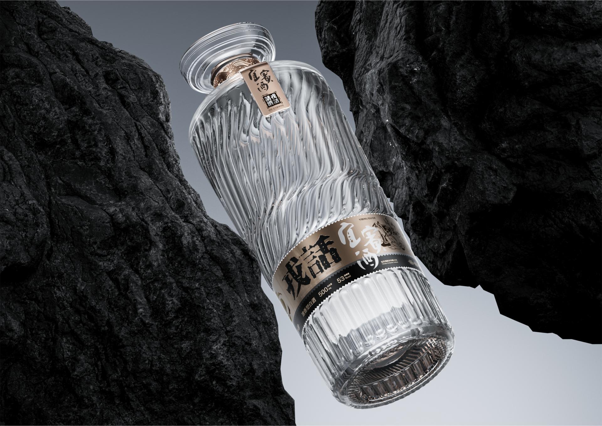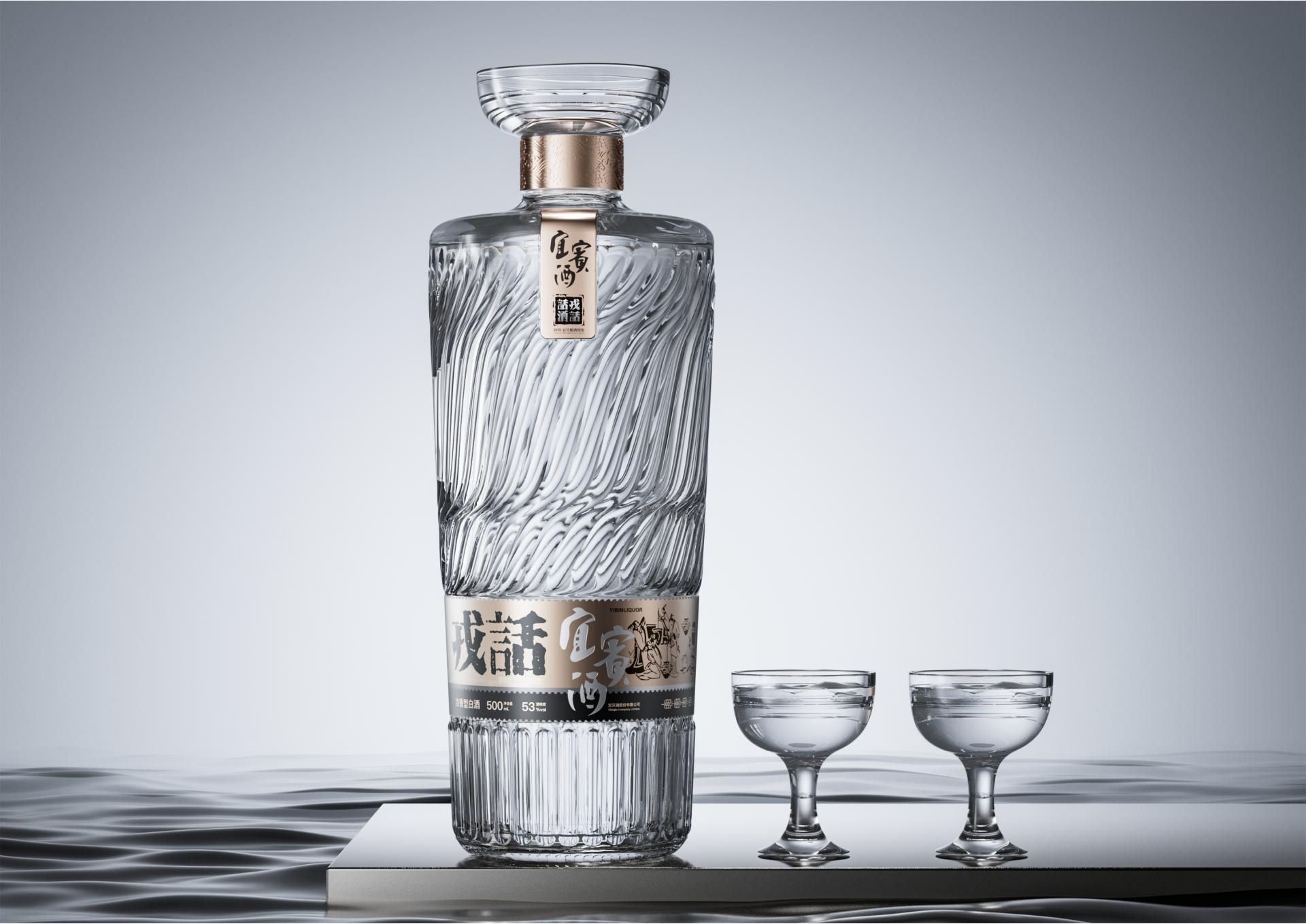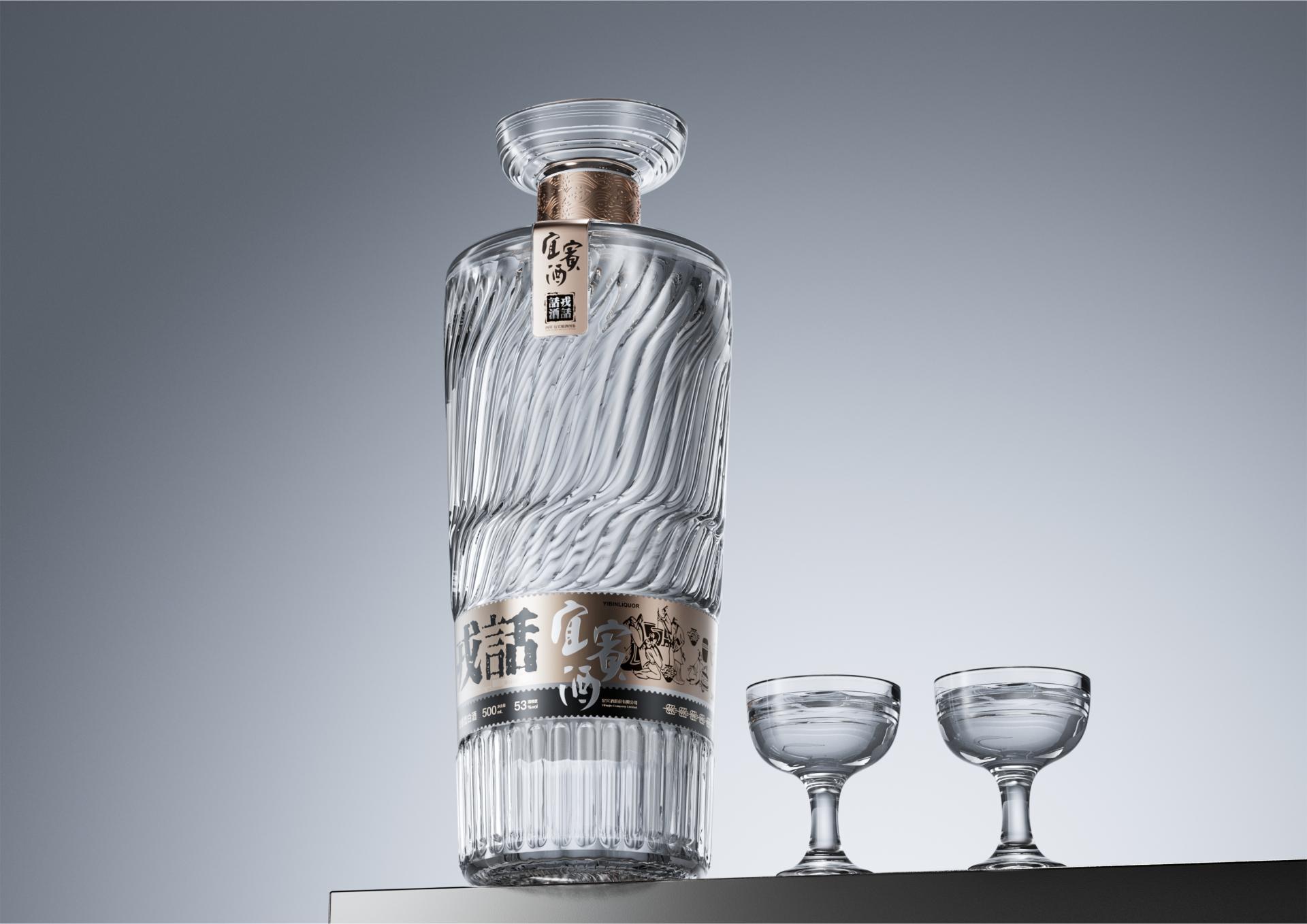 The packaging design of the Yibin Liquor - Ronghua Series is a heartfelt tribute to this long-standing brewing history. The design skillfully incorporates the poetic imagery of "Qu Shui Liu Shang" (floating cups along winding streams where ancient scholars would enjoy their drinks while composing poetry). The flowing water motif on the crystal glass bottle captures this poetic moment in time, as if liquor cups were gracefully floating downstream, pausing before distinguished guests and inviting them to share in the experience. The bottle cap draws inspiration from the ancient "Shang" cup used in "Qu Shui Liu Shang," reflecting the aesthetic harmony of nature and poetry cherished by the ancients while symbolizing the accumulation and transmission of culture.