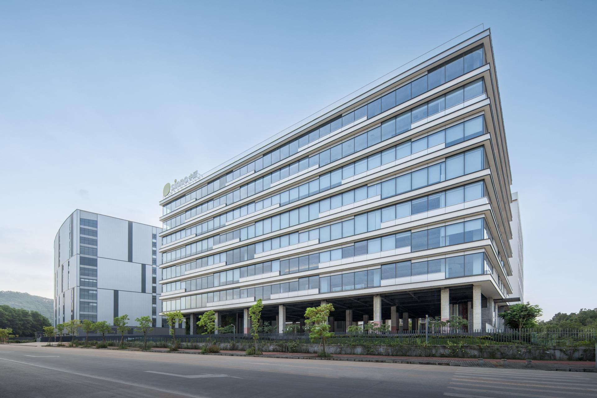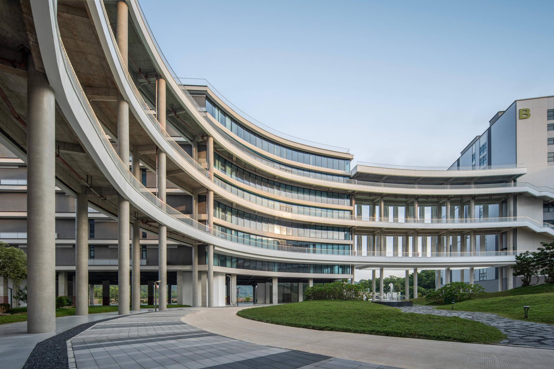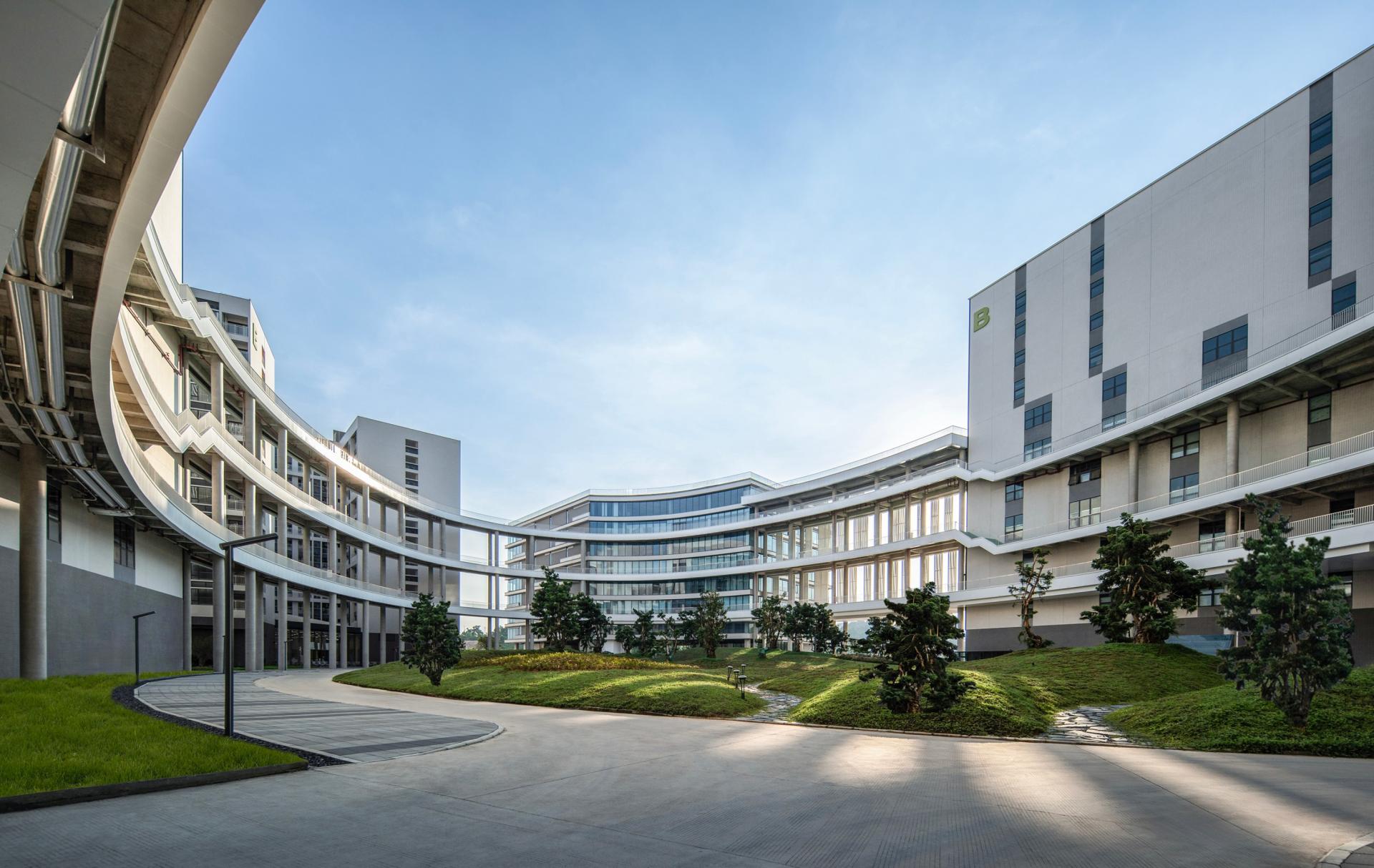 Located in the South China Modern Chinese Medicine Park of Lanbian Village, Nanlang Town, Zhongshan City, the park is part of the eastern group of the strategic development of Zhongshan City. The group is committed to building a Bay Area high-end industrial gathering area, a Bay Area science and technology innovation service area, a Western Pearl River Estuary biomedical science and innovation area, and an international cultural leisure tourism area. Different from the rough and heavy stereotype of other industrial projects, the design highlights the bold collision of colors and metal materials with industrial characteristics of the facade, making the interior space appear low-key and restrained without losing the industrial precision texture, creating a comfortable and magnificent atmosphere and presenting an artistic beauty that is not found in traditional industrial parks. The "circle" shape of the architectural form responds to the centripetal force and cohesion of the enterprise and creates a strong sense of space, which impresses the visitors and creates a lasting shared memory for the users. The four-story corridor with a wraparound design enhances visual integrity and ease of use, and provides more possibilities for employees' work and life.