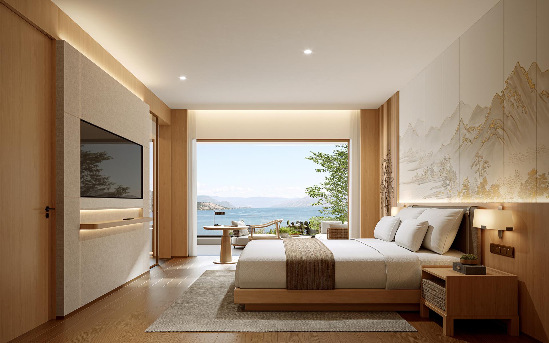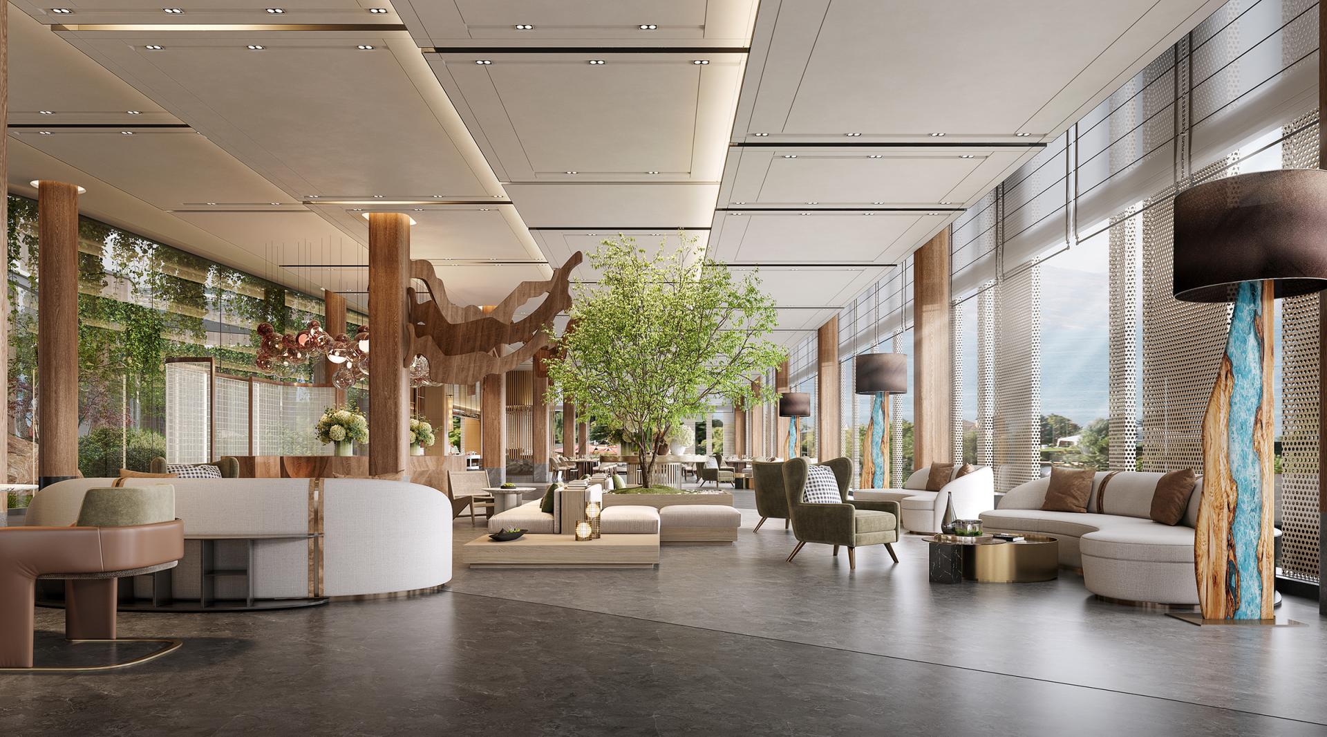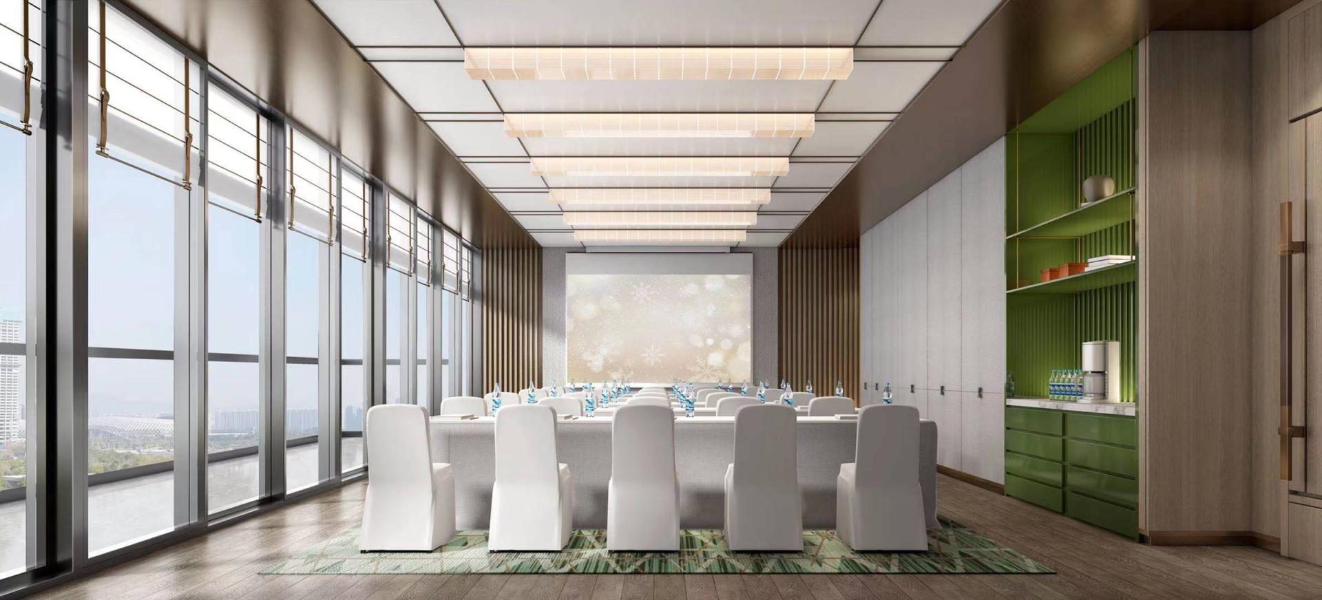 The Huayu Hotel in Quzhou, Zhejiang is rooted in Hunan Town, Qujiang District. It is located in the hinterland of the Wuxi River Wetland Park, surrounded by the Xianxia Mountains. The Wuxi River flows through, enjoying the beautiful natural landscape and abundant ecological resources. The design closely follows the concept of "natural coexistence, modern living", deeply integrating the natural advantages of the surrounding area with modern comfortable experience, meeting the contemporary travelers' pursuit of comfort, convenience, and beauty, making the hotel both rich in regional characteristics and modern fashion sense. In terms of spatial design, the lobby features a combination of marble flooring, warm beige walls, wooden sofas, and stainless steel lines, showcasing a grand and exquisite atmosphere. The guest rooms are designed to be warm and comfortable, with separate wet and dry bathrooms. The combination of stone and stainless steel hardware ensures practicality and fashion. The restaurant creates a natural and rustic dining atmosphere with cultural stone walls, wooden ceilings, and distinctive chandeliers. The public areas rely on latex paint, stainless steel lines, and wooden decorations to create a simple and bright passage space, matched with decorative paintings and green plants, cleverly introducing outdoor natural elements, adding artistic atmosphere and vitality.