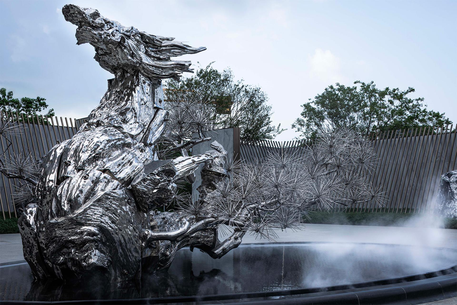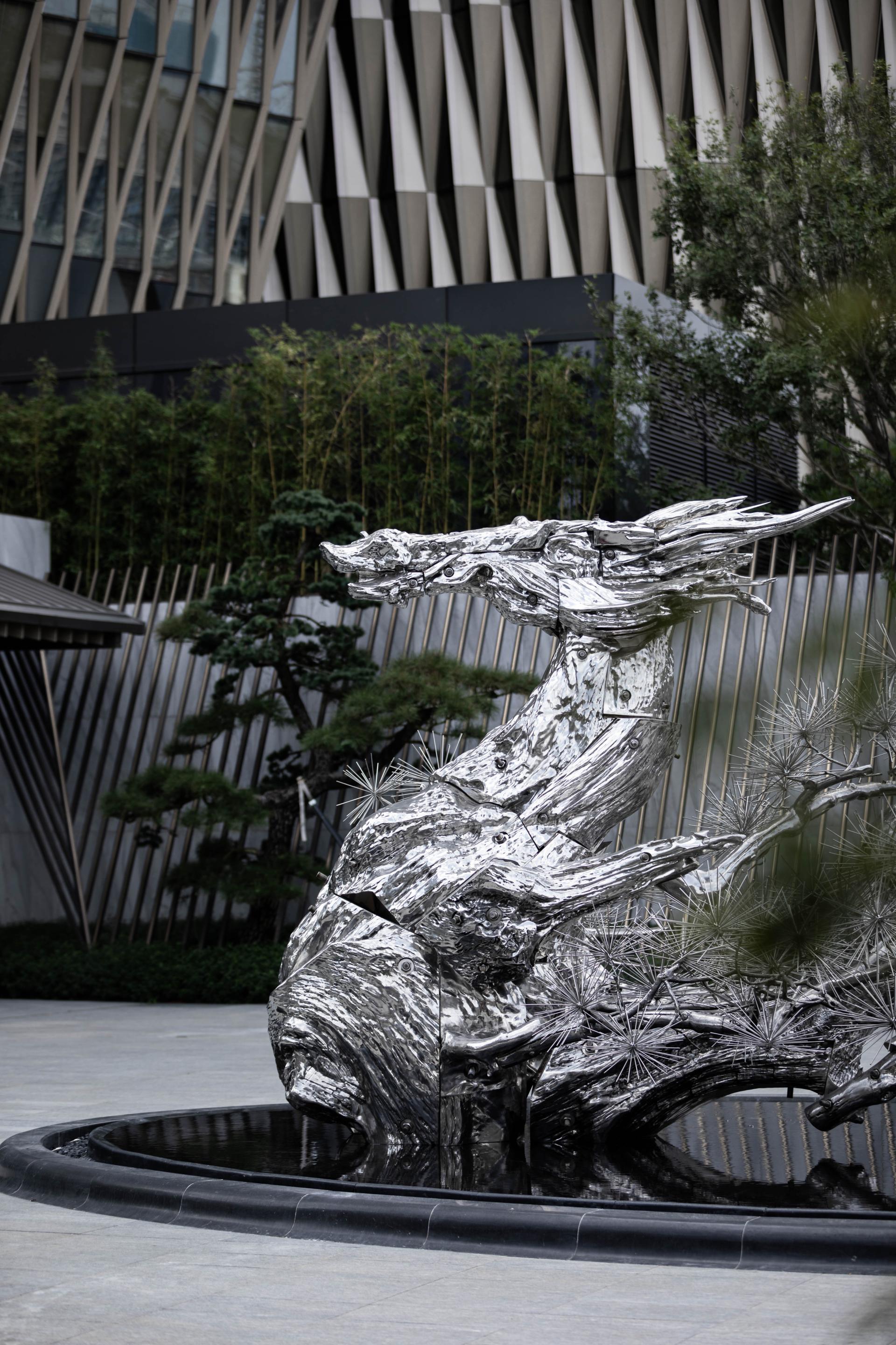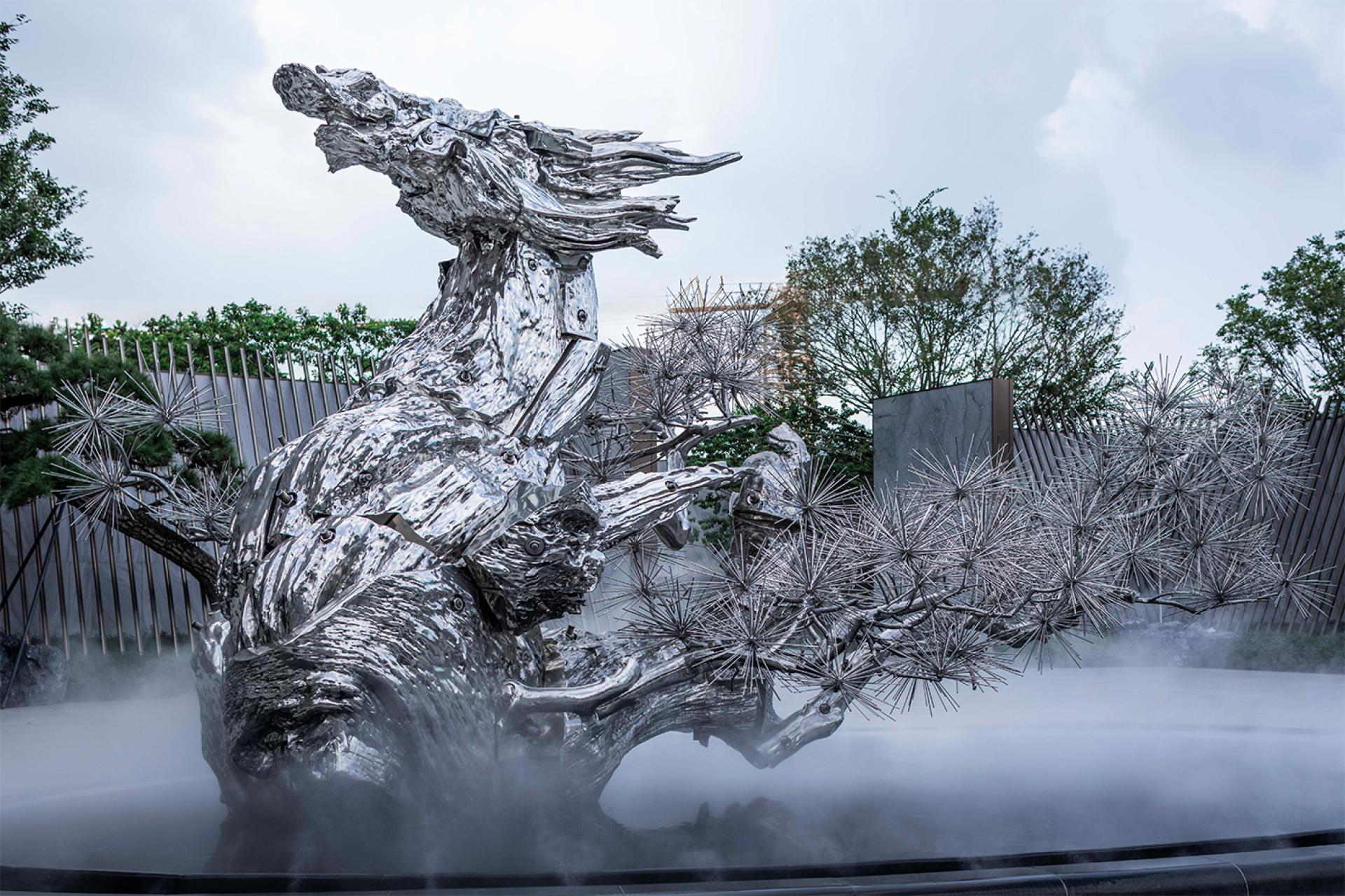 When this exquisite piece was installed in the metro plaza, visitors standing before it could gaze upon the sleek, minimalist skyscrapers designed by German architectural firm GMP, while also immersing themselves in a serene Eastern-inspired landscape. Mist sprays, dewdrop-kissed pine needles, a spirited steed in motion, and the dragon’s majestic aura coalesce, weaving an ethereal, poetic ambiance of Eastern romance. Here, Eastern and Western cultures converge, sparking a vibrant urban aesthetic that resonates with the pulsating energy of subterranean transit, reinterpreting the timeless Chinese philosophy of “Longma Spirit” (dragon-horse vigor).