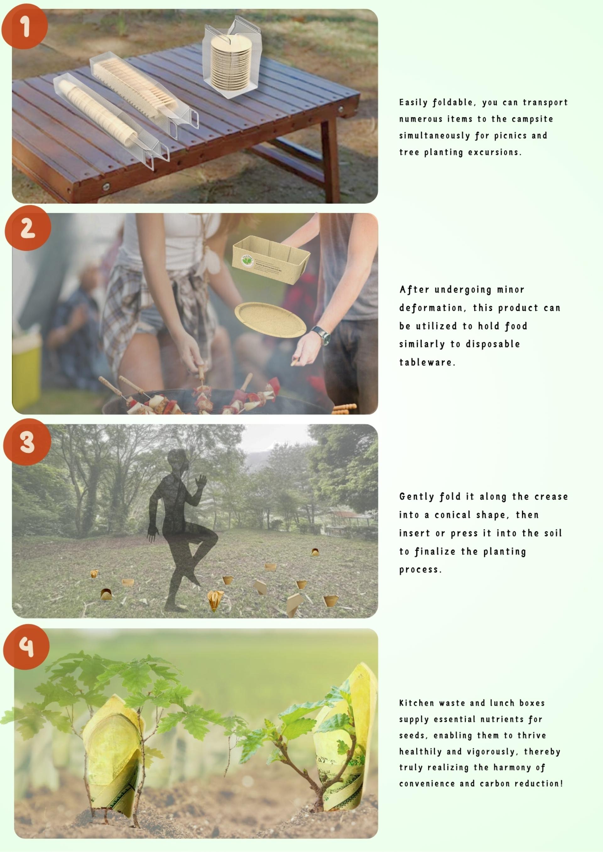 In the context of climate change, deforestation, and resource depletion, packaging design must take on full environmental responsibility. Disposable tableware from outdoor activities often ends up in forests, rivers, and beaches, where proper waste management is lacking. This contradiction between enjoying nature and damaging it sparked a question: what if a lunchbox could grow into a tree instead of becoming waste?