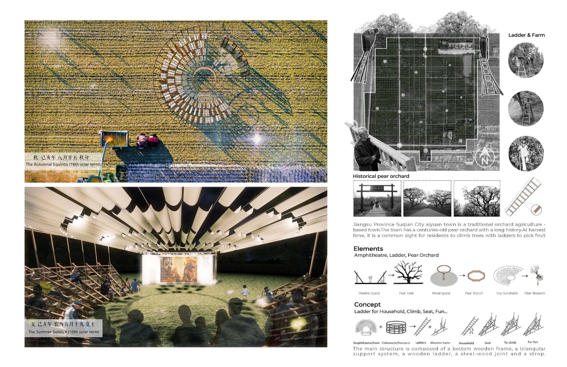 The detachable, assembled theater becomes a living device that adapts to the rhythms of the villagers' lives. Ladders, essential to rural daily life, are transformed from simple farming tools into dynamic elements of a theater, elevating everyday activities into communal celebrations.