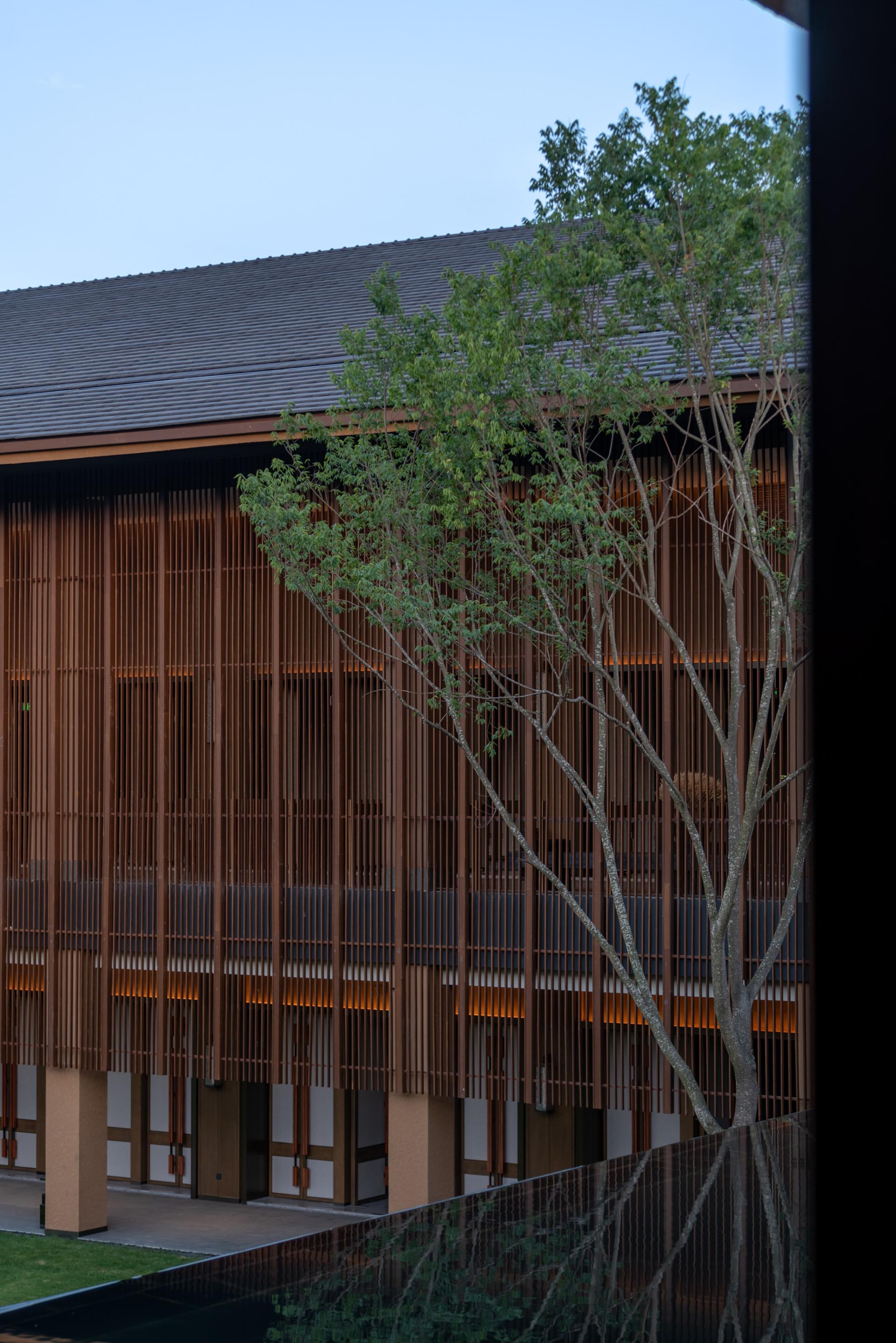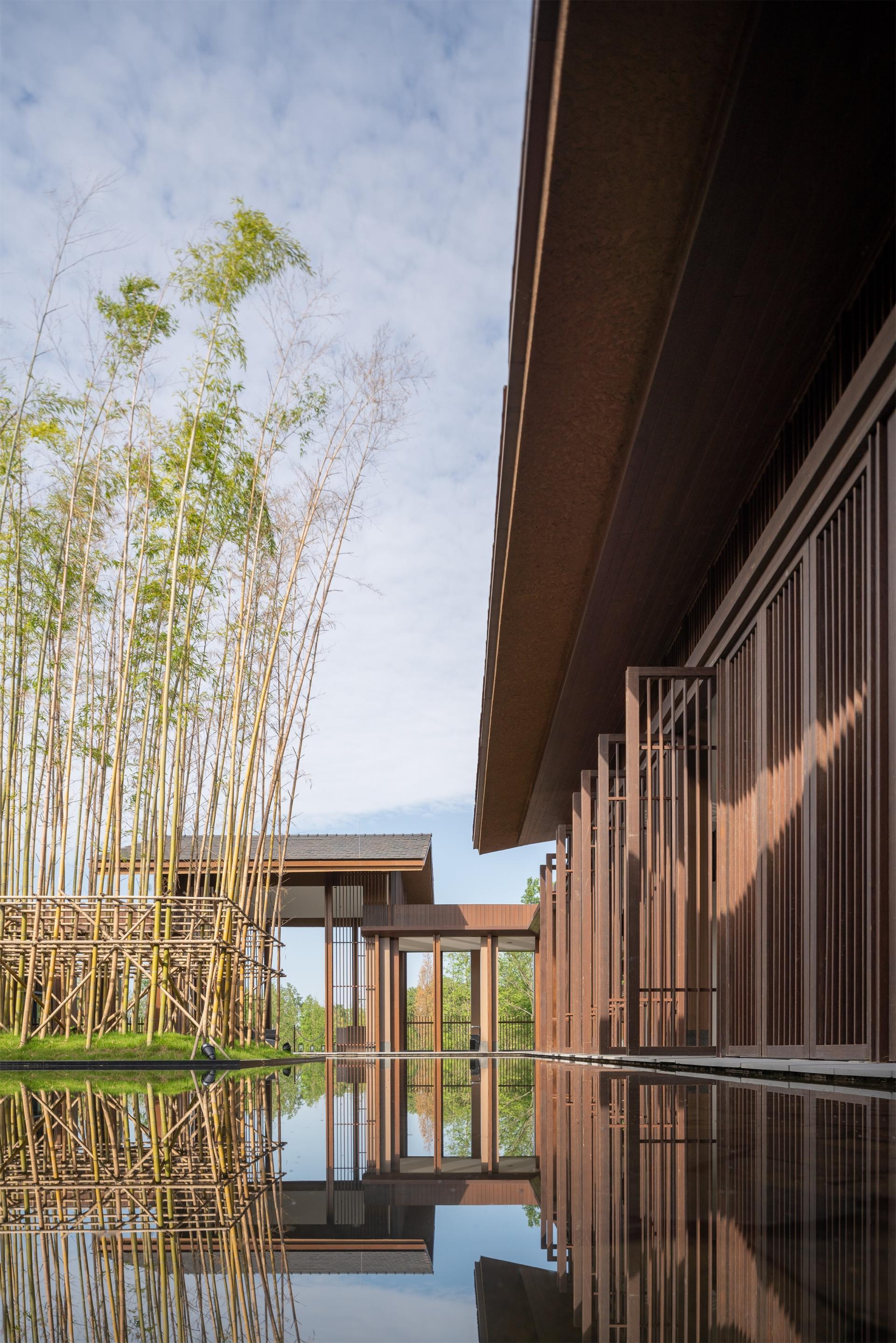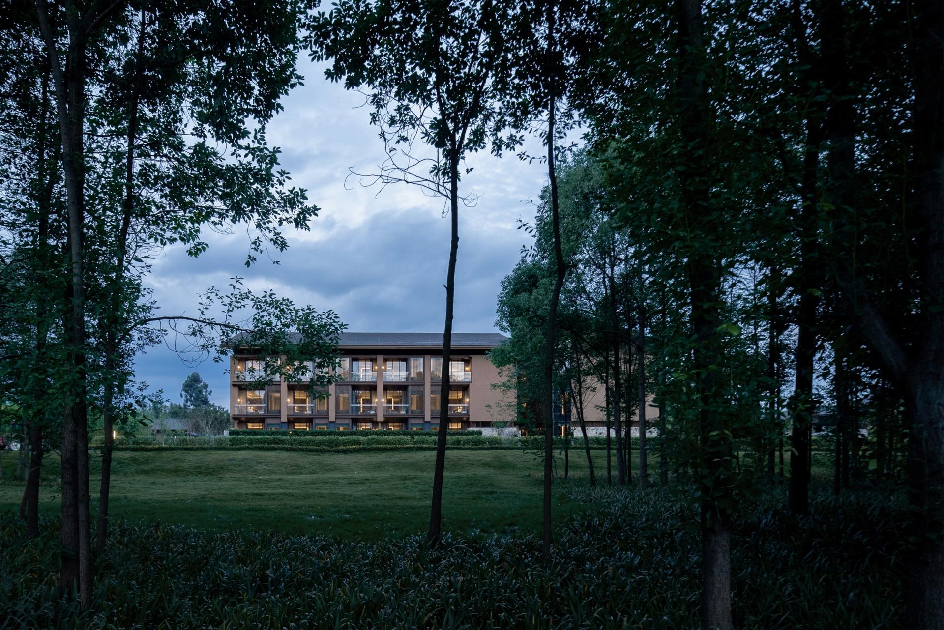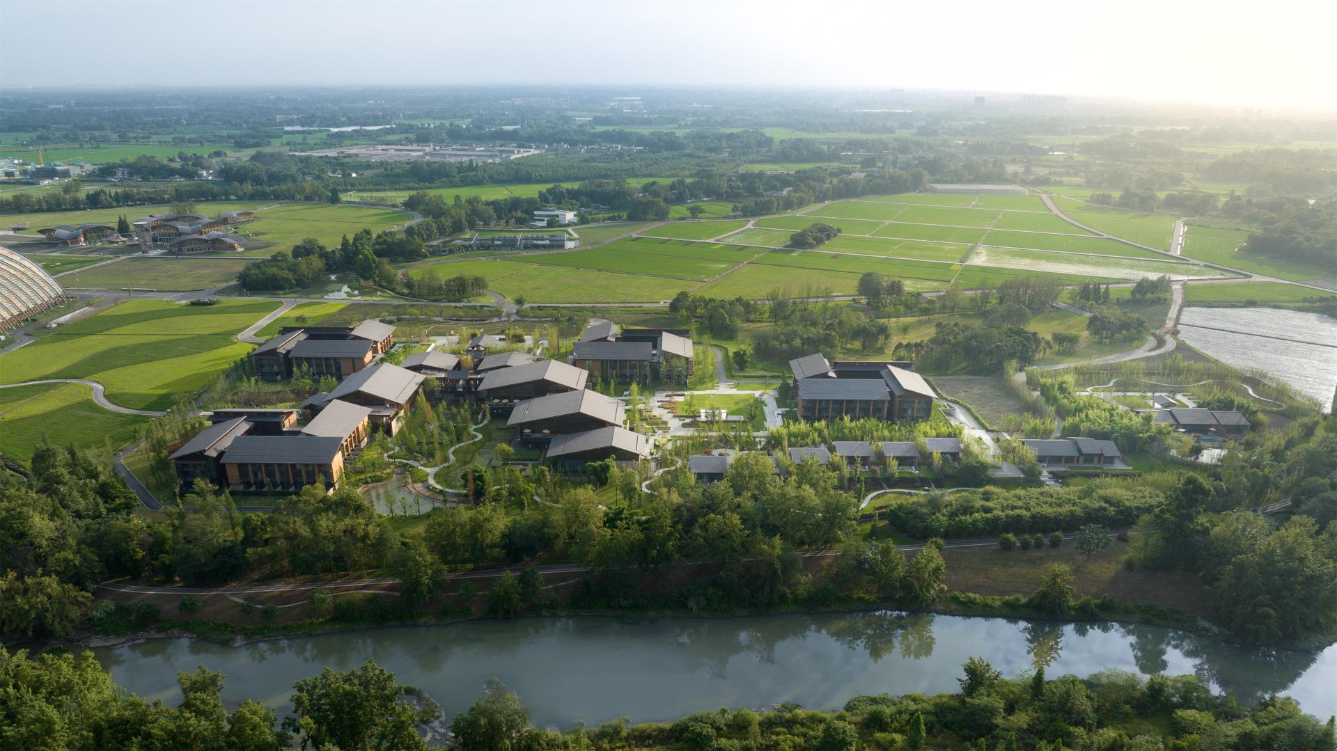 Protecting the ecological environment and cultural heritage of the site is the core design concept of this project. Converting natural features like untouched agricultural land, bamboo groves, and waterways into distinctive landscape assets for the hotel. The preserved original farmland, bamboo groves, and river systems serve as unique landscape elements of the hotel. The scenes of local farmers working hard here have become the most touching pictures in Tianfu Agricultural Expo Hotel. The project adheres to respecting and inheriting local culture. It not only retains the places where farmers can continue farming but also brings new employment opportunities to local residents.