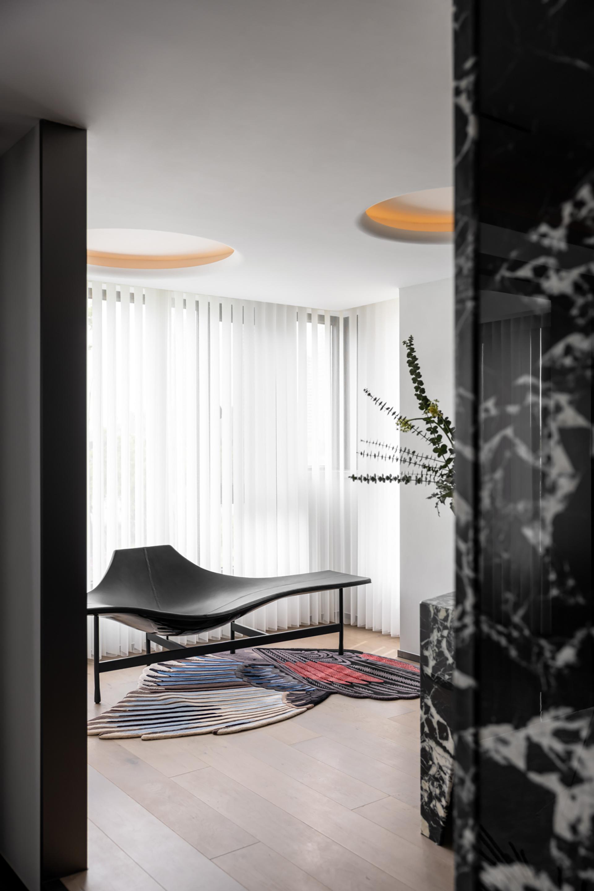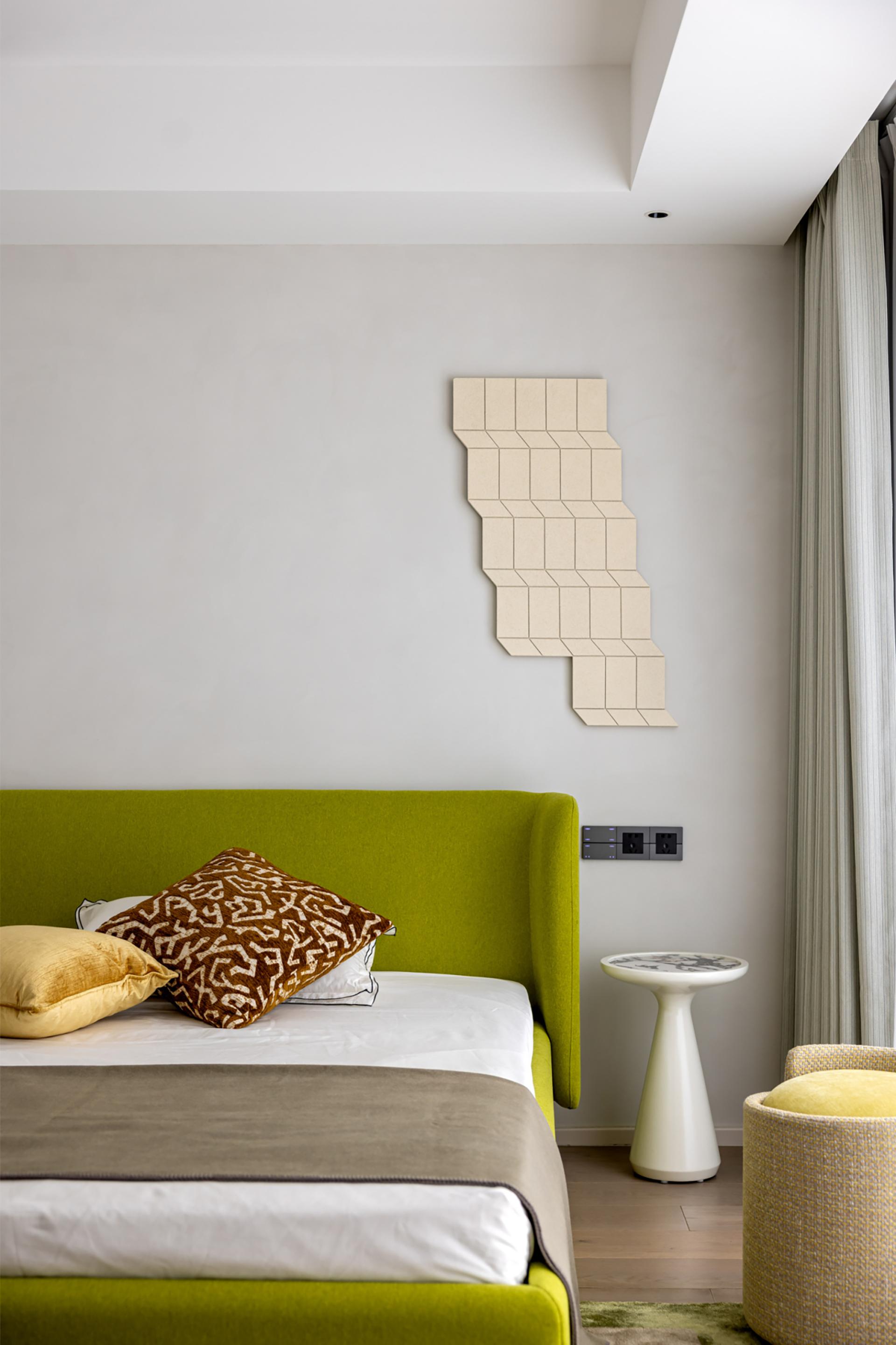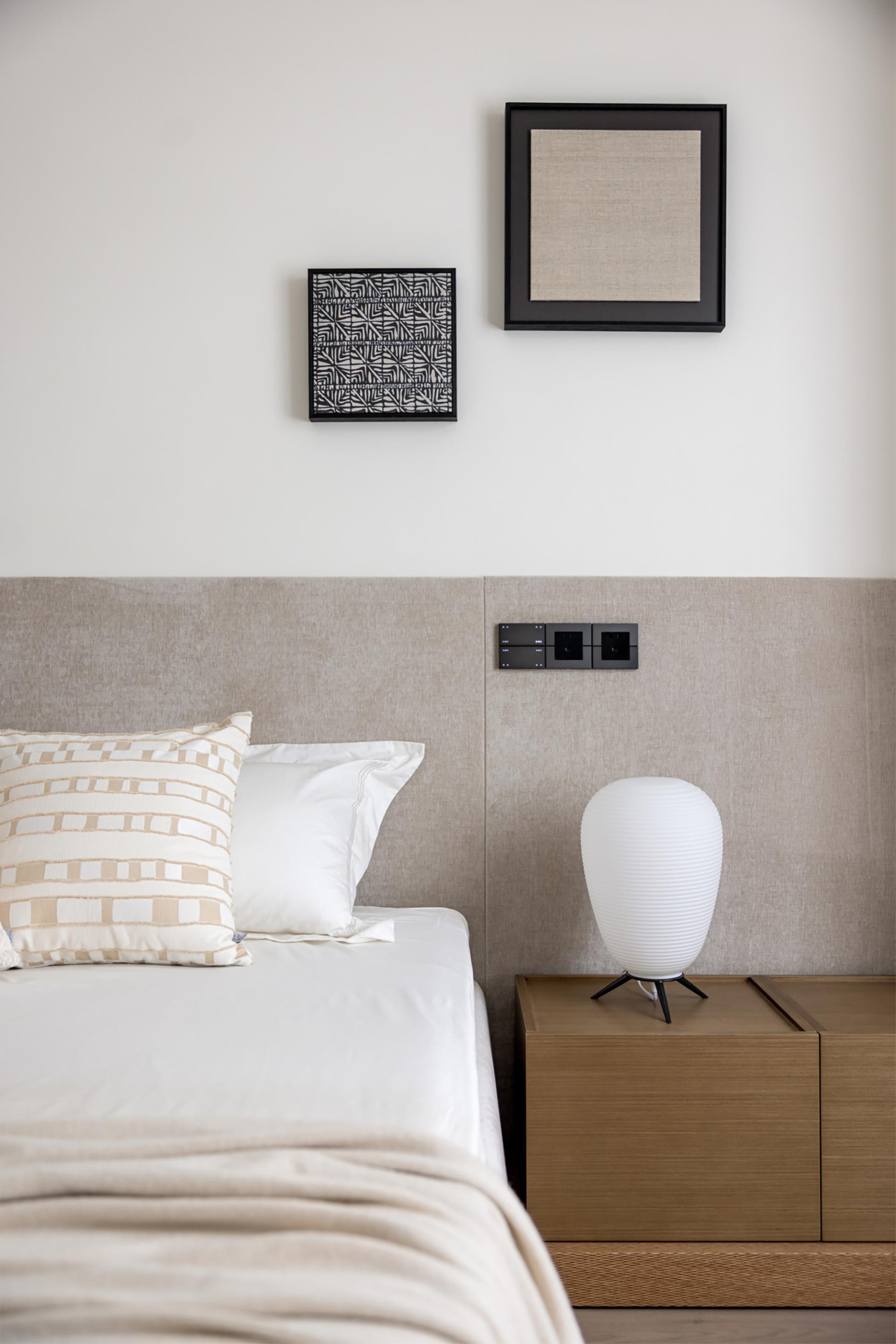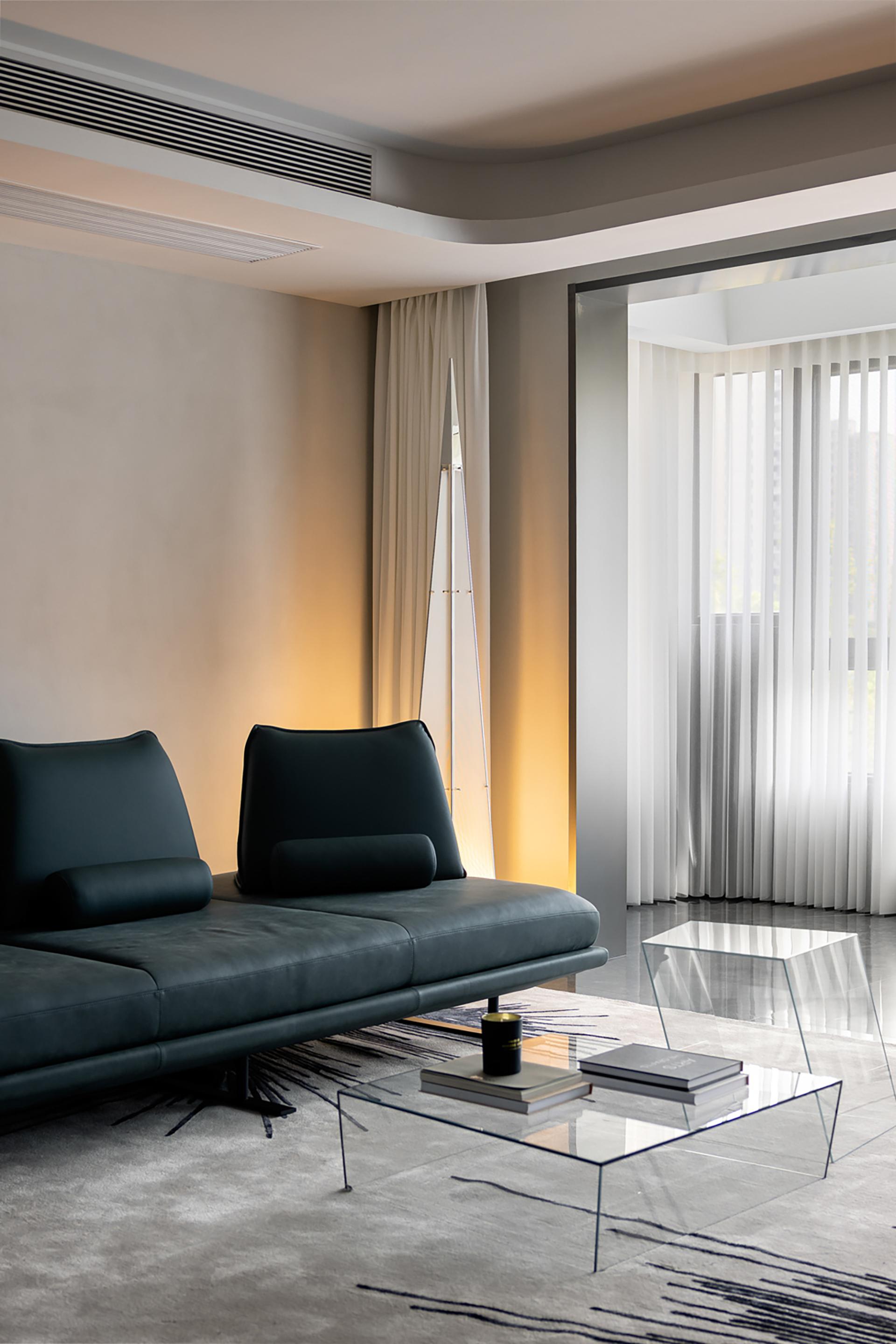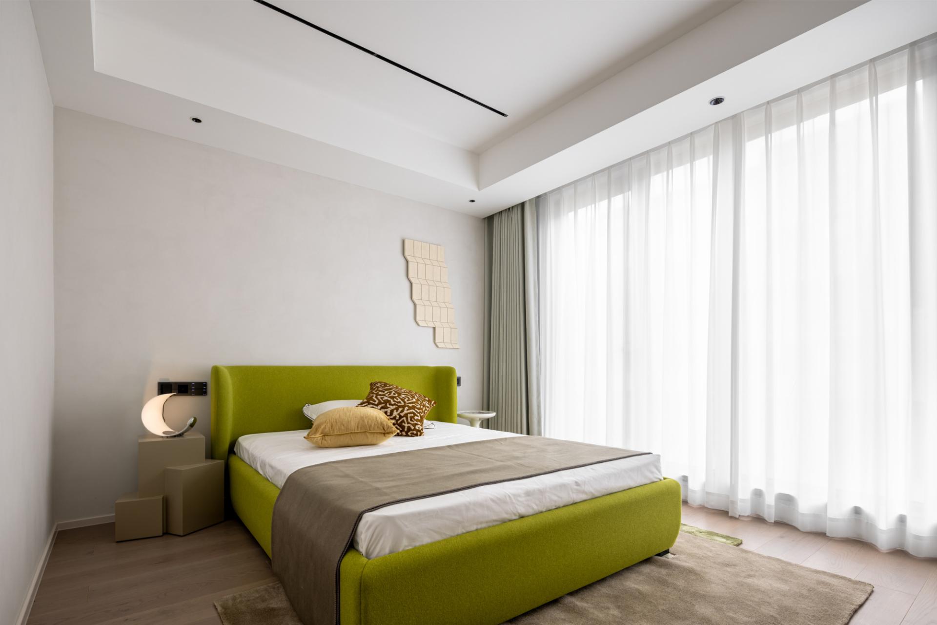 The owner likes the dark black style, but it should not be too dark. Later, considering that he will live with his family downstairs, the downstairs is the family's space and dining is downstairs, so the kitchen environment was not taken into consideration during the design. In the overall dark design, red pendants were added, and the walls were required to be white, which would make the overall look cleaner. The living room and study are in the same space, so the overall design is unified. The sofa is also dark green, without any abrupt colors in it, and the marble is more integrated as a whole. The master bedroom is also designed mainly in black, white and gray. The second bedroom needs a clean feeling, because the space is not very large and it will affect the aisle, so a hard-covered background wall is chosen as the bed backrest. The children's room is mainly neutral in color, and a regular bed is made to meet the needs of the child's birth and the unknown gender.
