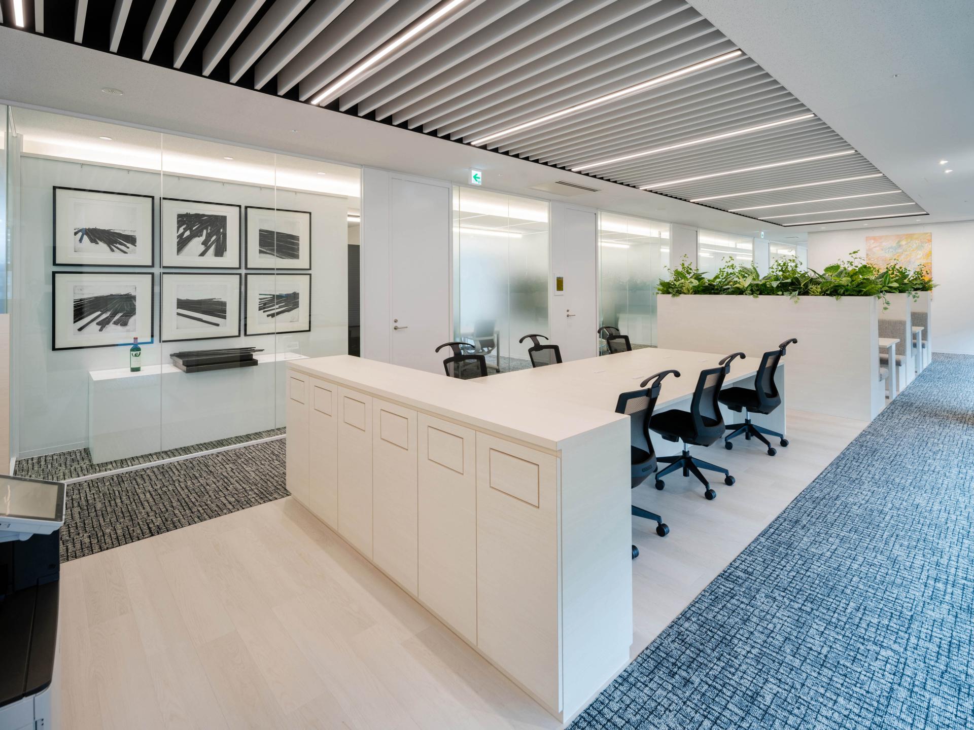 The second theme, coexistence with art, transforms the workspace into a vibrant cultural environment. The office features a curated selection of artworks by internationally acclaimed artists such as Lee Ufan and Jim Dine. Sculptures and paintings are integrated into the design in a way that encourages reflection and inspiration, fostering an atmosphere that transcends conventional office aesthetics. The interplay between art and nature enhances spatial depth and reflects Garden Group’s “Vision Cycle” philosophy—an ongoing pursuit of innovation, beauty, and value creation.