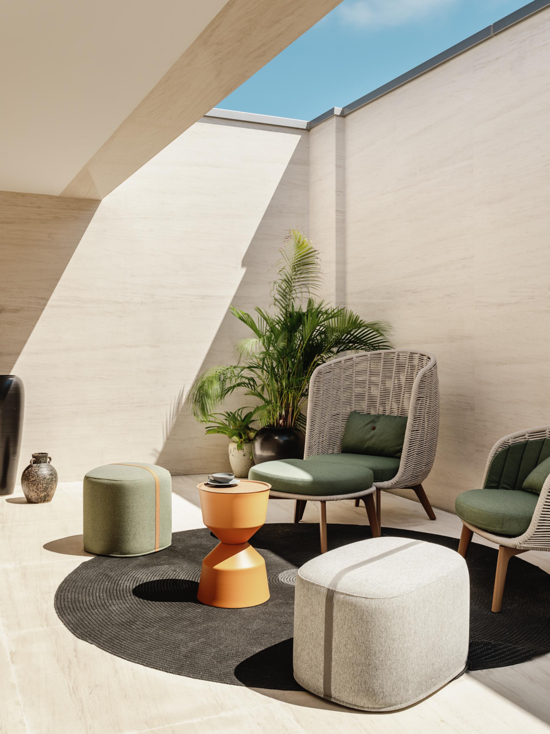 We appreciate the colors and materials of nature—wood, linen, wool rugs, and contemporary art—engaging in a dialogue with the ever-changing scenery. Muted tones like moss green, stone brown, and misty blue unveil the raw beauty of materials, awakening an awareness of life and offering gentle care to the body and soul.
