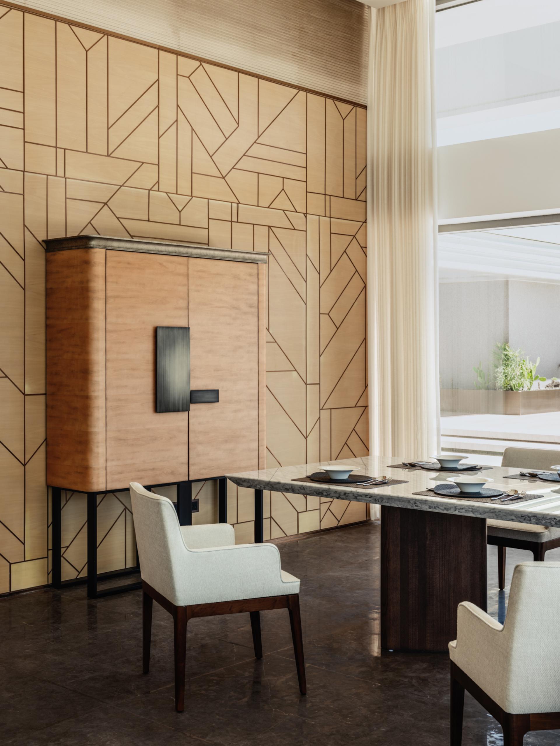 With its blue seas, clear skies, and swaying coconut trees, Hainan’s tropical monsoon climate endows the land with unique natural beauty and a pleasant living environment—an eternal spring. Drawing inspiration from Tao Yuanming’s poetry, Xunuo Interior Design captures the essence of the surroundings to craft a sanctuary where nature and luxury intertwine within the modern urban lifestyle. Here, pure and serene air lingers in the home, isolating the hustle and bustle of the city, slowing the pace of life, and allowing residents to embrace a state of ease and relaxation—an escape.