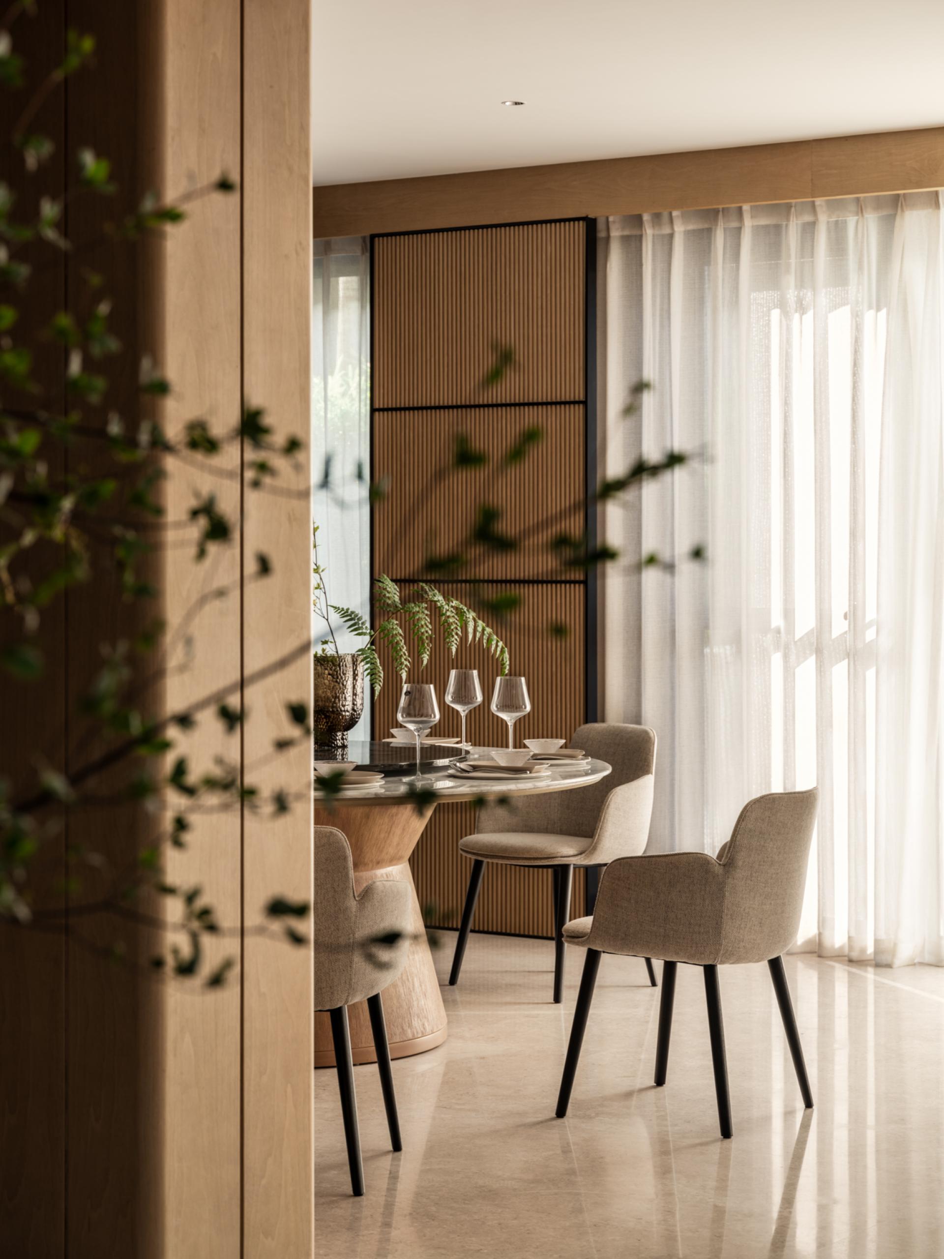 In the living area, pure colors and timeless forms echo the refined artistry of Eastern aesthetics—grace emerging from restraint, and elegance revealed in subtlety. Whether enjoying a quiet moment of solitude or gathering with family, each function of the space is thoughtfully curated like a resort retreat, offering a sanctuary for the soul amidst the demands of daily life.