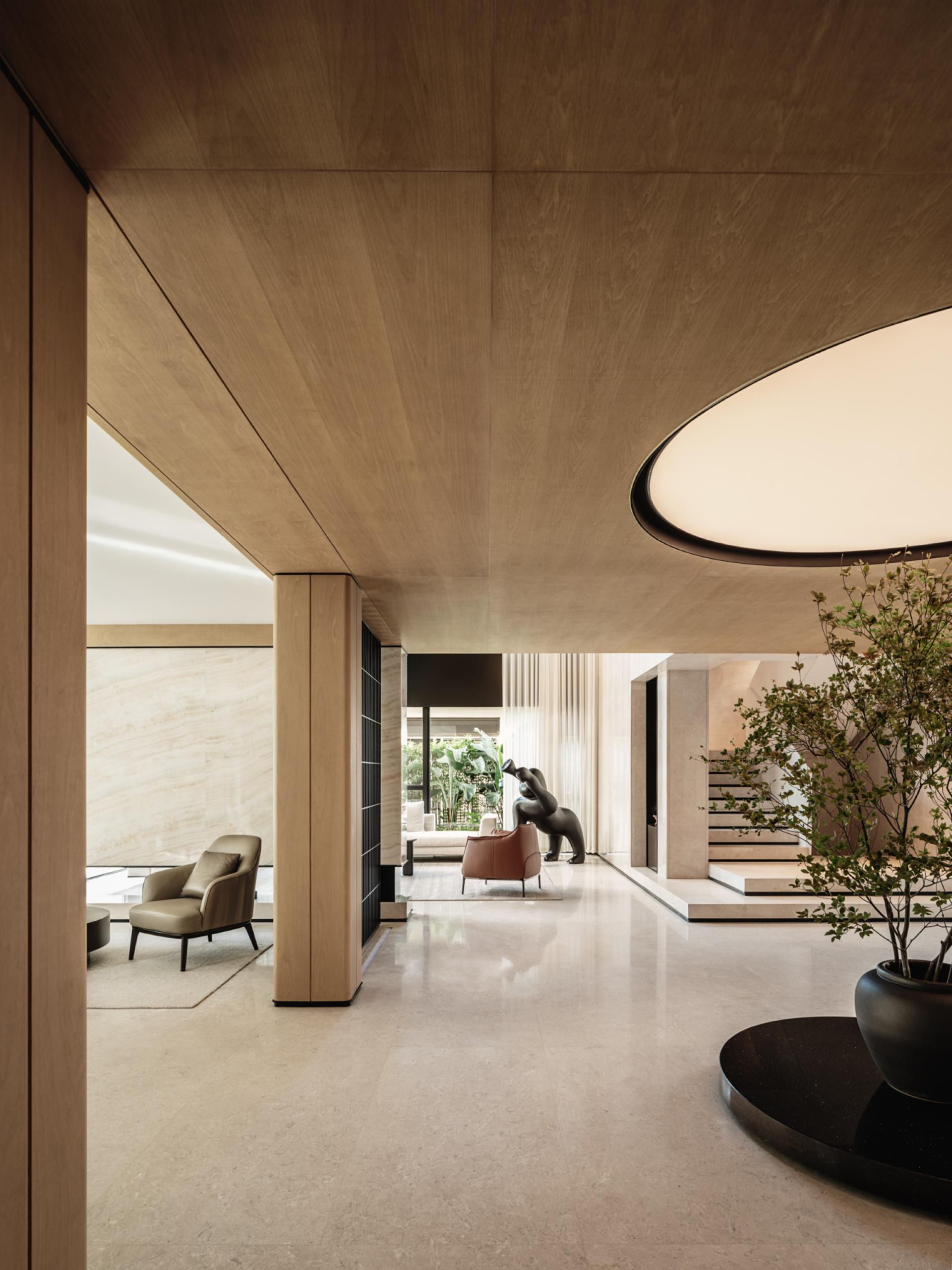 Greentown · Blue Bay – Leader Space Villa is a luxurious residence located in the Blue Bay Town of Greentown. Integrating traditional courtyard architectural elements with modern construction techniques, the 650㎡ villa features a variety of distinct functional spaces. The spatial layout is layered, private, and clearly defined, expressing a refined and elegant character throughout.