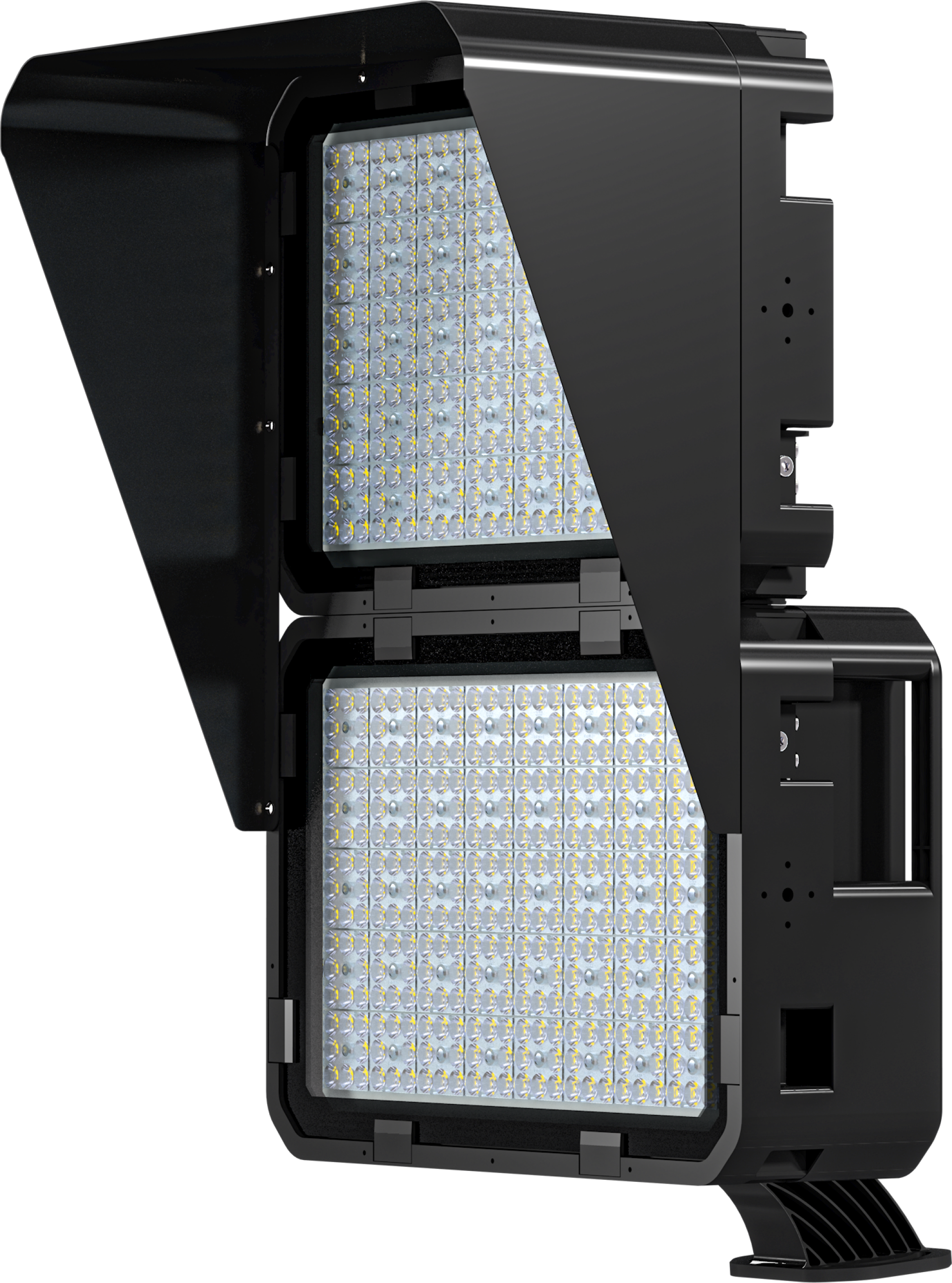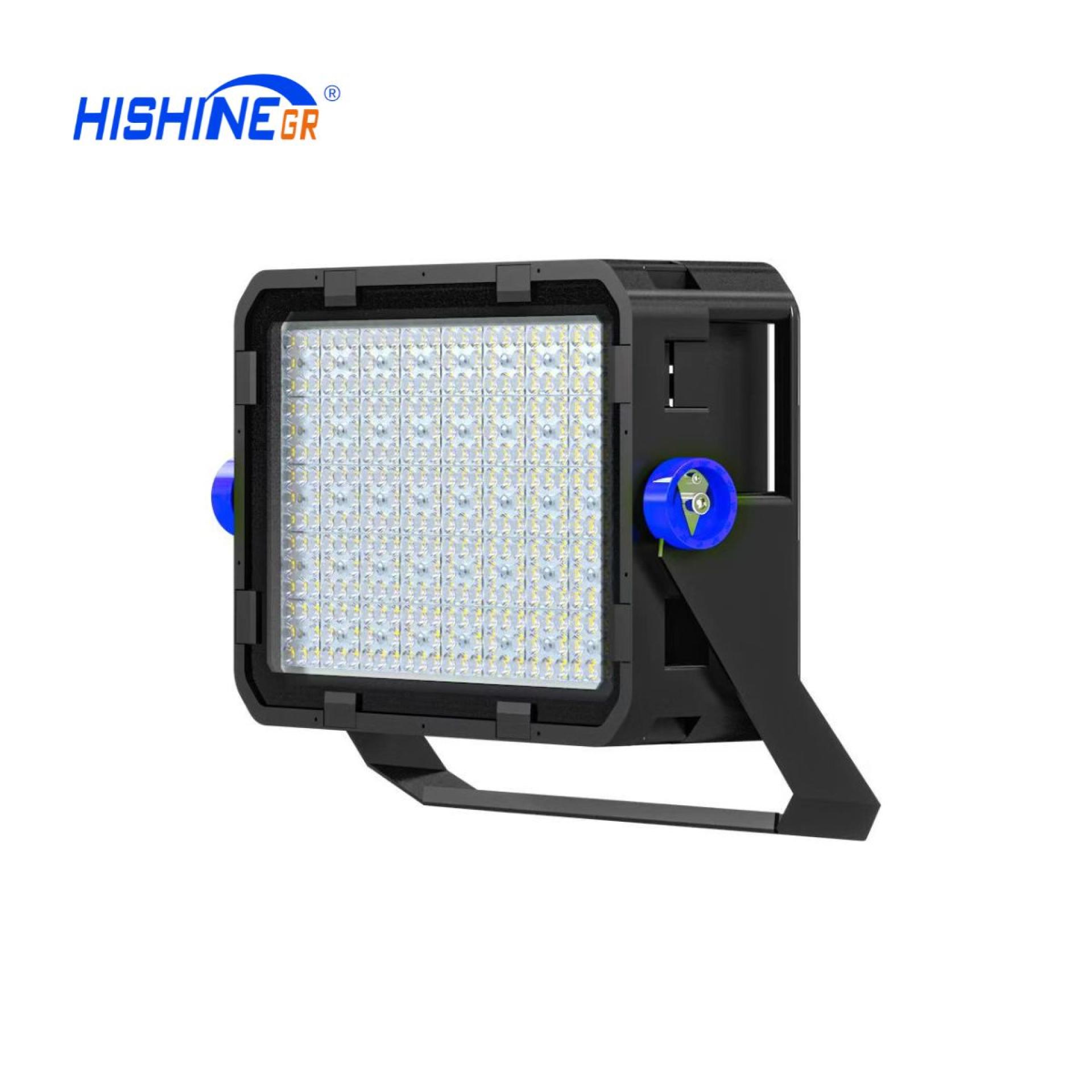 The heat sink for the stadium lights/HIGH mast lights is manufactured using die-cast aluminum alloy, allowing for flexibility in increasing both the number and power of LED sports lights according to specific usage requirements. This design is complemented by two adjustable bracket components, enabling precise angle adjustments that enhance user experience.