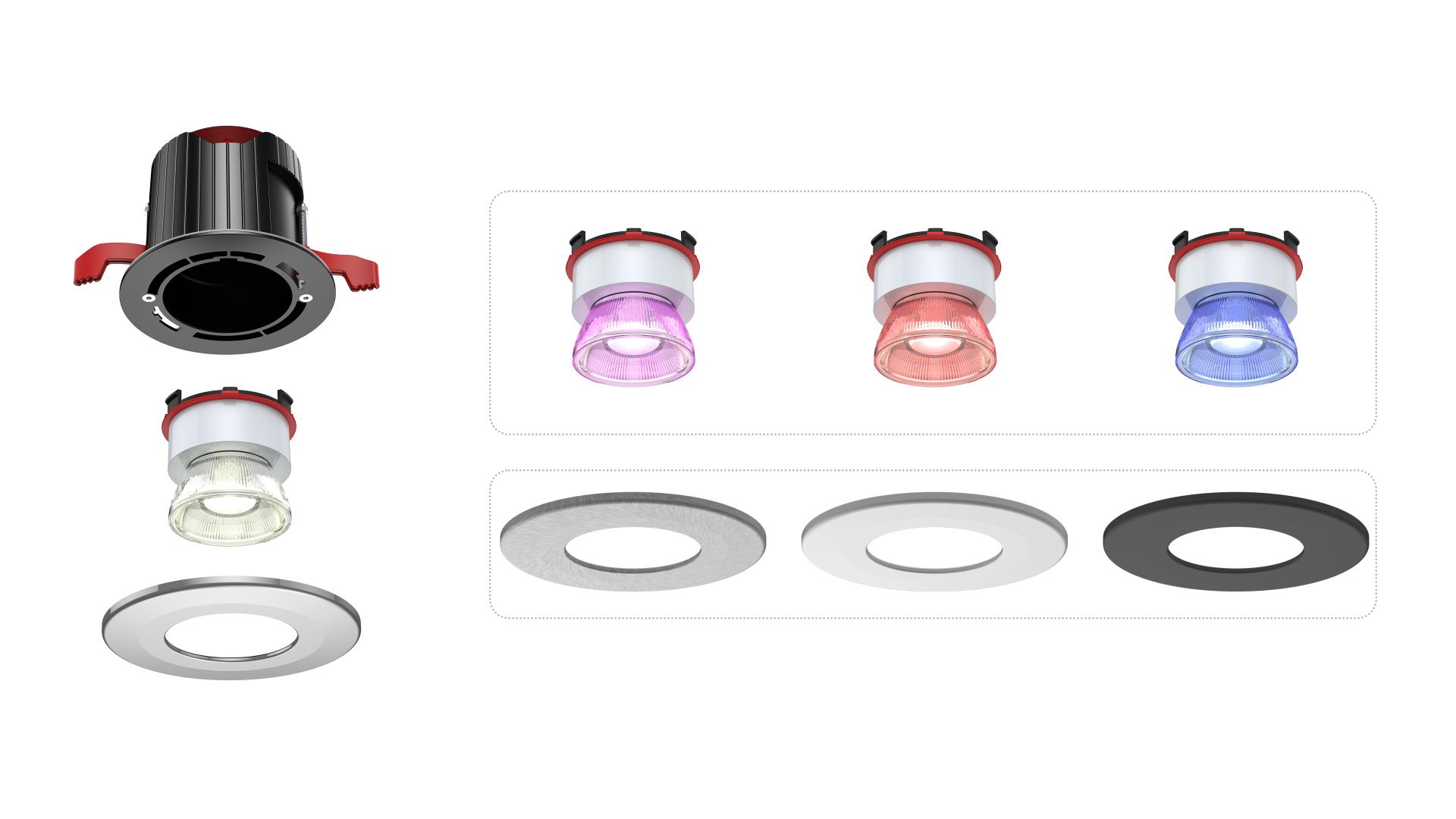 The Jellyfish Downlight draws inspiration from the natural form of a jellyfish, with its lampshade mimicking the creature's transparent, bowl-like appearance and featuring an extendable structure that can retract or expand. This design not only creates a visual sense of lightness but also provides dual functionality: it functions as a recessed downlight when retracted and transforms into an exposed ambient light when extended, adding richness to spatial layers. The Jellyfish Downlight offers various lighting adjustment options, including RGB color settings and adjustable cool-to-warm white lights with brightness ranging from 0% to 100%, suitable for everything from daily illumination to mood setting. Users can control the light through smart wall touch switches, remote controls, or a dedicated app, providing highly flexible operation. The remote control can be in magnetic contact with the smart wall touch switches panel,then achieve data sharing & dual control. Its modular structure allows for quick replacement of light sources and face rings, while the lamp head features a spring-back mechanism and manual twist-lock design for intuitive, effortless adjustments and installation, enhancing the overall user experience. Built around its key "retractable" feature, spring-loaded clamps can adjust to different ceiling thicknesses. The luminaire's power box uses a sliding mechanism and a toothed cable routing groove on the side improves wiring flexibility. Dust-proof silicone caps ensure an IP5X rating, preventing metal debris intrusion and enhancing safety and stability. A three-position indication system with audio feedback makes the adjustment process clear and precise, significantly improving installation efficiency and user confidence. The product primarily uses recyclable plastics and comes in eco-friendly paper packaging. Individual light source modules can be replaced separately, reducing maintenance costs and facilitating resource recycling. Following modular design principles, the overall structure features clearly defined interfaces between components for easy disassembly, sorting, and recycling after use. The environmental strategy of the Jellyfish Downlight isn't limited to a single aspect but is integrated throughout its entire lifecycle—from design and production to transportation and use. The Jellyfish Downlight offers multiple customization options; face rings can be quickly swapped using a twist-lock mechanism, allowing users to match their space's style.