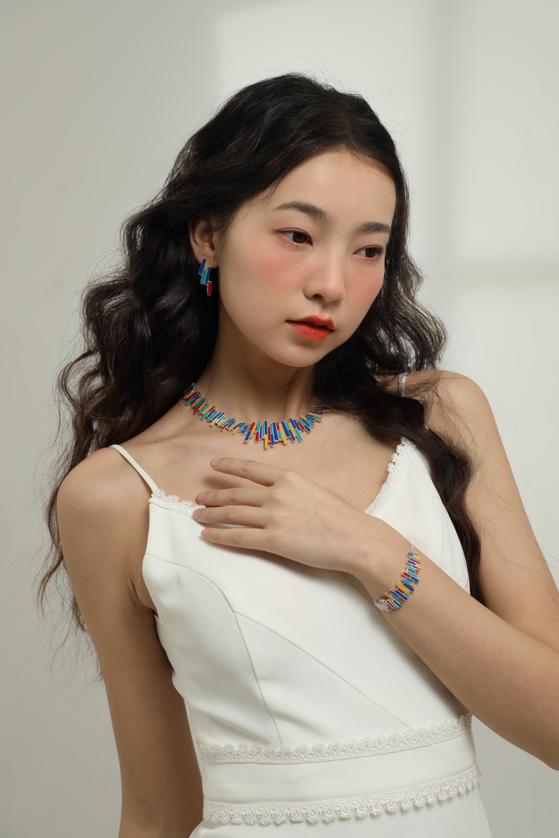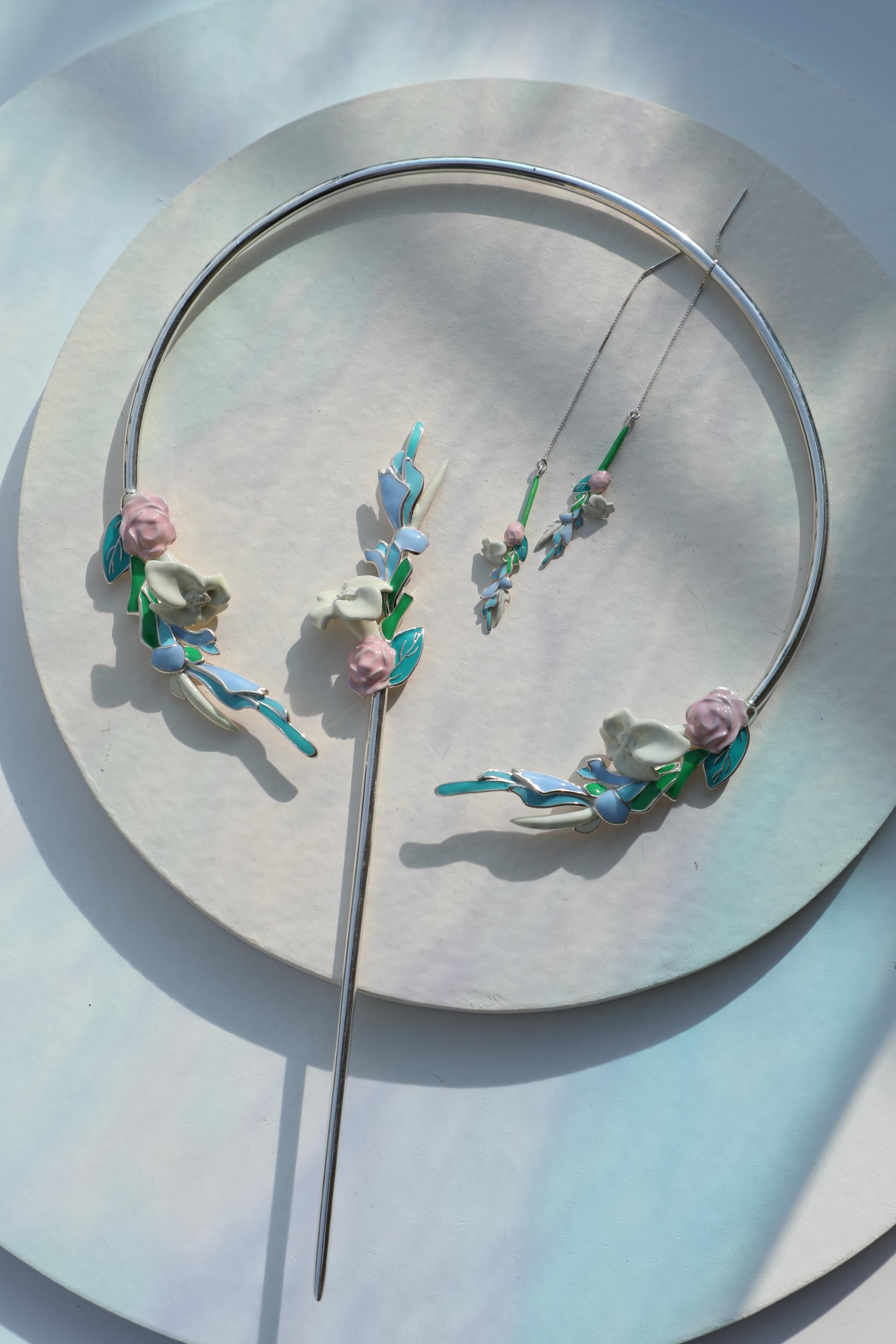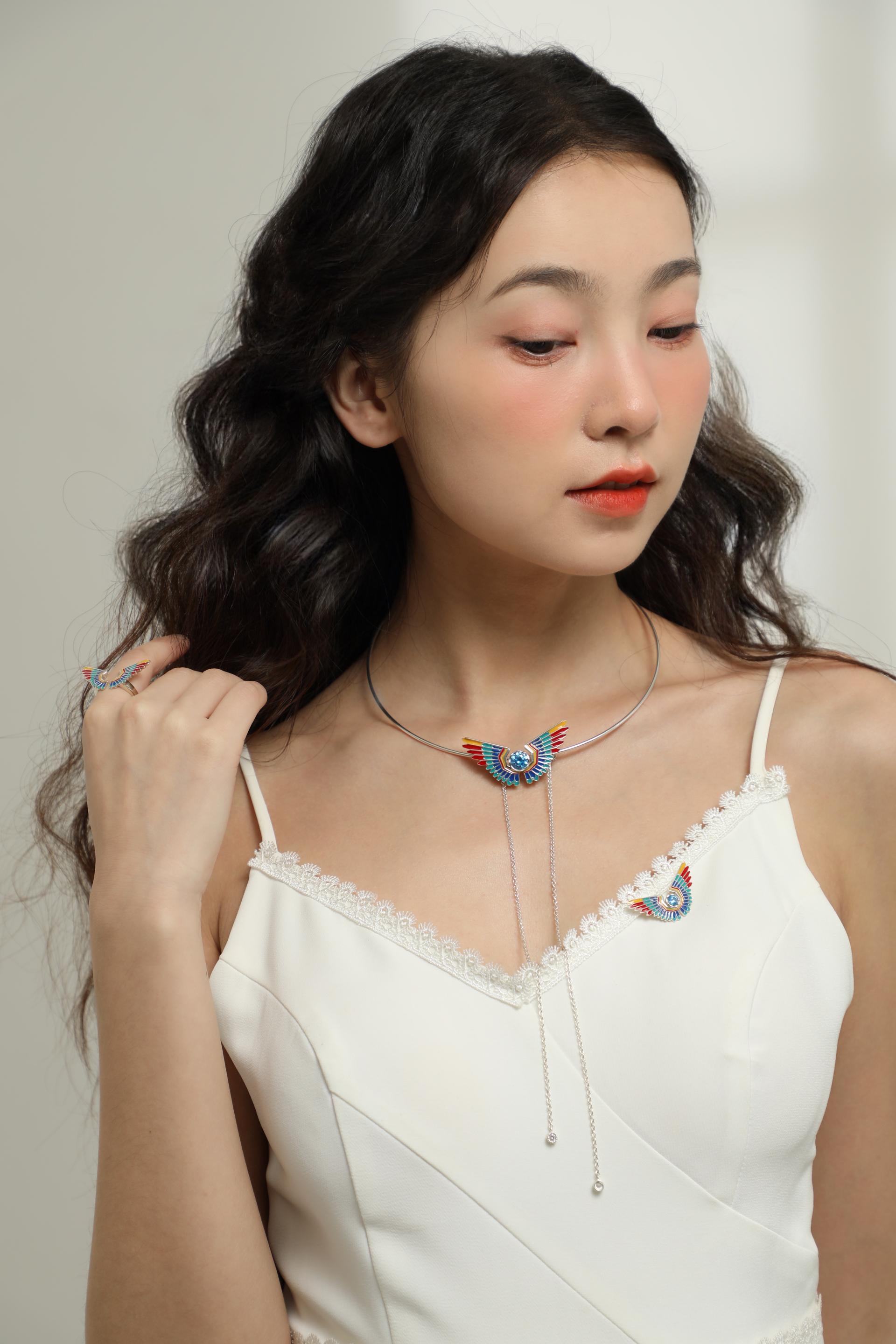 The Divine Admiration inspired by the stained glass windows of Macau’s 17 historic churches, the ' Divine Admiration ' jewelry series translates sacred artistry into wearable design. The five-piece collection reinterprets biblical scenes, geometric abstractions, and floral motifs from the windows, crafted in silver with vibrant enamel accents and colored gemstone embellishments.