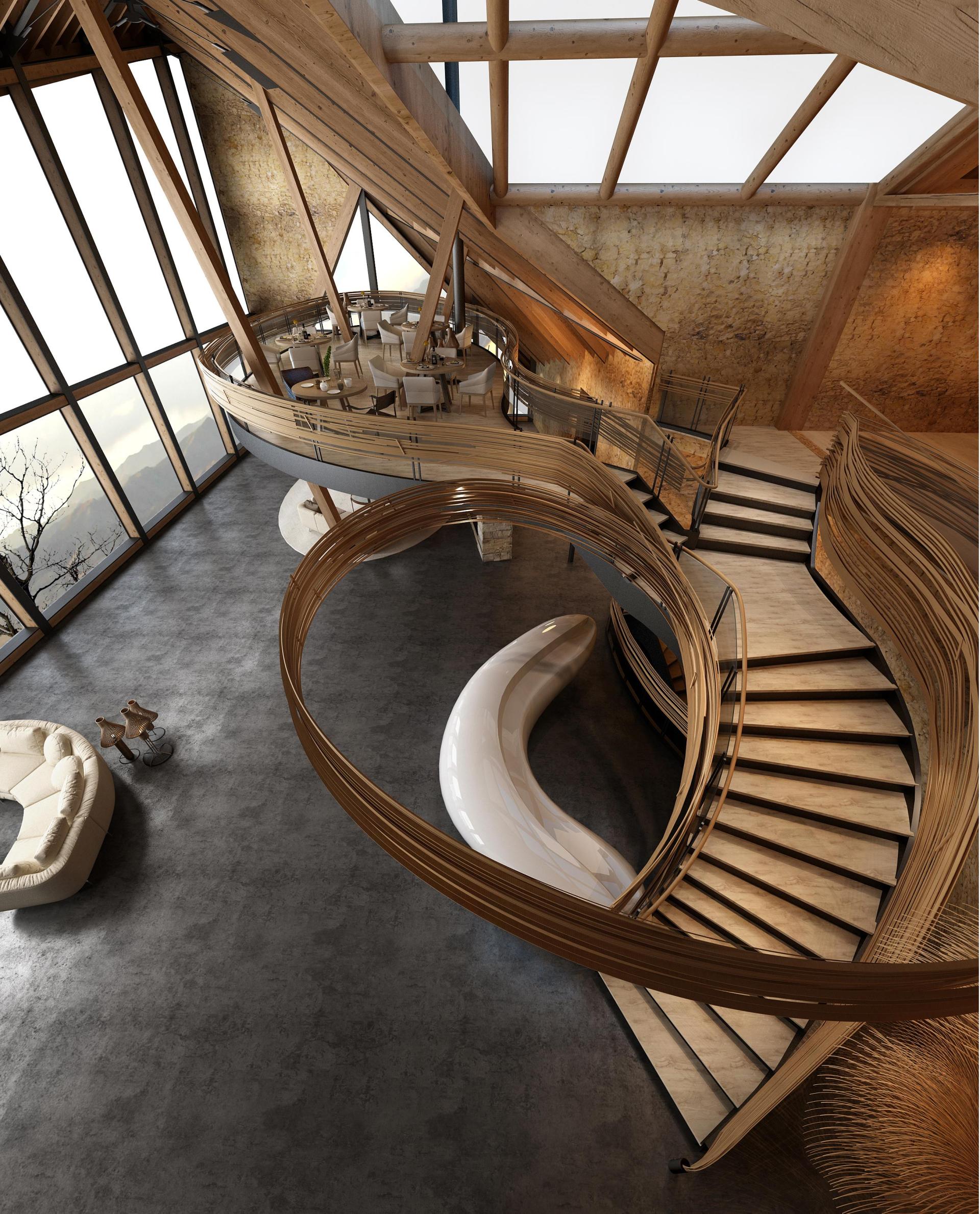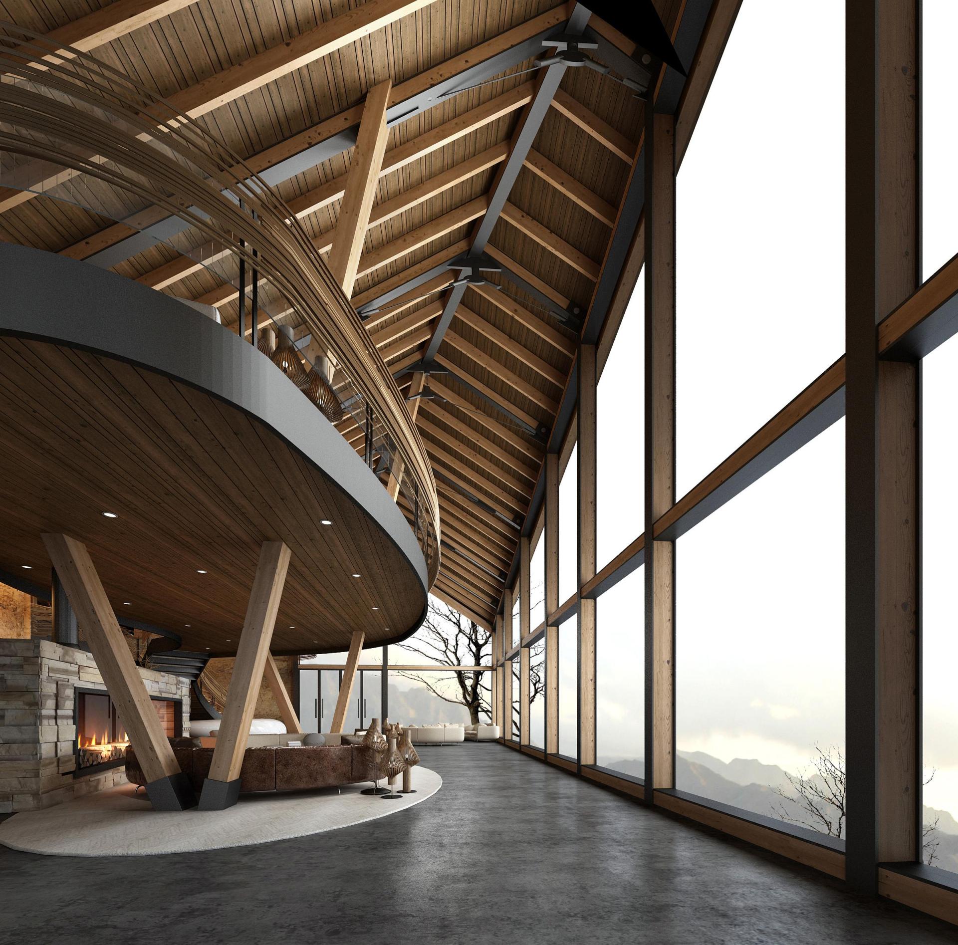 Across the lodge, the "framed view" technique is masterfully employed, echoing the Eastern garden tradition of "borrowed scenery." Through strategic openings, layered terraces, and sightline choreography, each space becomes a dynamic stage showcasing the landscape. The sloping terrain crafts an atmosphere of intimate coziness alongside vast, open vistas—catering to humanity’s dual yearning for shelter and adventure. Reclaimed timber and stone replicate nature’s textures, infusing warmth while honoring the raw power of the wilderness. The result is a seamless unity of organic form, spatial storytelling, and tactile serenity.