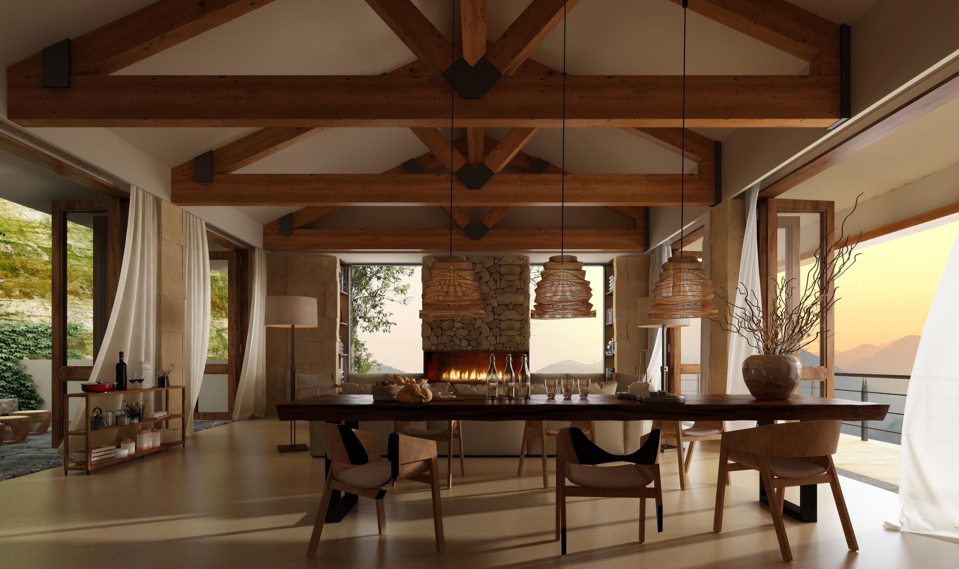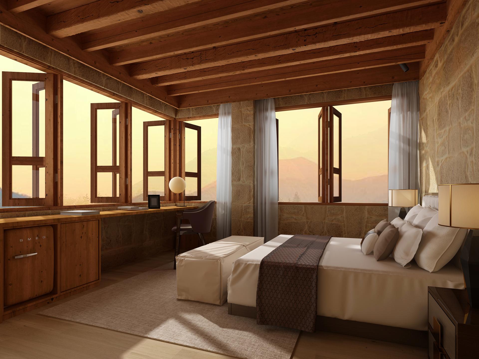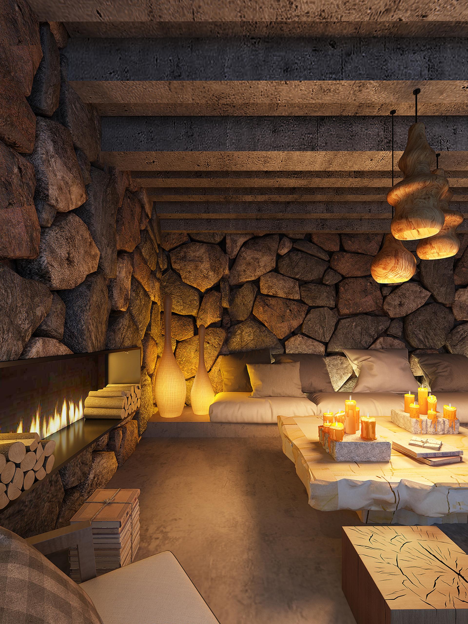 The entrance to the accommodation zone preserves the raw texture of natural caves, creating a sheltered, organic enclosure. Designs that incorporate exposed rock formations not only add rhythmic variation to the lodge’s layout but also enhance its layered depth and tactile charm. Inside the cabins, locally sourced, eco-conscious materials dominate—rammed earth walls and gravel finishes appear to "grow" from the terrain itself, reinforcing a sense of place while appealing to both global travelers and local cultural identity.