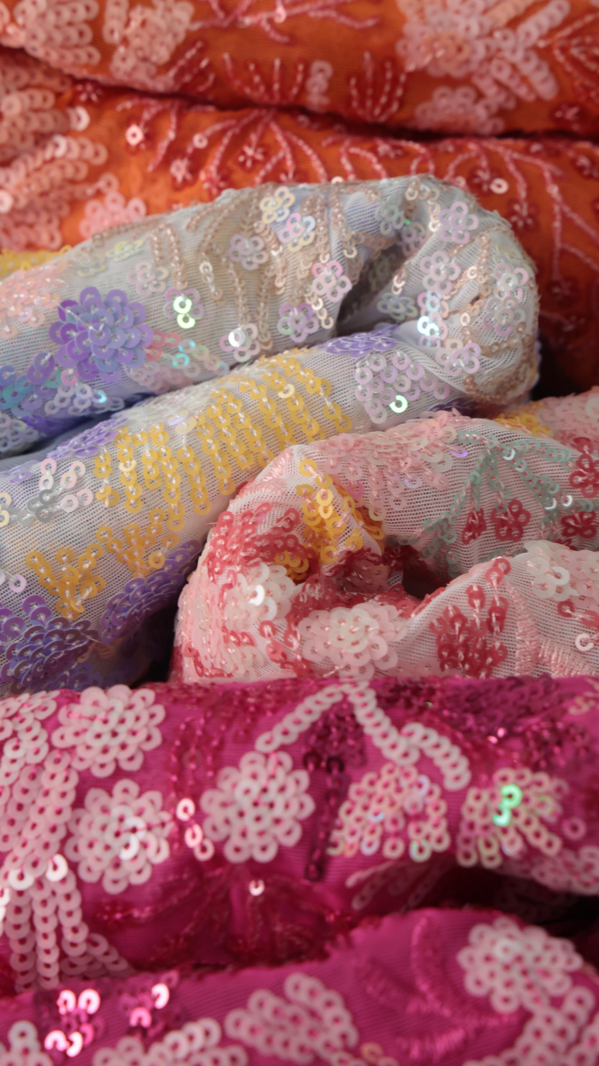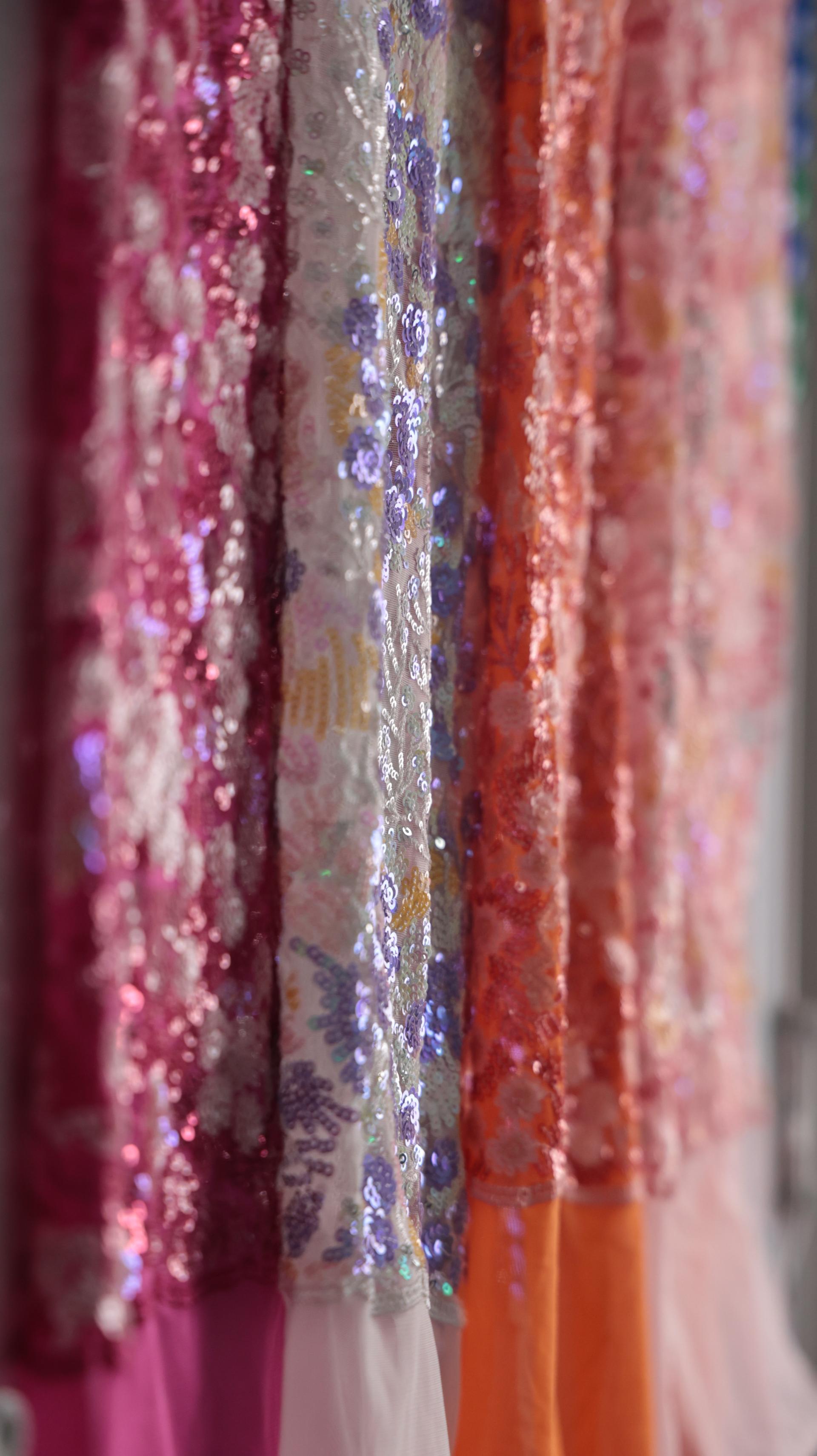 Delicate sequins adorn the fabric's surface, adding dynamic luminosity that enhances its visual appeal under lighting. This thoughtful embellishment gives garments an atmospheric quality, making them perfect for haute couture evening gowns, stage costumes, or contemporary neo-Chinese designs. Each piece crafted with NÁTIVA gives the wearer an aura of sophistication and refined elegance.