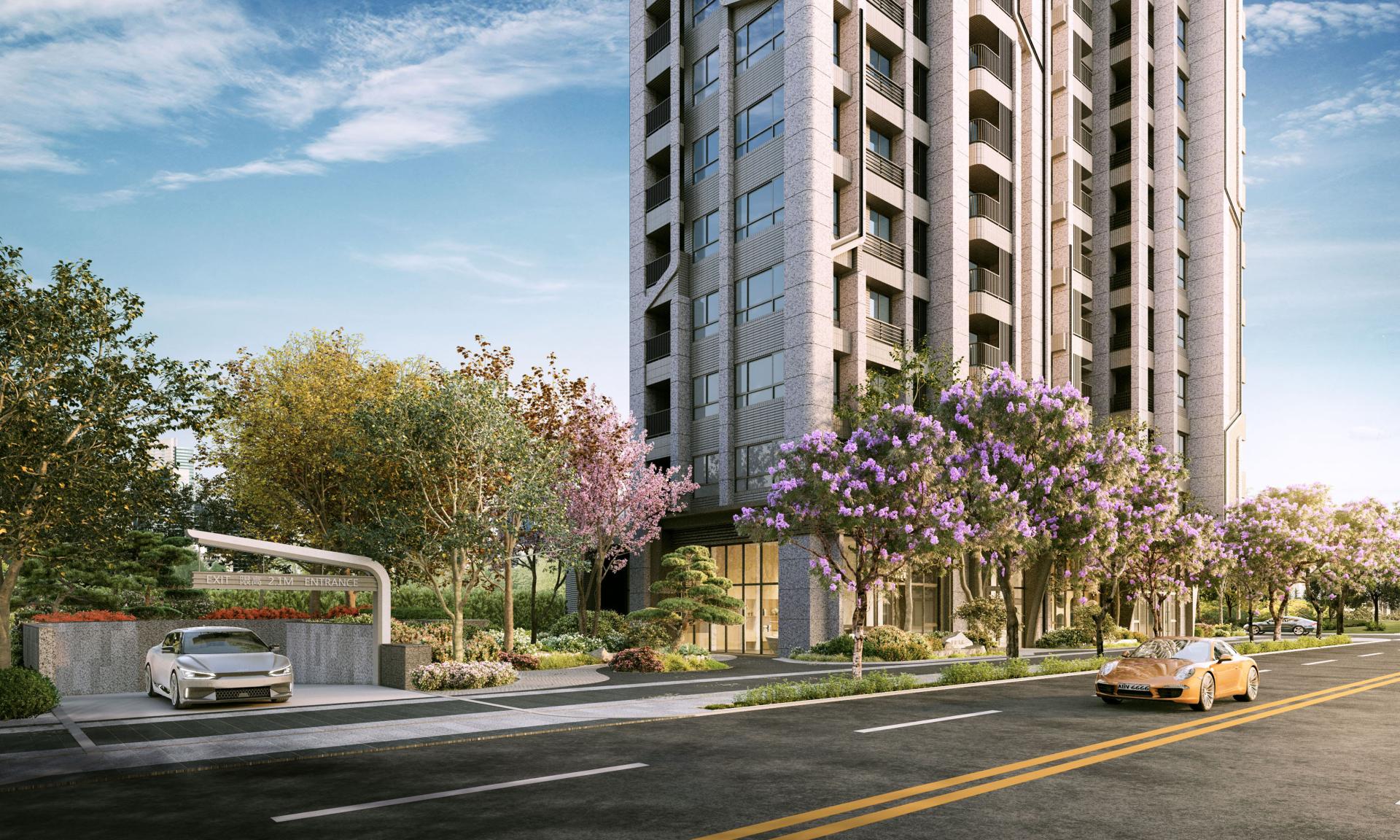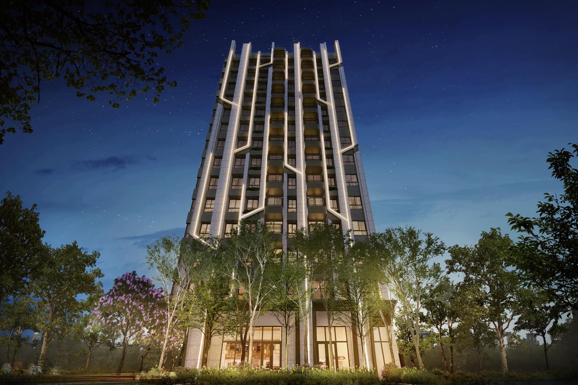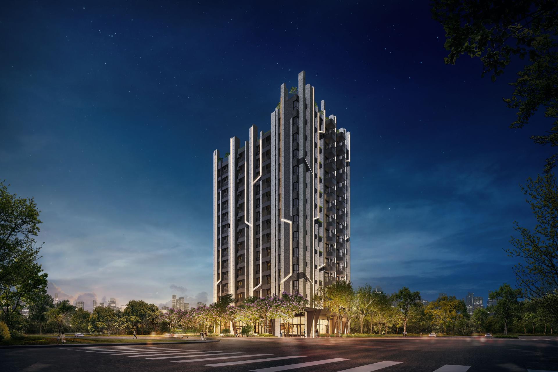 Situated along the verdant boulevard of Wenlin North Road in Taipei, City Diamond occupies a prized corner site with dual street frontages. Positioned as a gateway to the Beitou-Shilin Technology Park, the design envisions the building as a rising star within the Smart City initiative. Modest in presence yet striking in form, the architecture draws inspiration from the themes of ecological woodland and intelligent urbanism. Clean, crisp lines strikingly evoke a contemporary tech aesthetic, while the vertical rhythm and staggered volumes gracefully reveal a quiet, refined humanism beneath the surface.