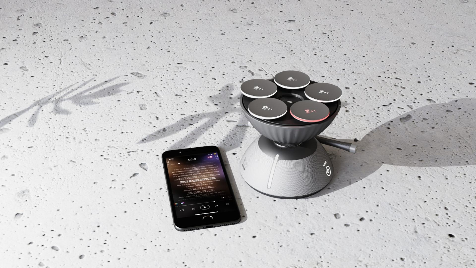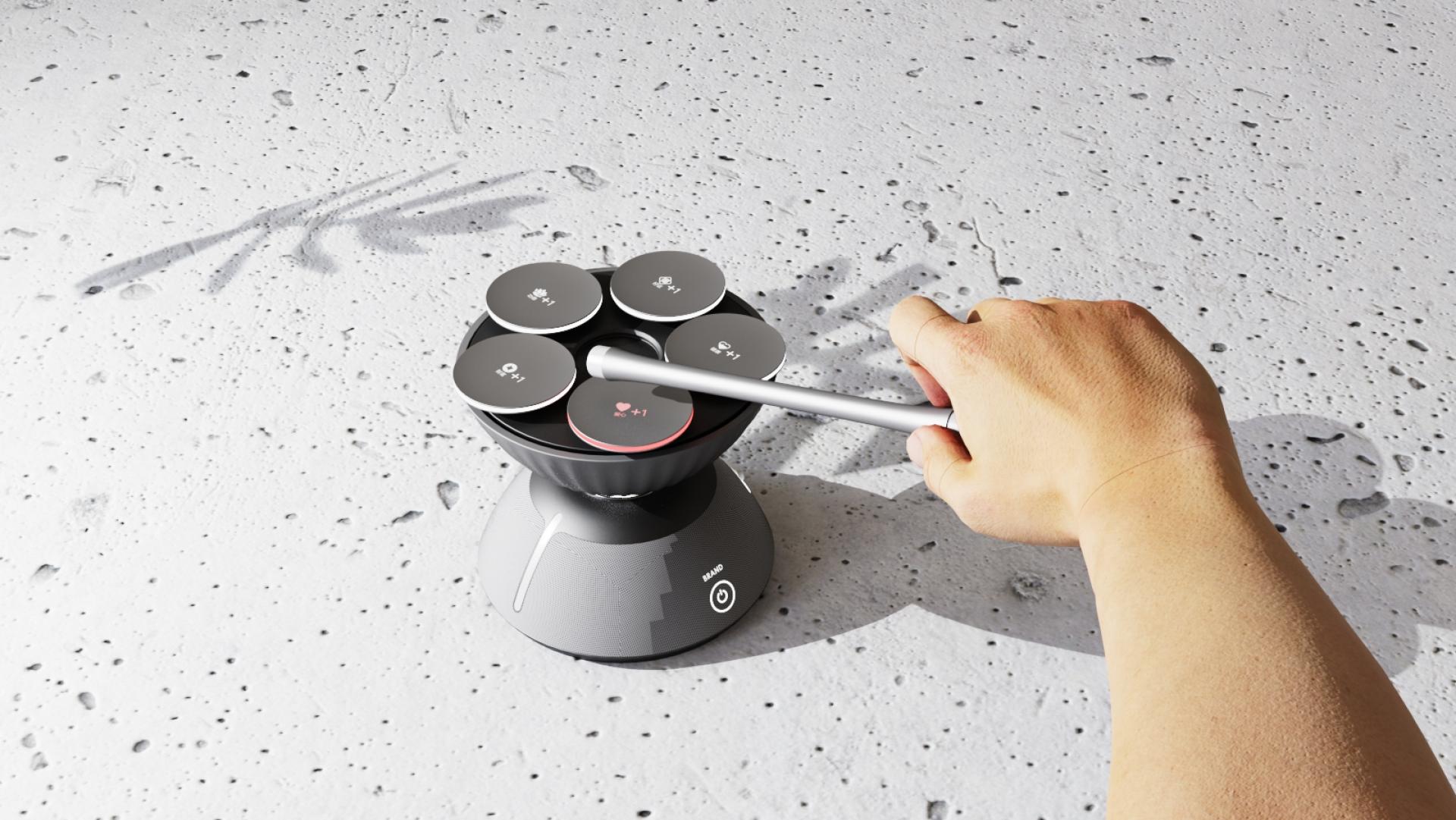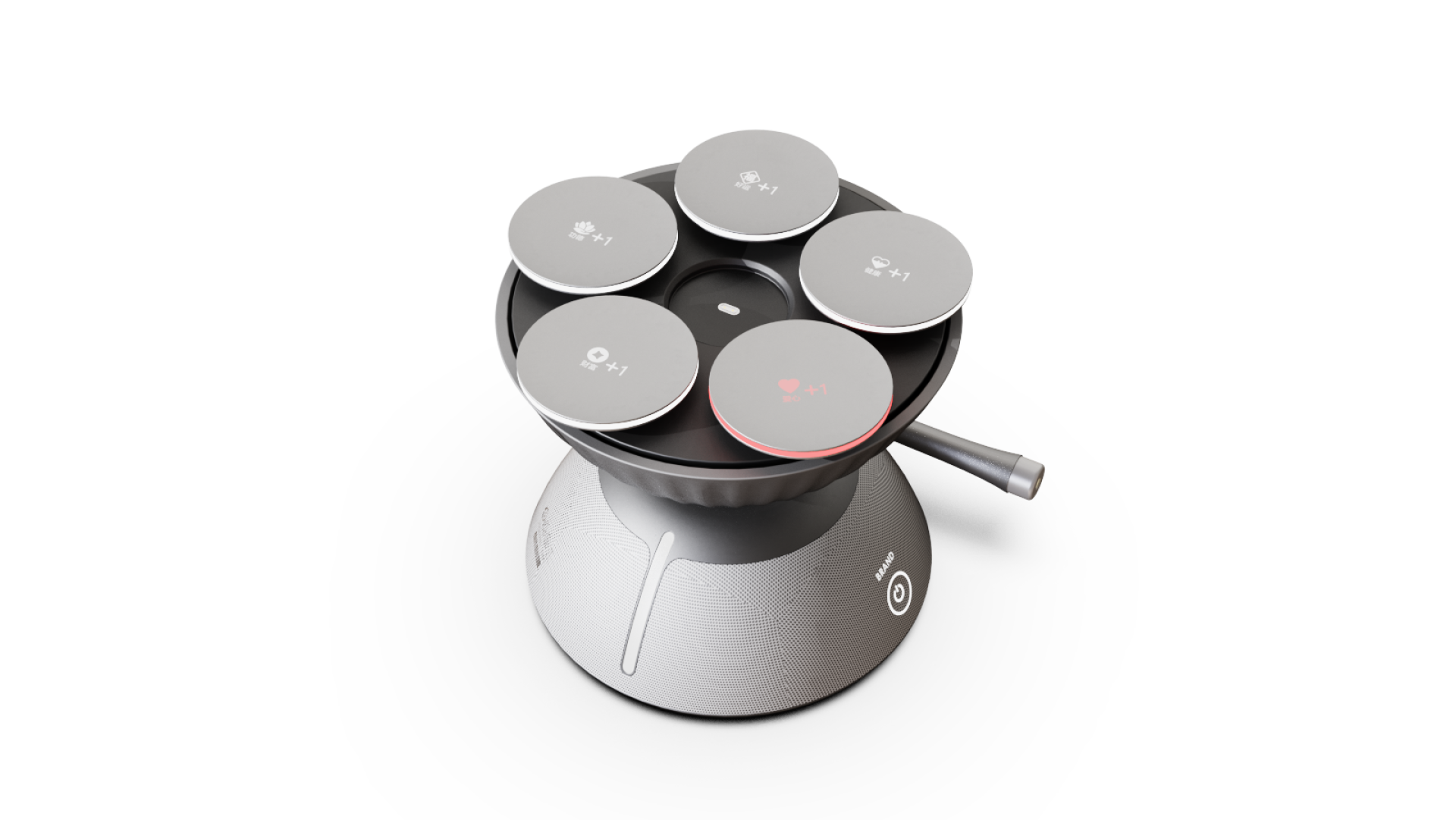 Inspired by the traditional wooden fish, this stress-relieving speaker combines ancient culture with modern technology, providing users with a unique interactive experience. The product surface is designed with multiple interactive discs that can be struck, each of which integrates different patterns and information, symbolizing blessings and wishes. Users can interact by tapping along with the flashing lights on the disc. Meanwhile, the main speaker will play corresponding music according to the tapping rhythm, creating a pleasant audio-visual interactive experience for both the body and mind. This design not only meets users' tapping needs when praying for blessings, but also effectively relieves stress and brings tranquility and relaxation through the combination of music and light and shadow.
