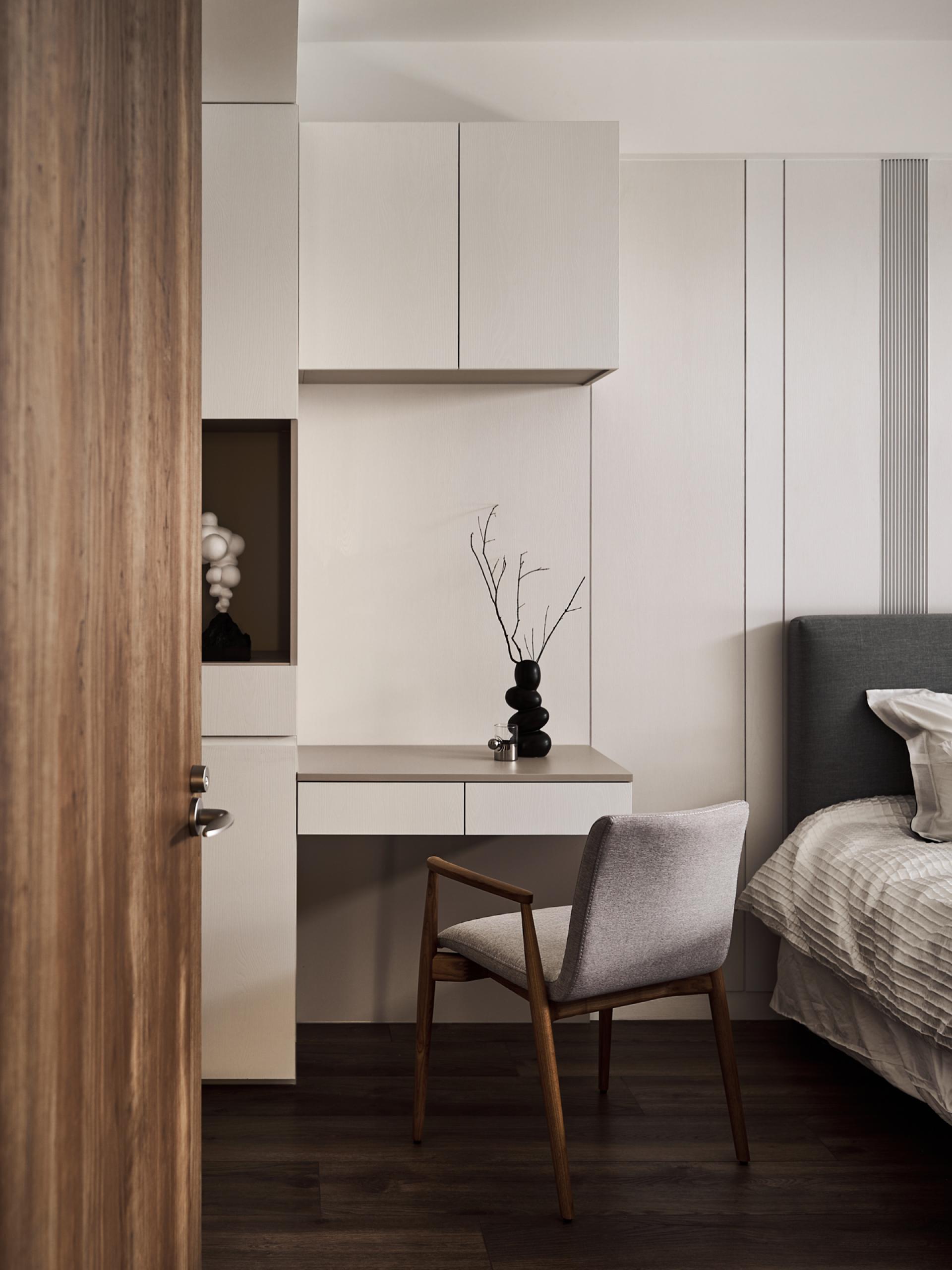 The homeowner, a retired Chinese literature teacher, possesses a refined sensitivity to spatial ambiance and aesthetics. She favors a serene palette and natural materials that evoke calmness and depth. Her favorite spot in the entire home is a cozy reading nook designed just for her—an extended window seat by the desk overlooking a lush park. As afternoon sunlight filters through the sheer curtains, she often sits there quietly, immersed in a book with a cup of tea in hand. The space, thoughtfully crafted, allows her to embrace slow living and find comfort in simplicity. It has truly become a sanctuary for the soul.