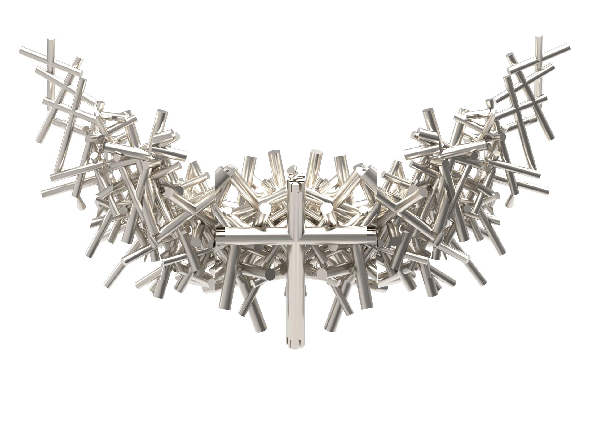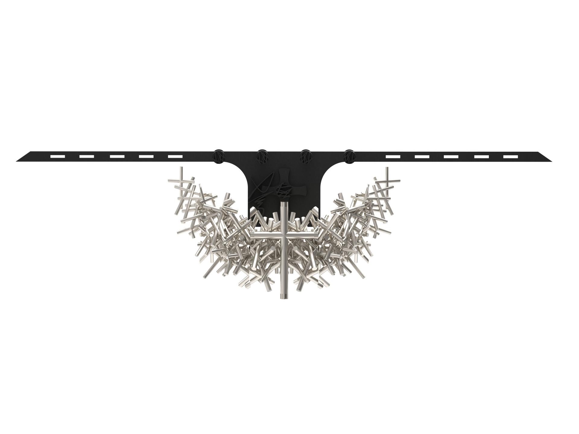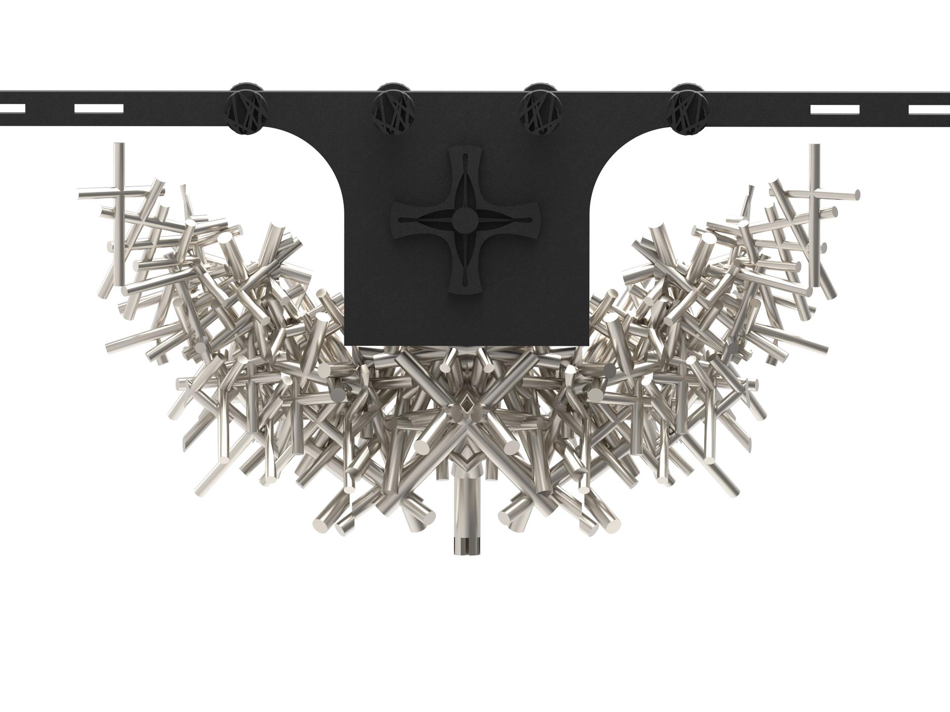 This work is a response to the rigid stratification of social classes — a critique of a system where upward mobility feels increasingly out of reach. The piece is constructed from repeated cross forms, arranged in a manner both chaotic and ordered, creating a structure that is visually minimalist yet structurally complex.