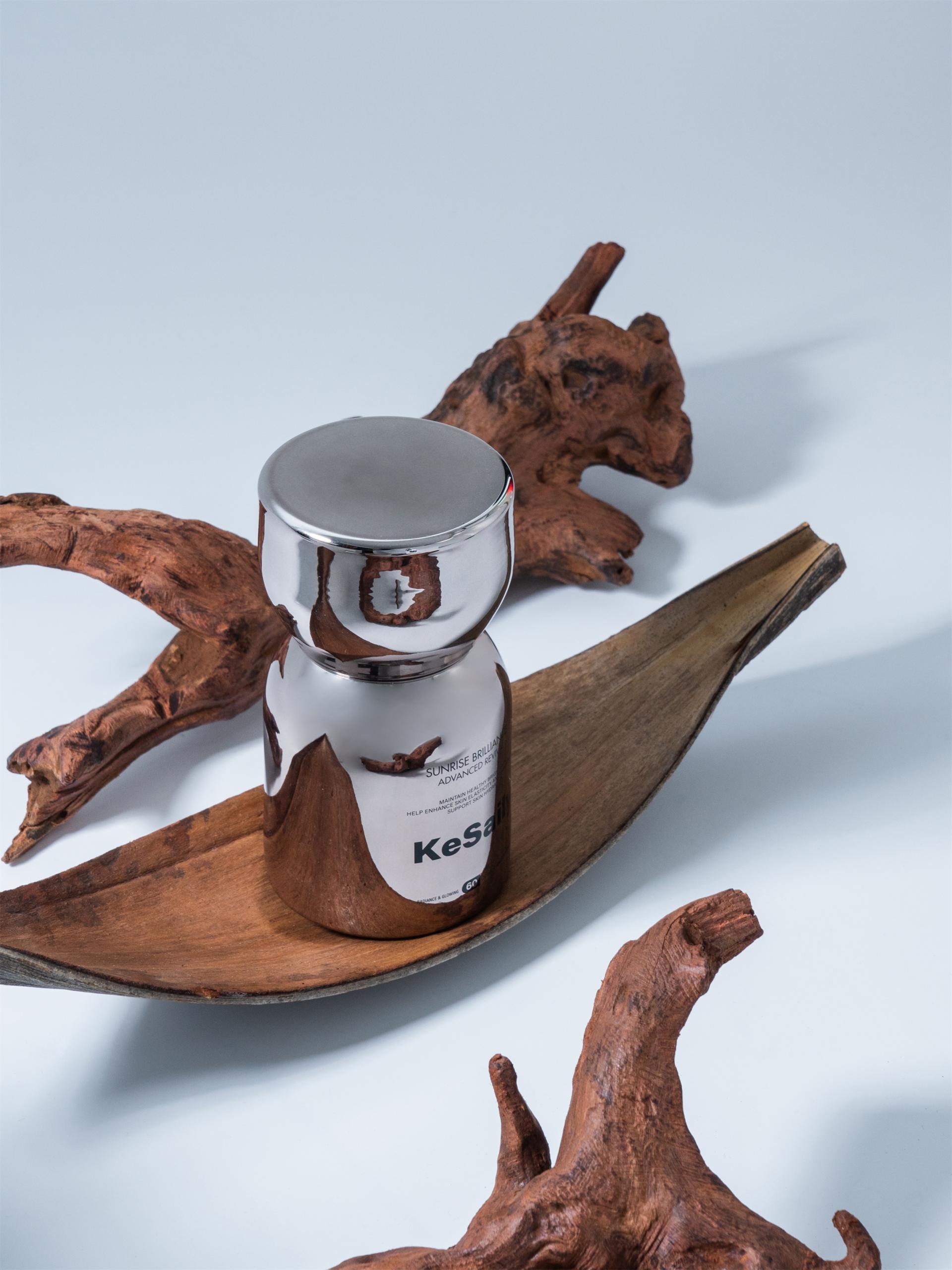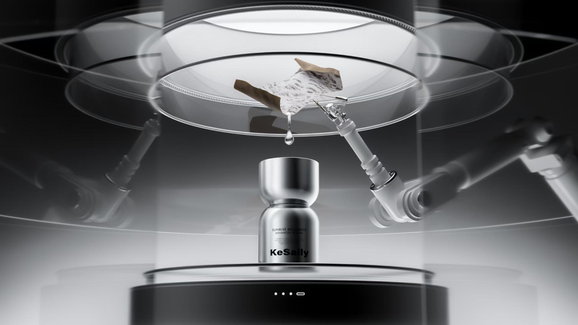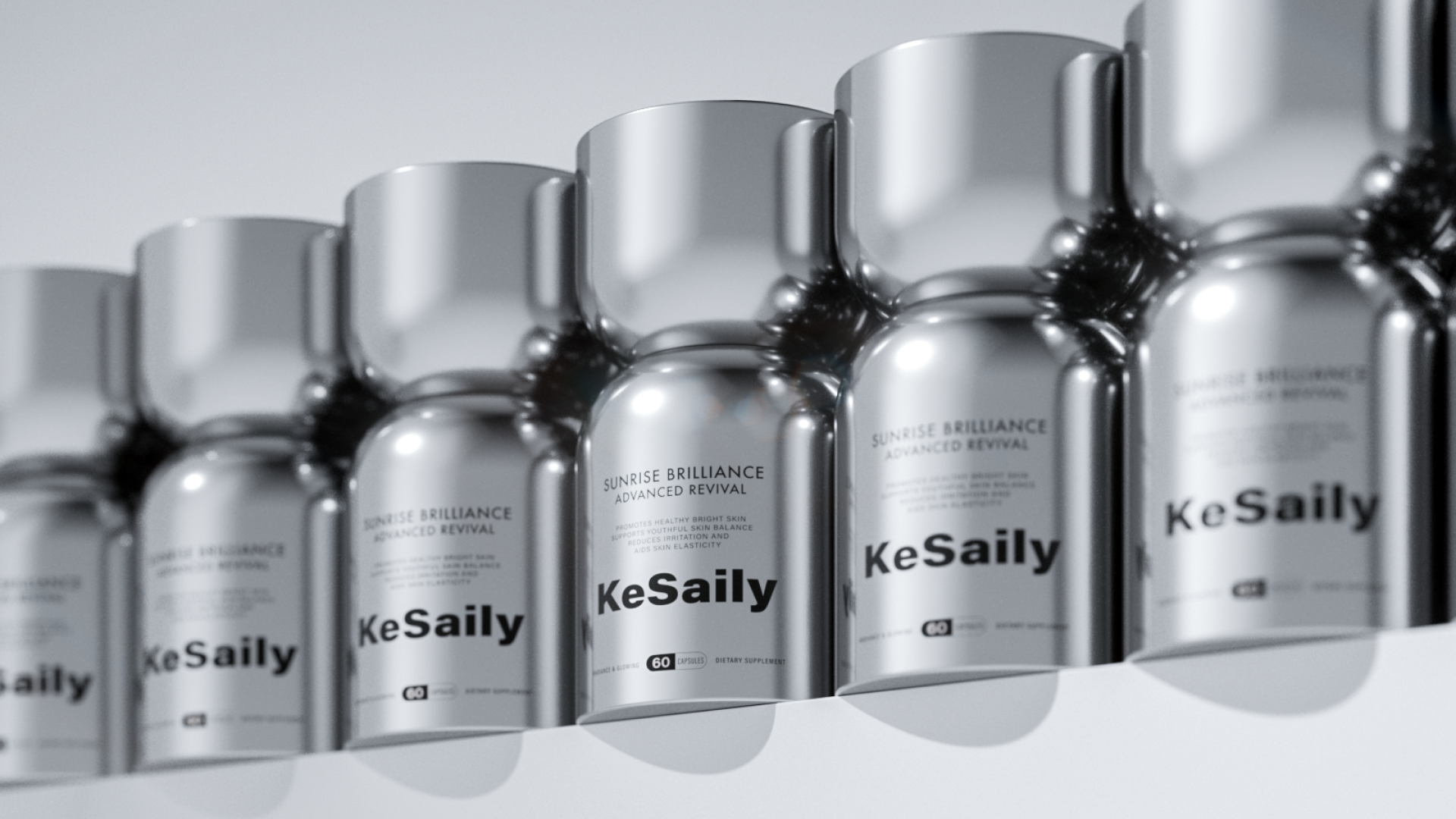 KeSaily features a sandglass-shaped bottle design, symbolizing the struggle against time. The bottle surface is treated with a silver electroplated glossy finish. When light hits this surface, most of it is reflected rather than absorbed. At the same time, its shiny surface also symbolizes the defense against external light damage. This design creates a deep connection between visual expression and the product’s "anti-photoaging" properties, both aesthetically and conceptually.