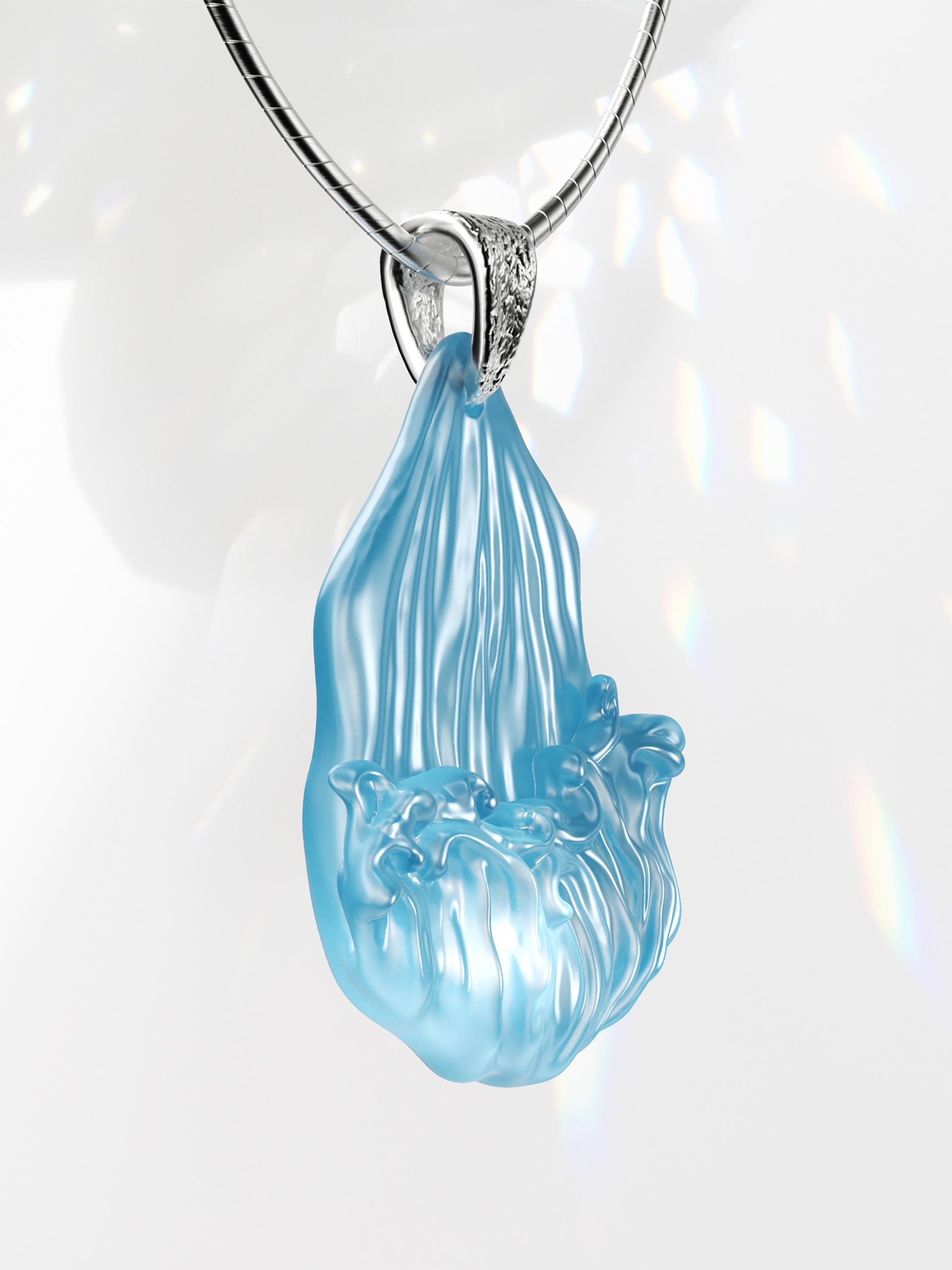 Carbon Tide is an innovative wearable that transforms climate data into a poetic, embodied experience. Blending sustainability with smart design, this ocean-wave-inspired pendant symbolizes the rising sea levels caused by climate change and invites a deeper connection between the wearer and the Earth's shifting rhythms. 3D-printed using 100% biodegradable seaweed-based bioplastic and equipped with low-power electronics, it represents a seamless integration of material innovation and environmental responsibility.