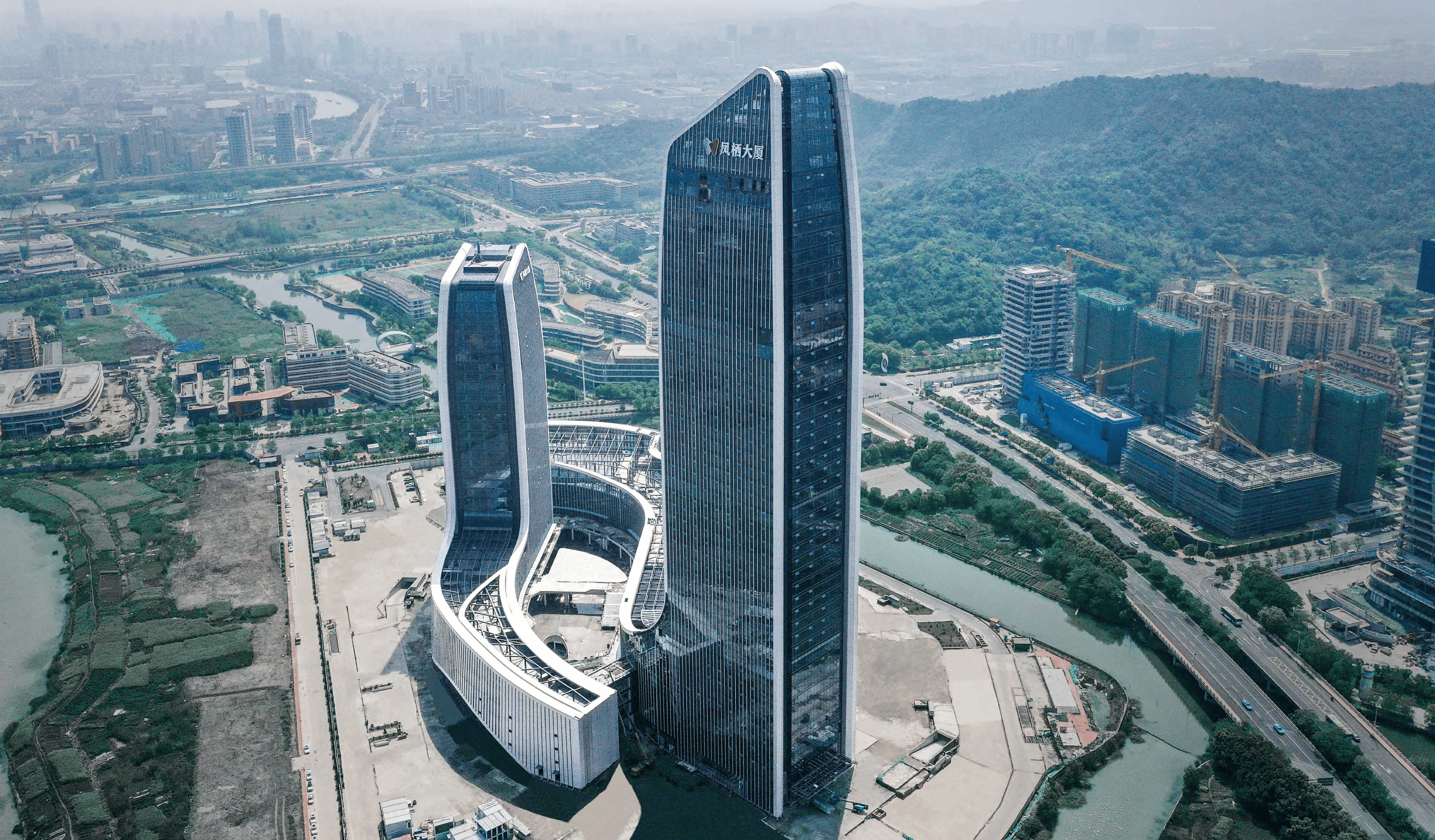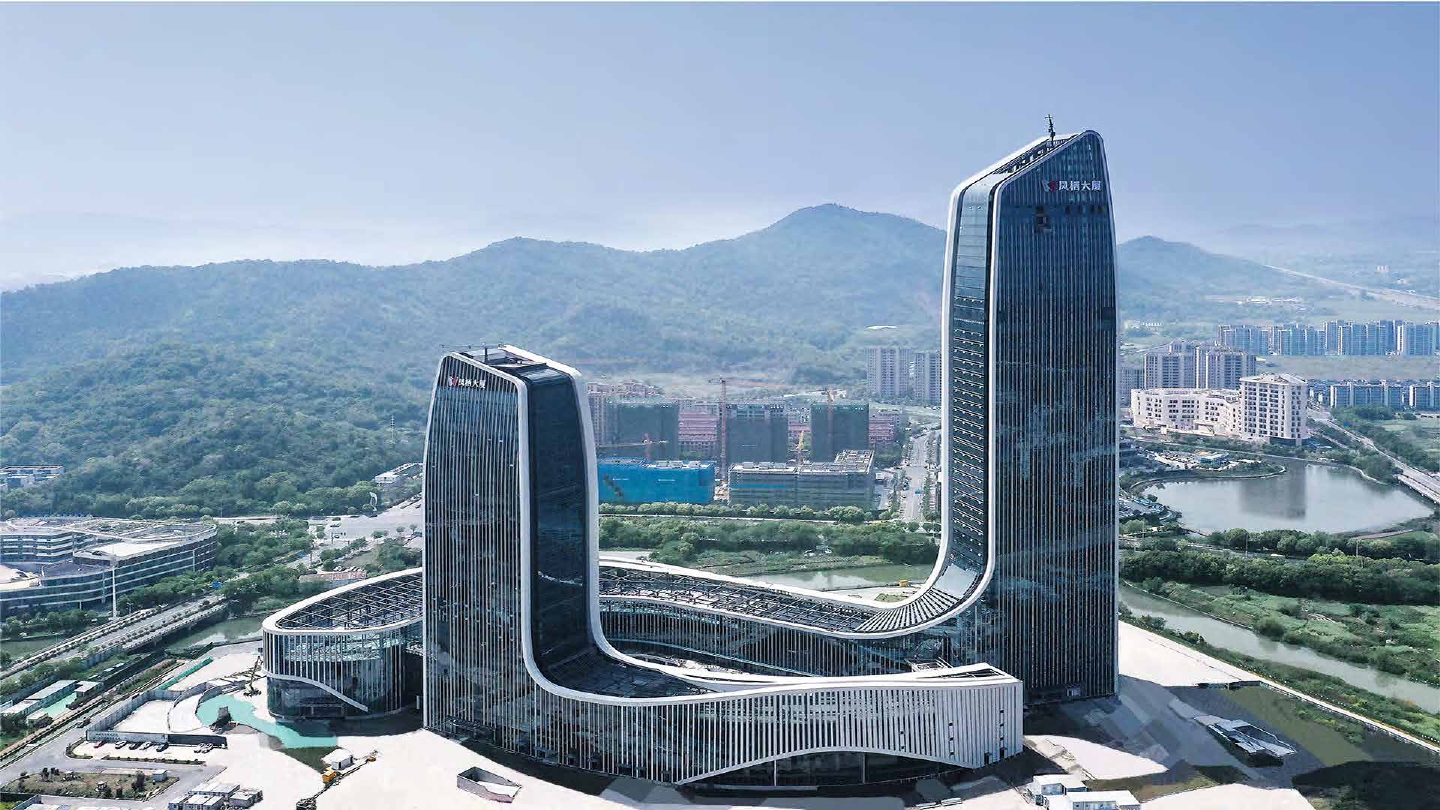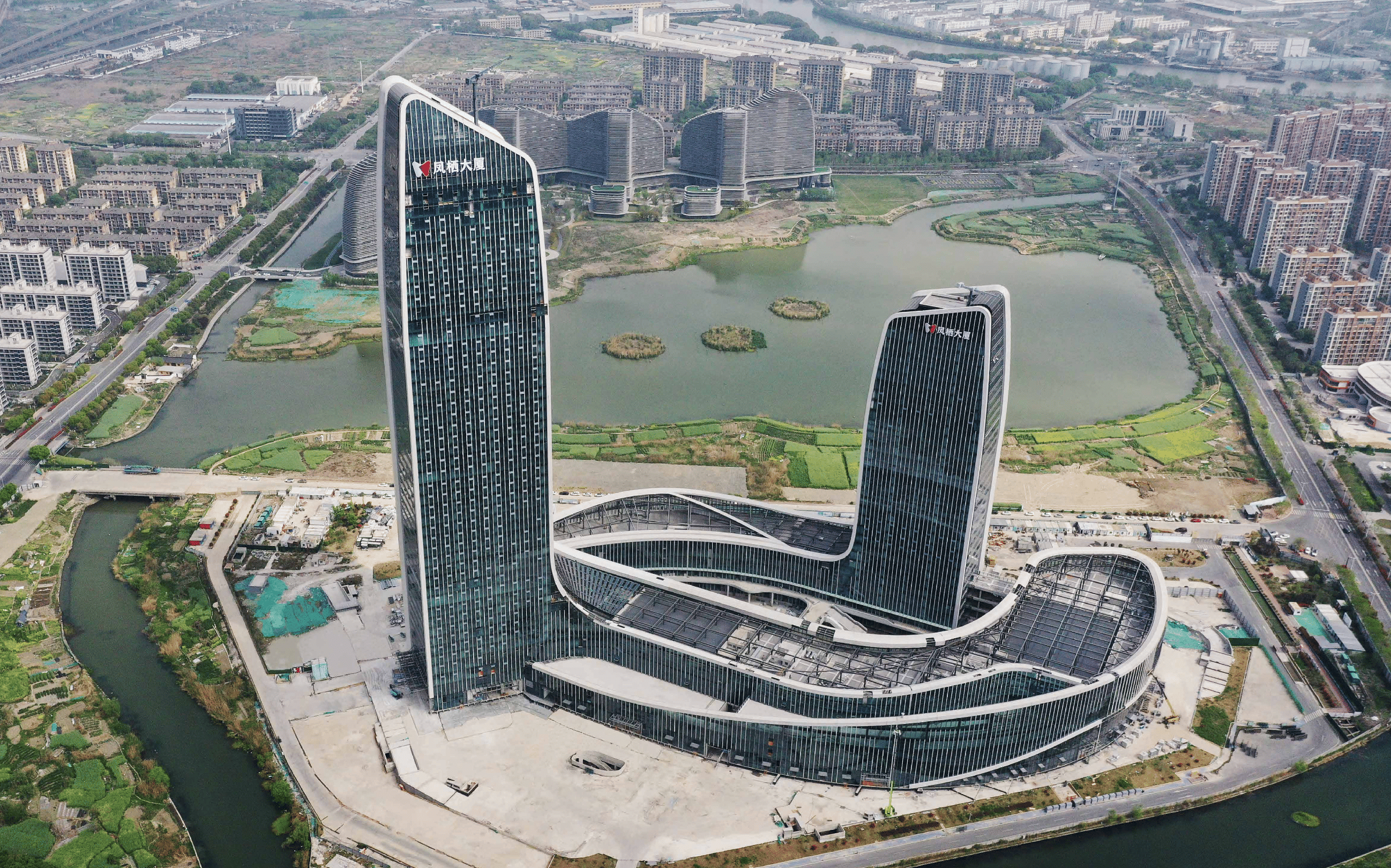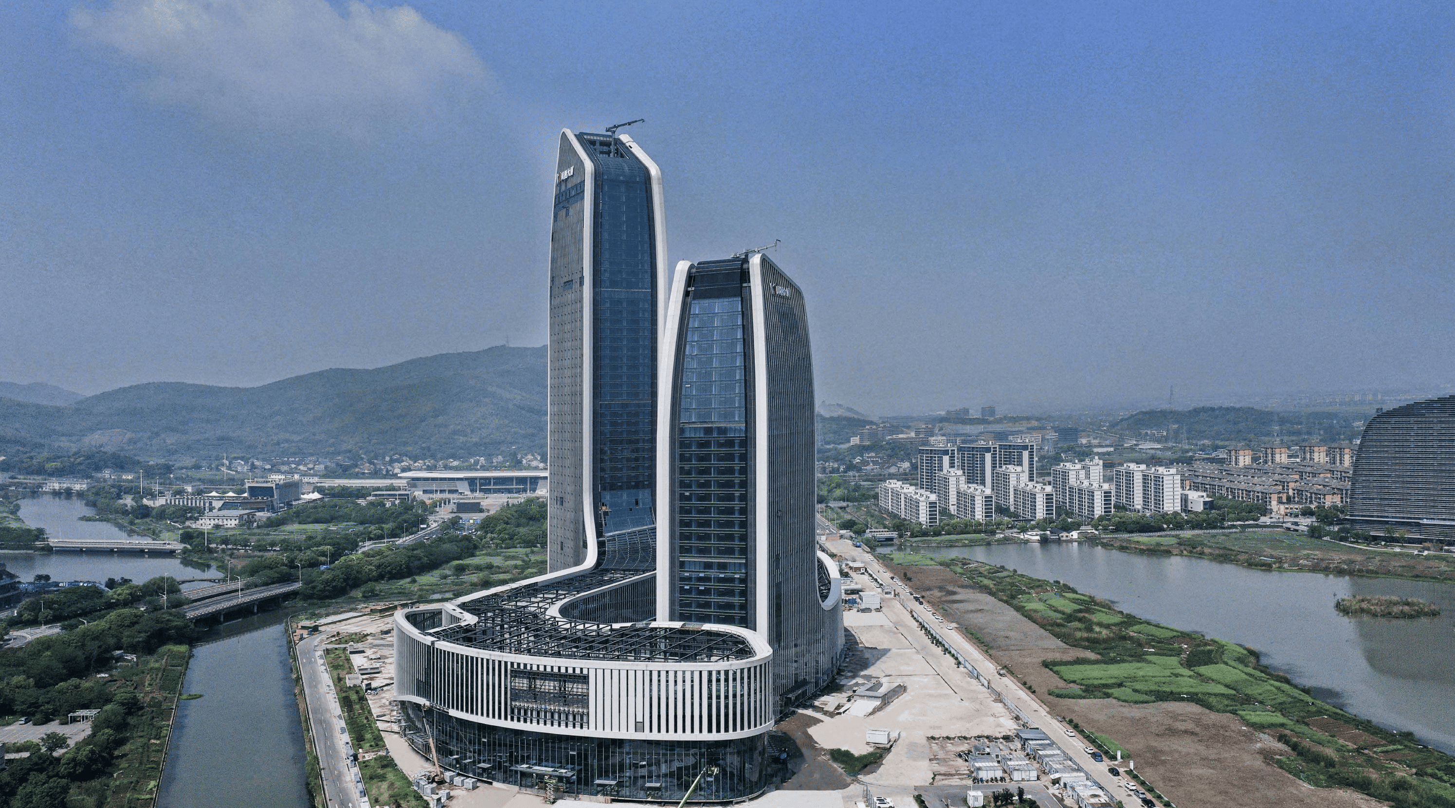 This project is situated in the core area of Huzhou Eco-Science City, positioned as a comprehensive hub integrating headquarters offices, commercial spaces, talent complex, and urban supporting facilities. Aiming to create a new green ecological landmark with super high-rise buildings, it will serve as a crucial platform for regional future development. With a total construction area of approximately 310,000 square meters, the complex features two super high-rises comprising 46 and 30 stories respectively, reaching a maximum height of 230 meters.