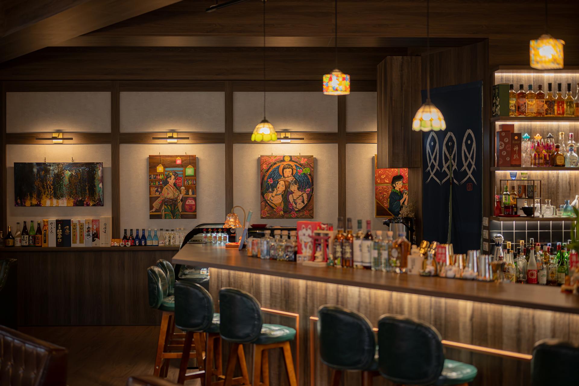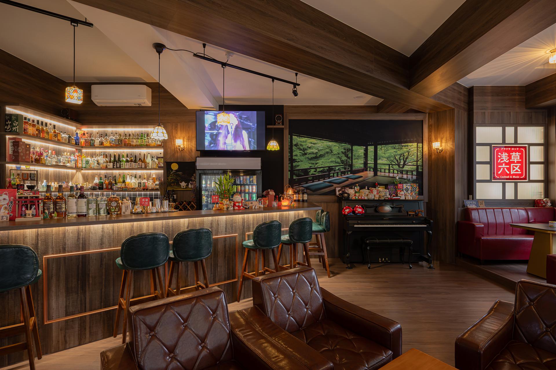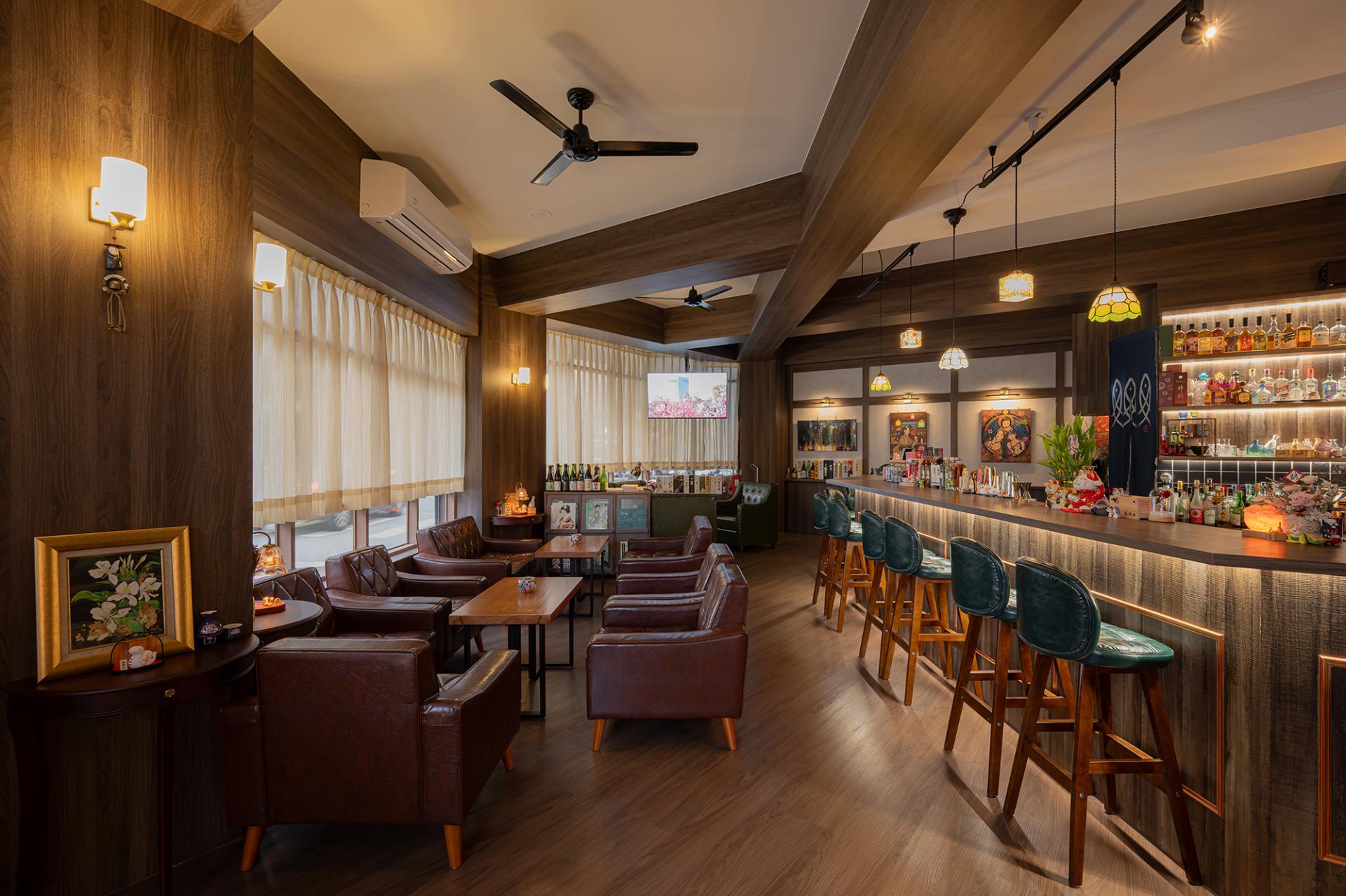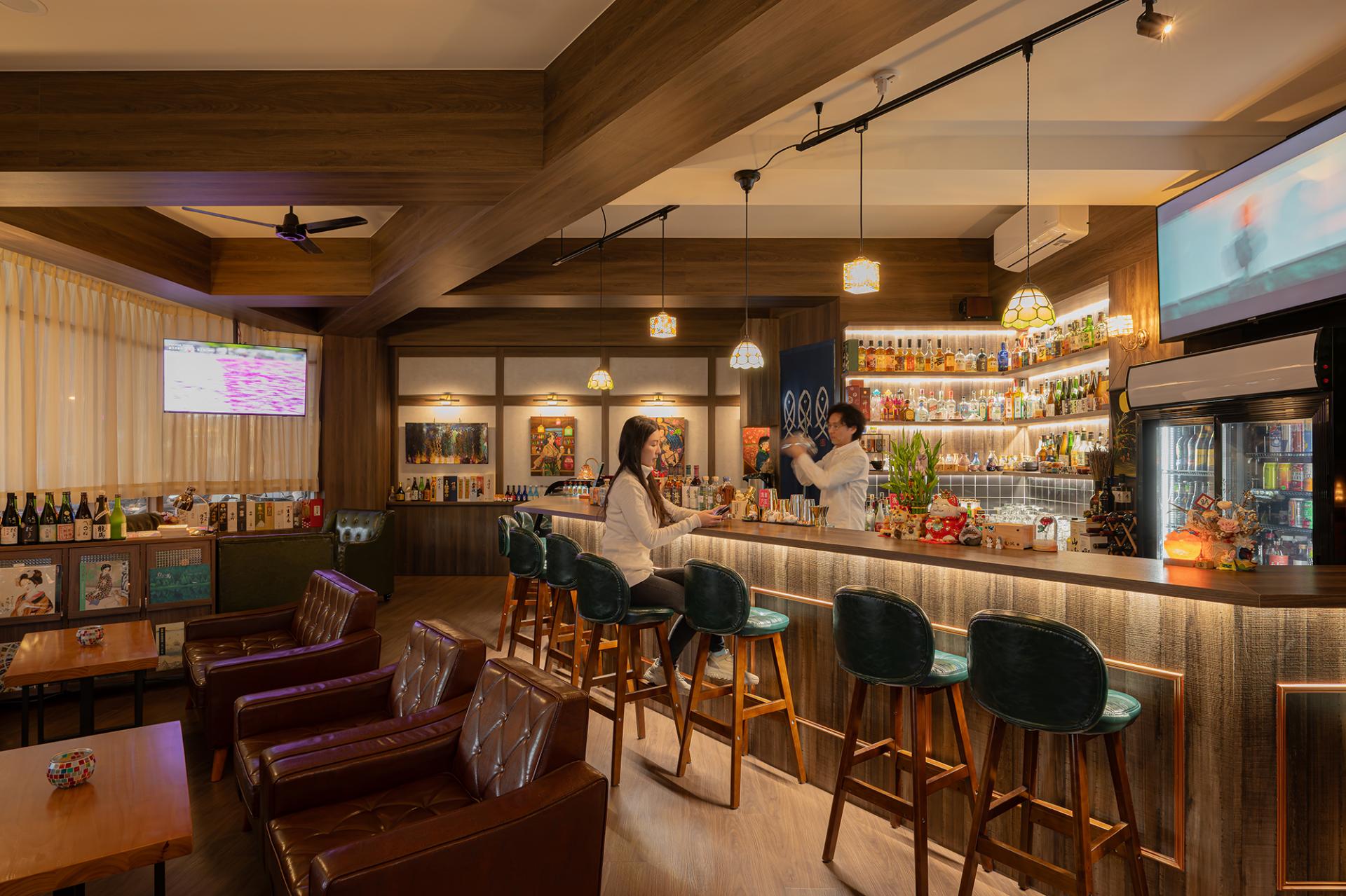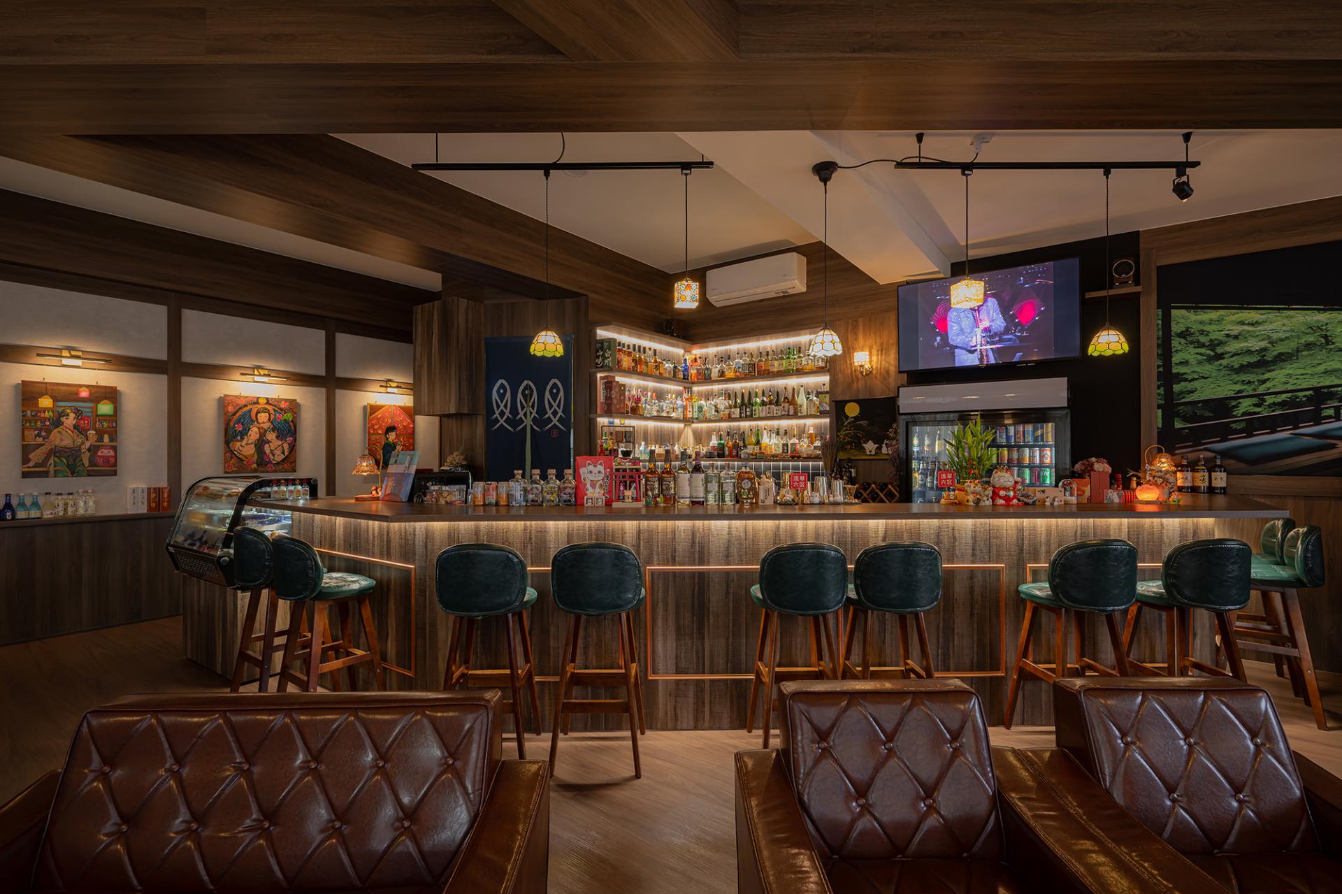 The project is located on a corner in Taoyuan District in a building that is over forty years old. The design is inspired by the owner's passion for Taisho-era culture—a unique period that merged traditional Japanese aesthetics with Western luxury. Unlike conventional Japanese spaces characterized by tatami and paper screens, this project precisely captures the spirit of Westernization in the Taisho period. Centered on the atmosphere of the era, the design is developed through careful consideration of color, materials, and spatial composition. Within the space, one can observe both the delicate spirit of Yamato and the splendid artistic expressions of Western influence, creating a serene bar that feels both unfamiliar and yet distinctly familiar.