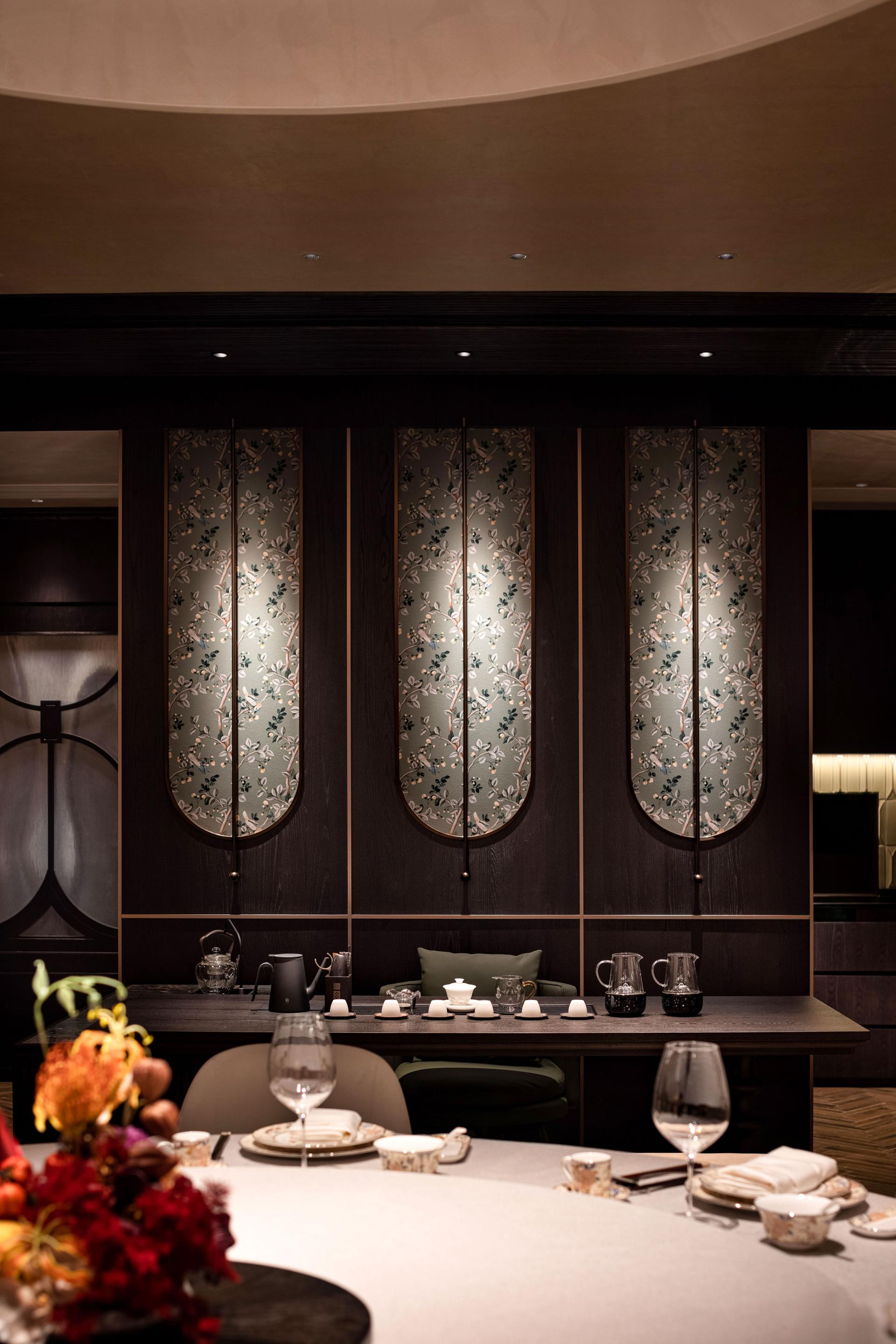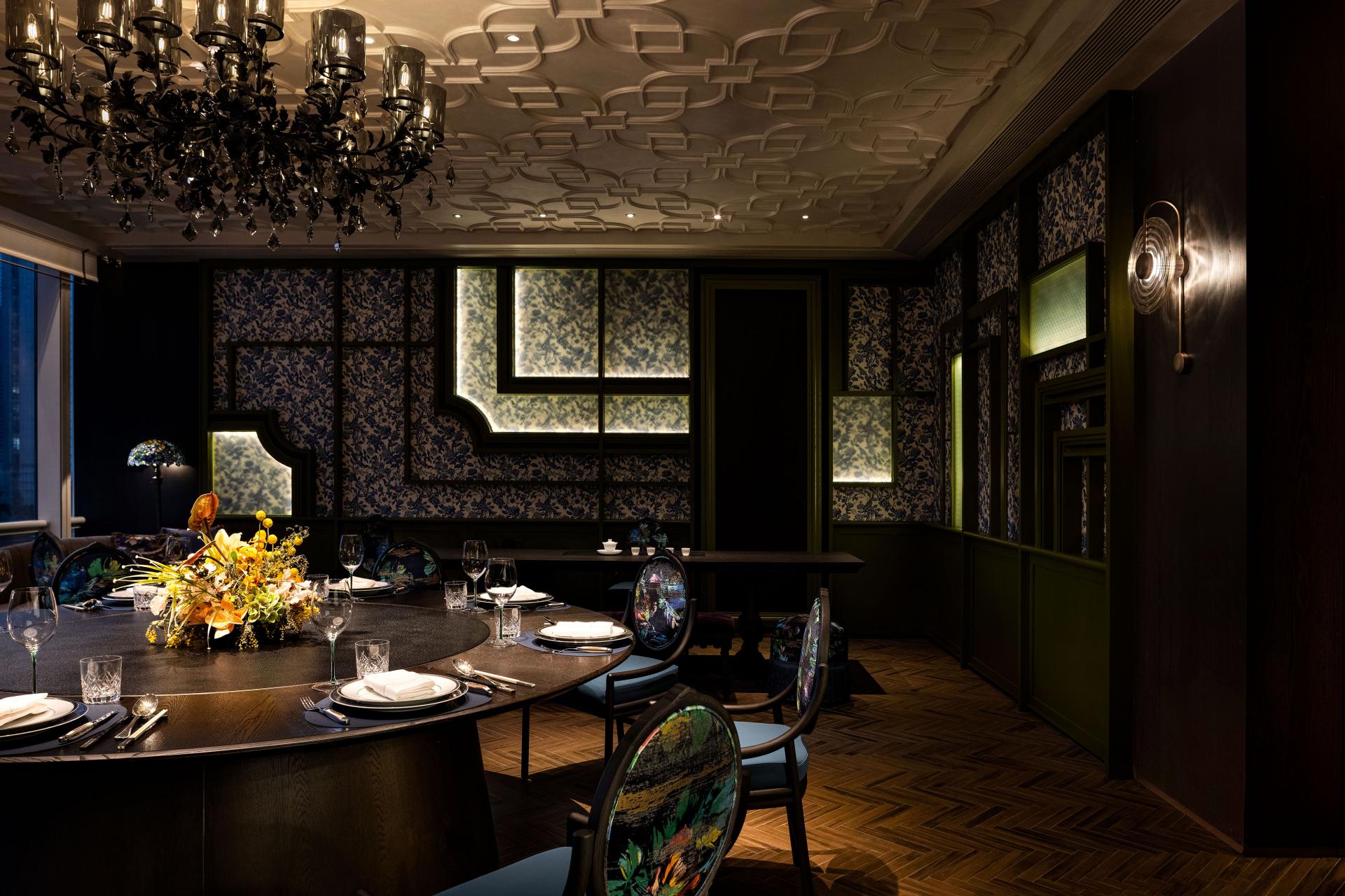 We are dedicated to the color rendition of the lighting, ensuring that the delicate hues of exquisite dishes are beautifully displayed while creating a harmonious dining environment. This allows guests to capture stunning photos from any angle during their dining, gatherings, or celebrations. Additionally, in the bar area, we use lighting to illuminate a metal-carved Chinese lampshade, creating shadows reminiscent of traditional Chinese paper lanterns, allowing patrons to indulge in this enchanting space while enjoying drinks and lively conversations.