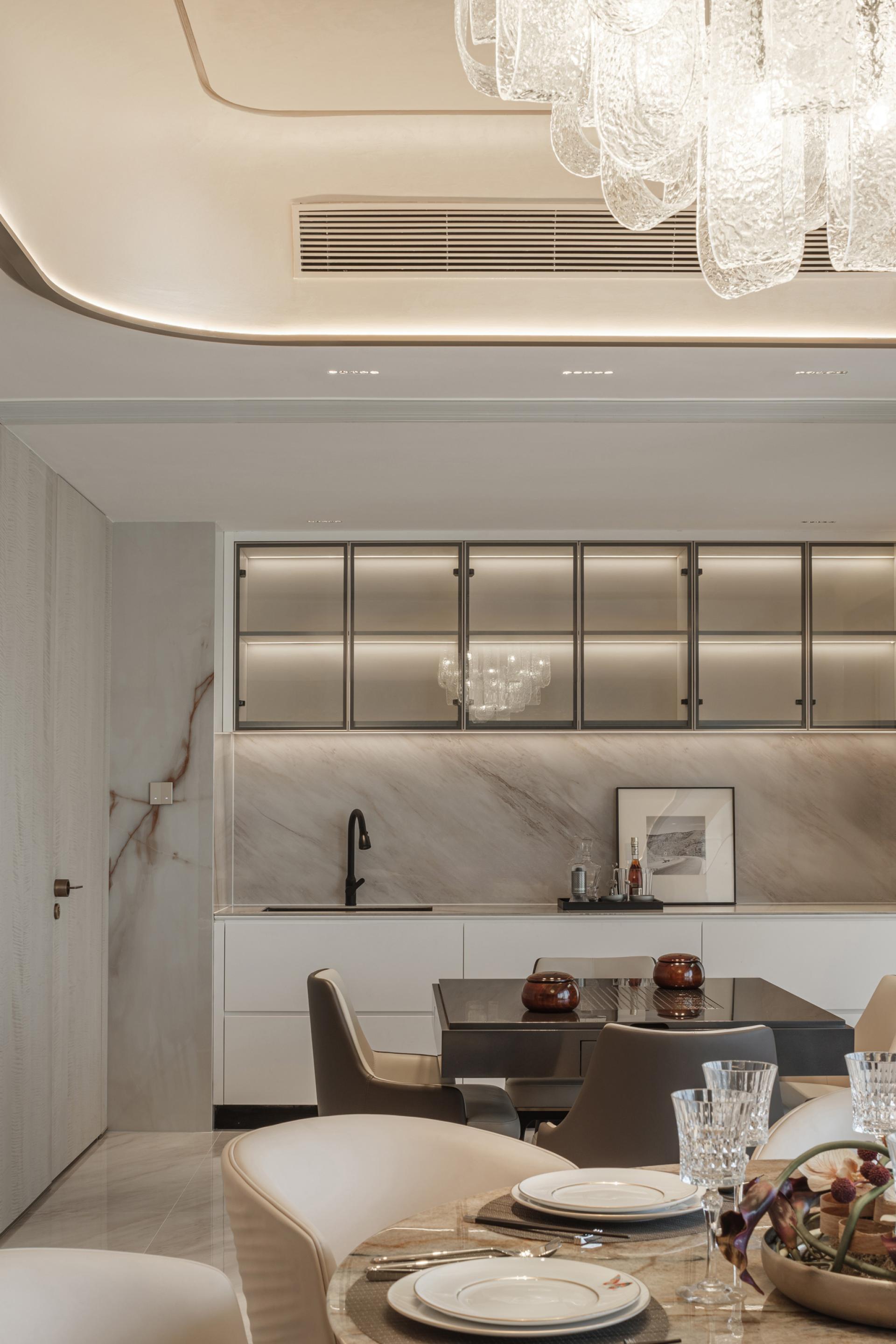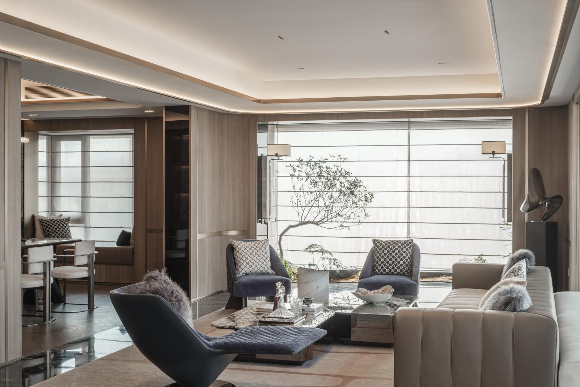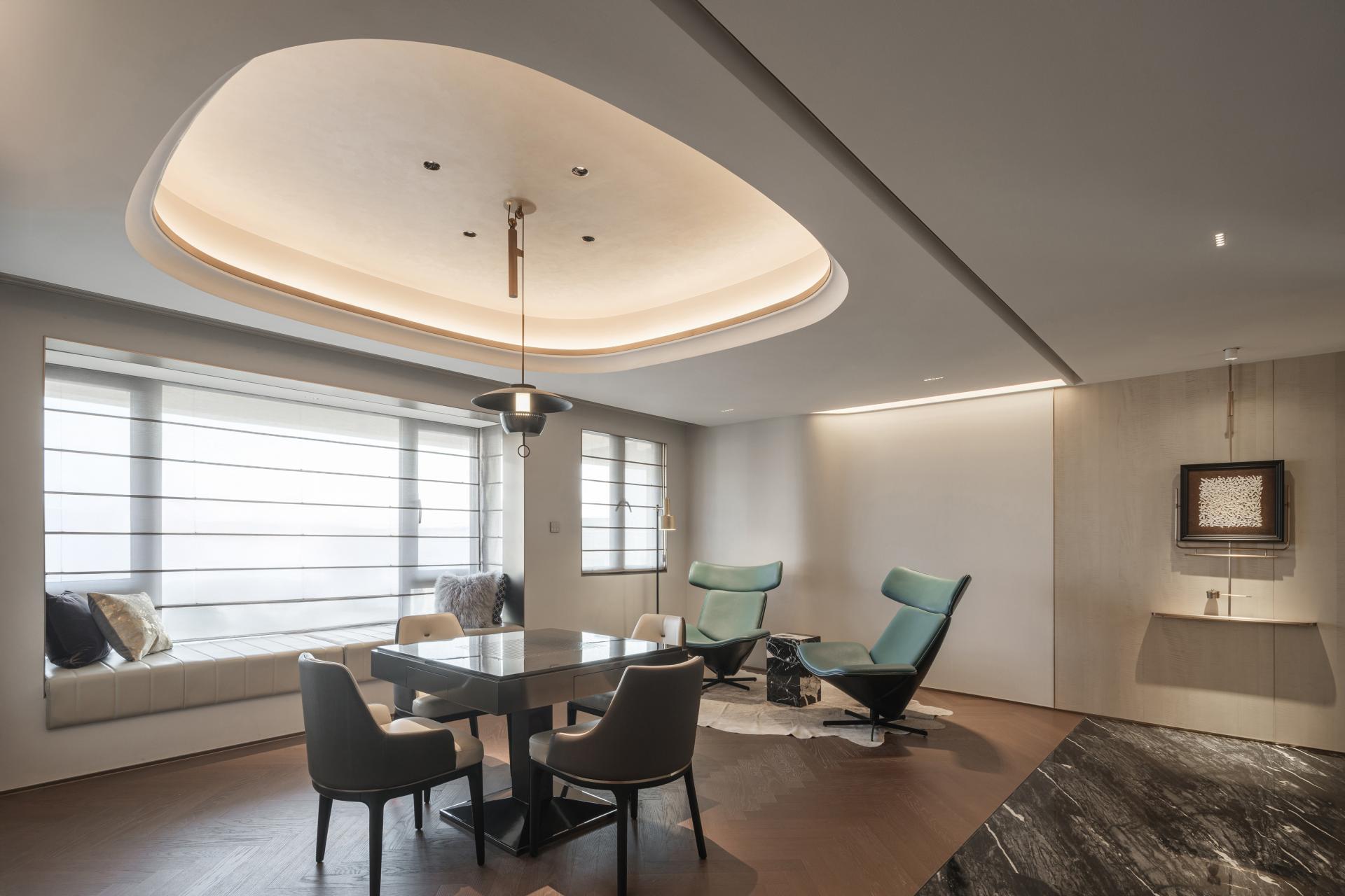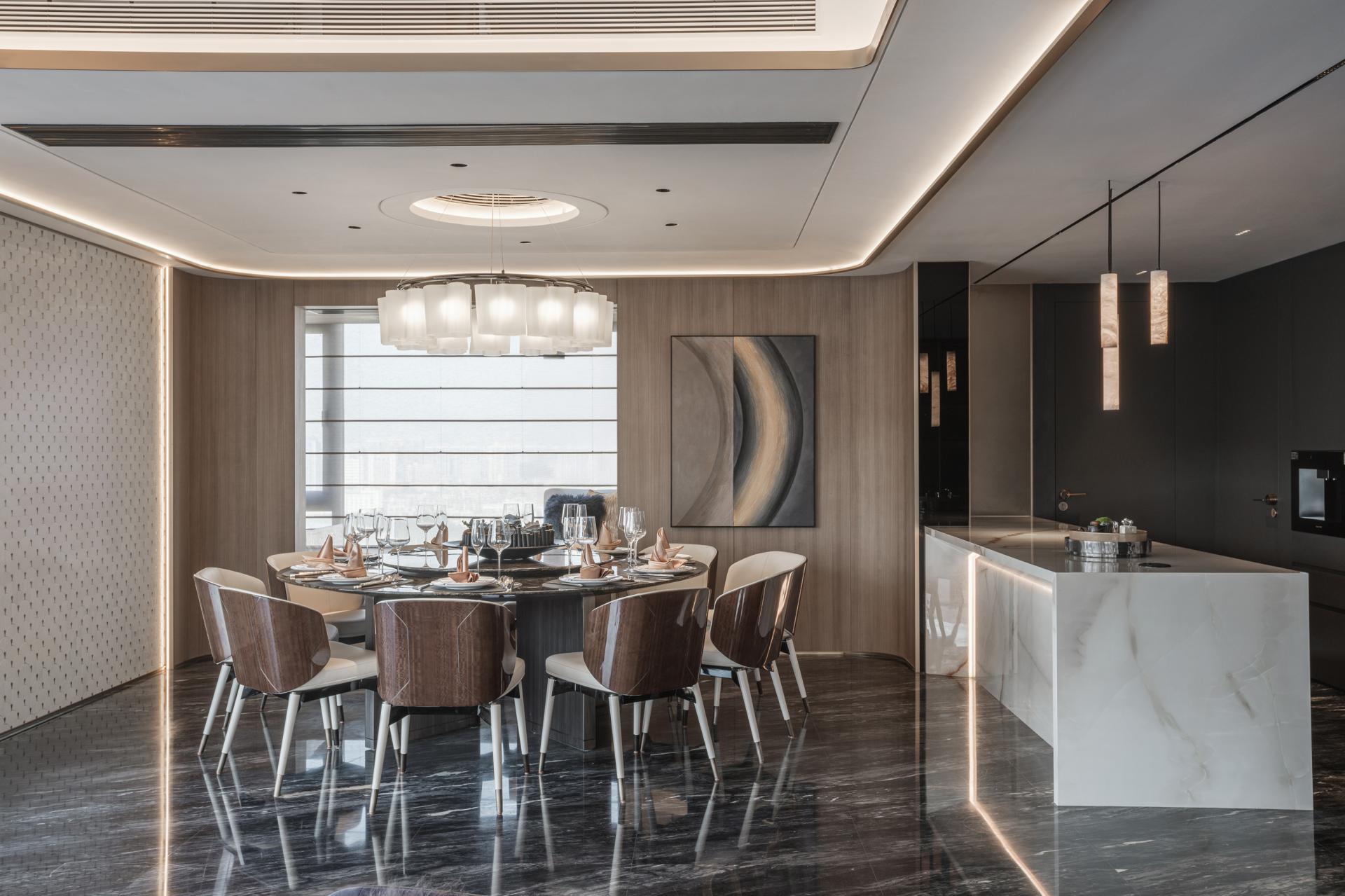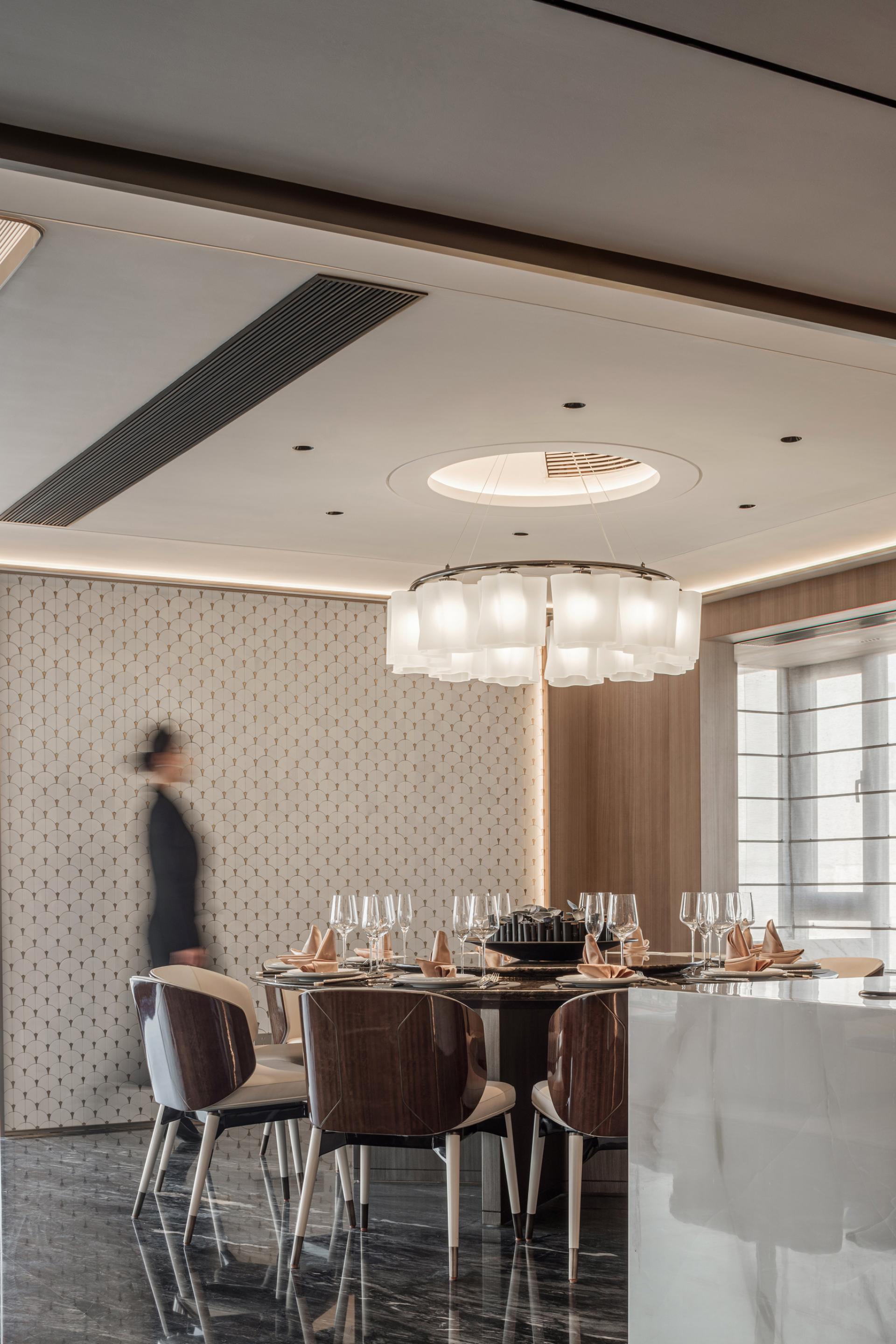 An open-plan layout introduces flexibility, breaking away from traditional spatial constraints. Geometric curves guide circulation and interaction, fostering an atmosphere that is both elegant and dynamic.