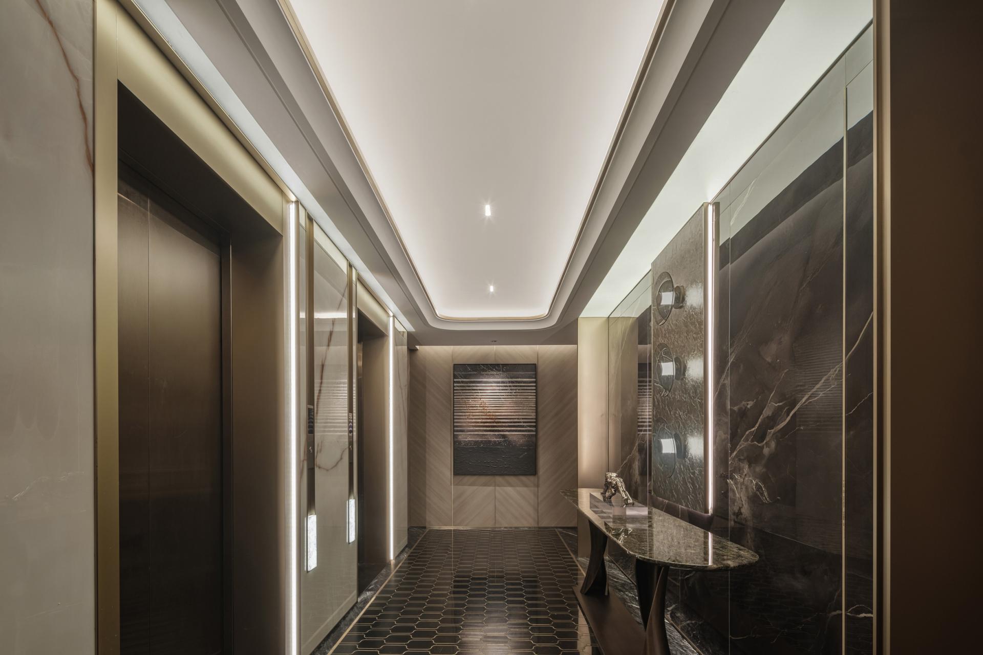 Premium materials such as white mosaic, black marble, artistic glass, Puppe’s stone, and boxwood veneer are carefully selected to reflect craftsmanship and sophistication. Bulgari-inspired mosaics add a jewel-like brilliance, enhancing the club’s artistic identity.