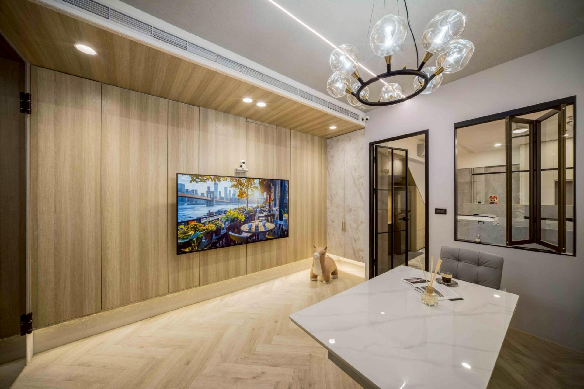The interior featured extensive material juxtaposition. The designer selected materials with similar hues and textures and applied them across the ceiling, walls, and floor. This approach not only showcased the distinctions among materials to clients but also created an experimental playground that inspired creativity. Colorful decorative tiles and vibrant accent panels were layered throughout the space, symbolizing the free exchange of ideas and ongoing creative energy among the design team. This concept also echoes the brand’s name, WAN MEI, which signifies not only the pursuit of "perfection" in design but also the refinement of detail and comfort within compact spaces.