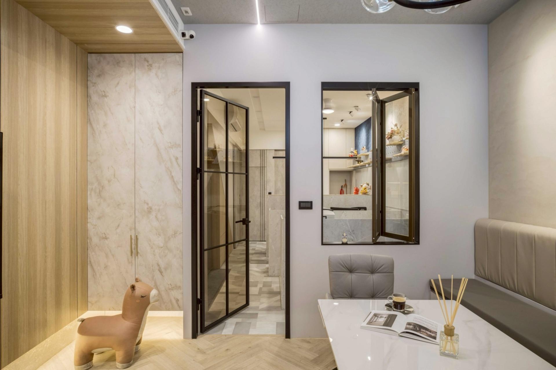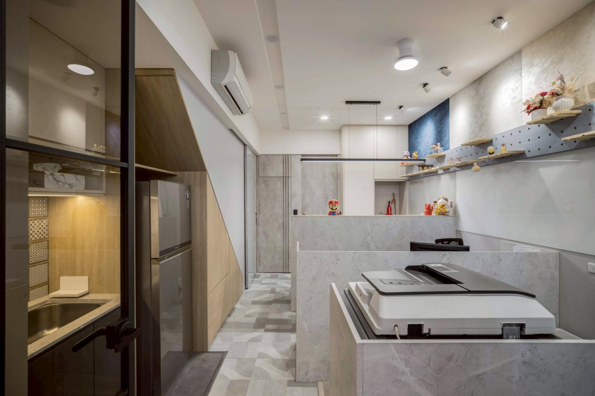 The project is situated within a typical narrow and elongated Taiwanese shophouse. The designer, also the brand founder and creative lead, aims to break away from the conventional image of an office. The goal is to immediately evoke a distinct atmosphere for visitors upon entry while offering employees a comfortable, pressure-free place to work and think. The entrance facing the street is designed as an open meeting area, blending the ambiance of a residential living room. Large windows and frosted glass are used to introduce soft natural light, achieving a translucent yet private effect and turning the space into a highlight of the street.