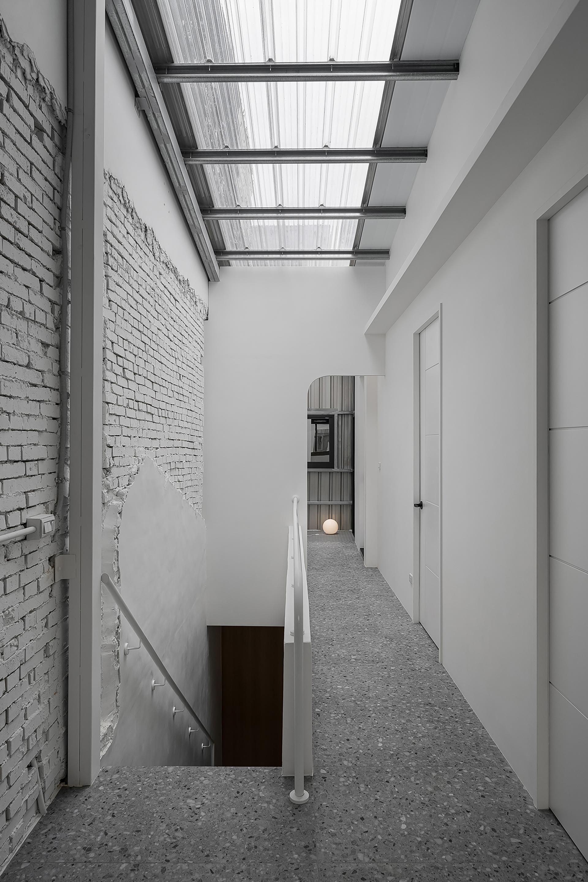 “Taiwanese Light Impressions” is a renovation project for a 50-year-old townhouse in Taoyuan. The design centers on the interplay of “light” and “memory.” Facing challenges such as a narrow layout, poor lighting, and aging structure, the designer opened the front and rear courtyards, added skylights, and used glass brick in bathrooms to allow natural light to flow throughout the three floors.