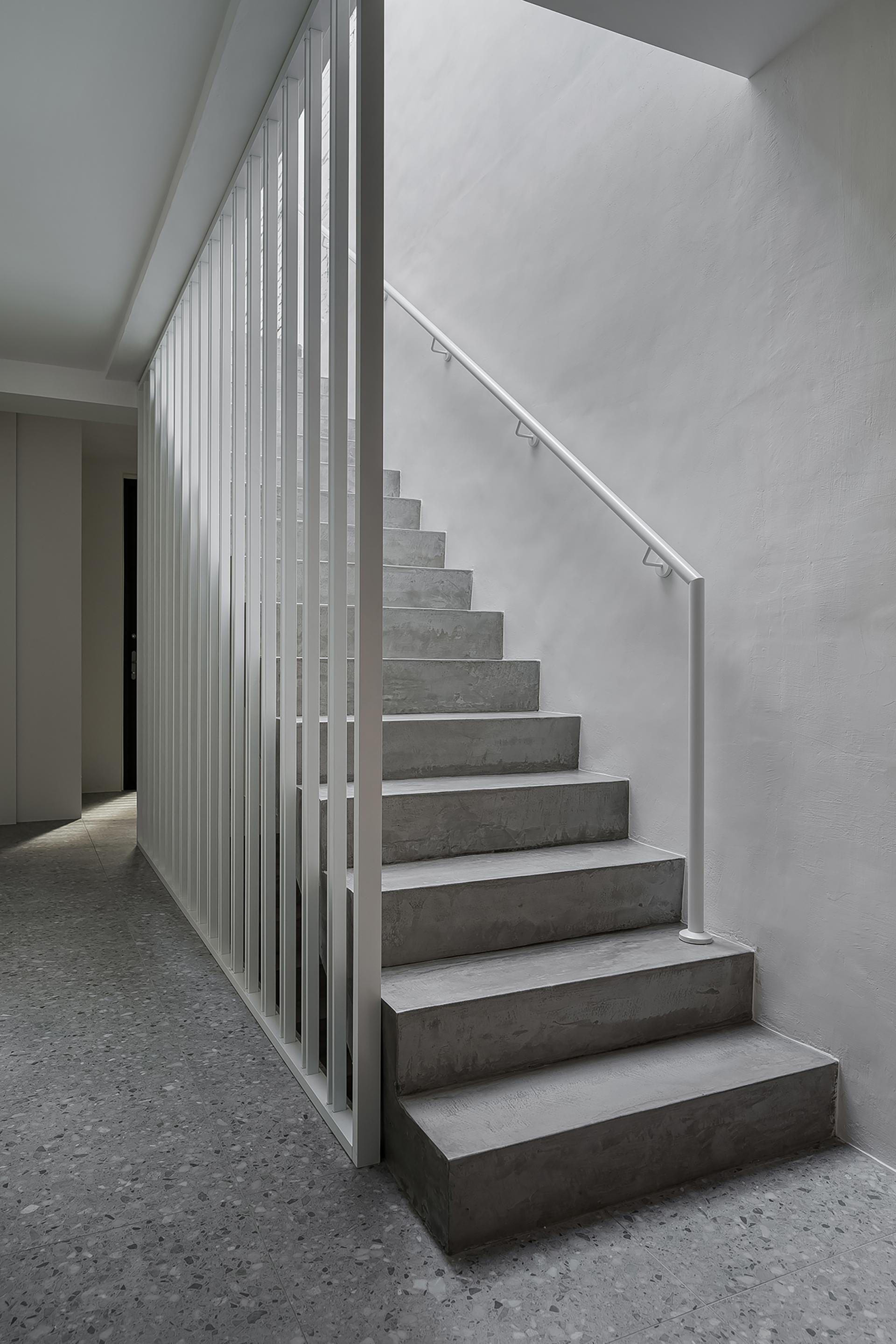 Original features like green marble floors, red brick walls, and staircase structures were preserved and restored through polishing and whitewashing. The color palette uses pure white and beige tones with curved features, rattan doors, and hollow railings to soften lines while maintaining the tactile warmth of traditional Taiwanese homes. Balancing function, aesthetics, sustainability, and memory, the design breathes new life into the old house, creating a dialogue between modern living and local architectural legacy.