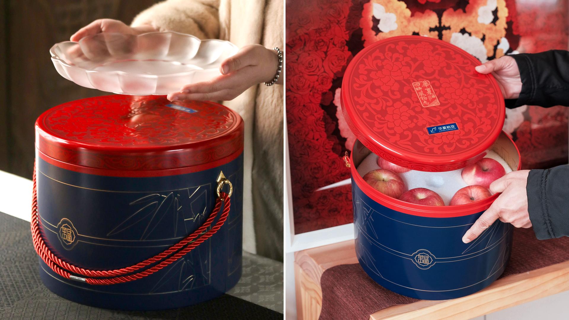 This gift box draws inspiration from the design of traditional Chinese lacquered food containers, employing modern techniques to recreate intangible cultural heritage elements, blending classical Chinese aesthetics with contemporary living. The packaging structure utilizes tinplate embossing to replicate the rich texture and intricate patterns of lacquerware, breaking away from conventional paper or plastic packaging norms. It not only enhances the product’s distinctiveness but also infuses it with profound cultural resonance. In the context of festive gifting, it exudes both ceremonial elegance and deep cultural significance.
