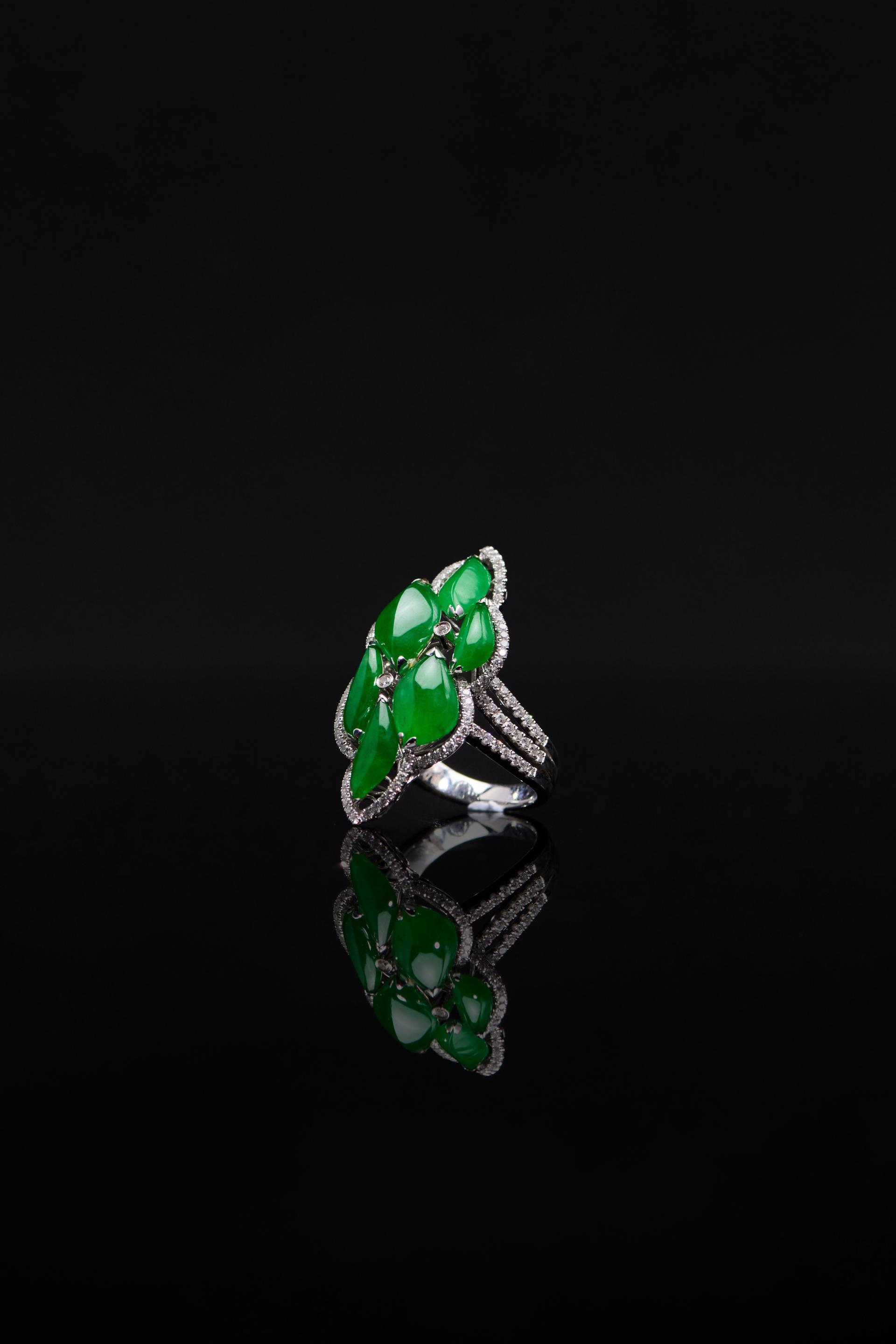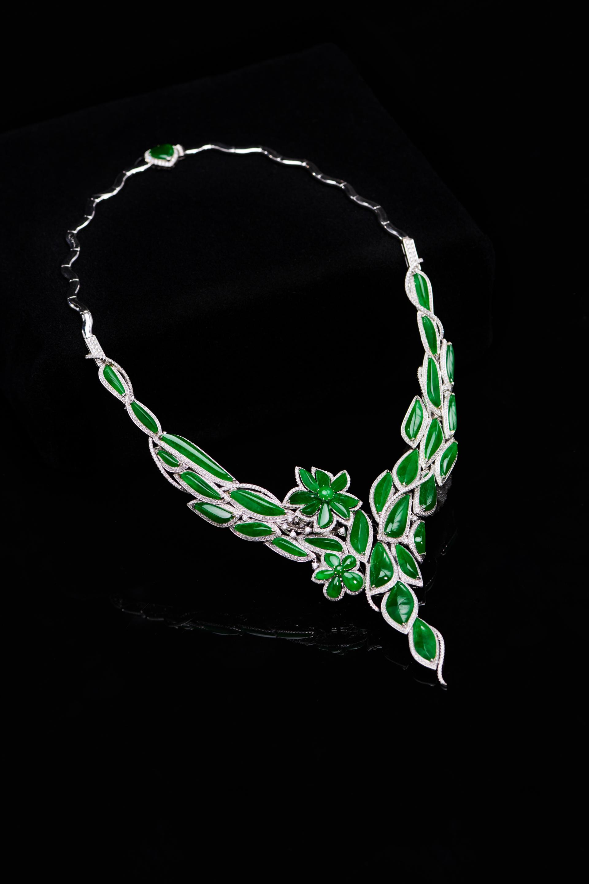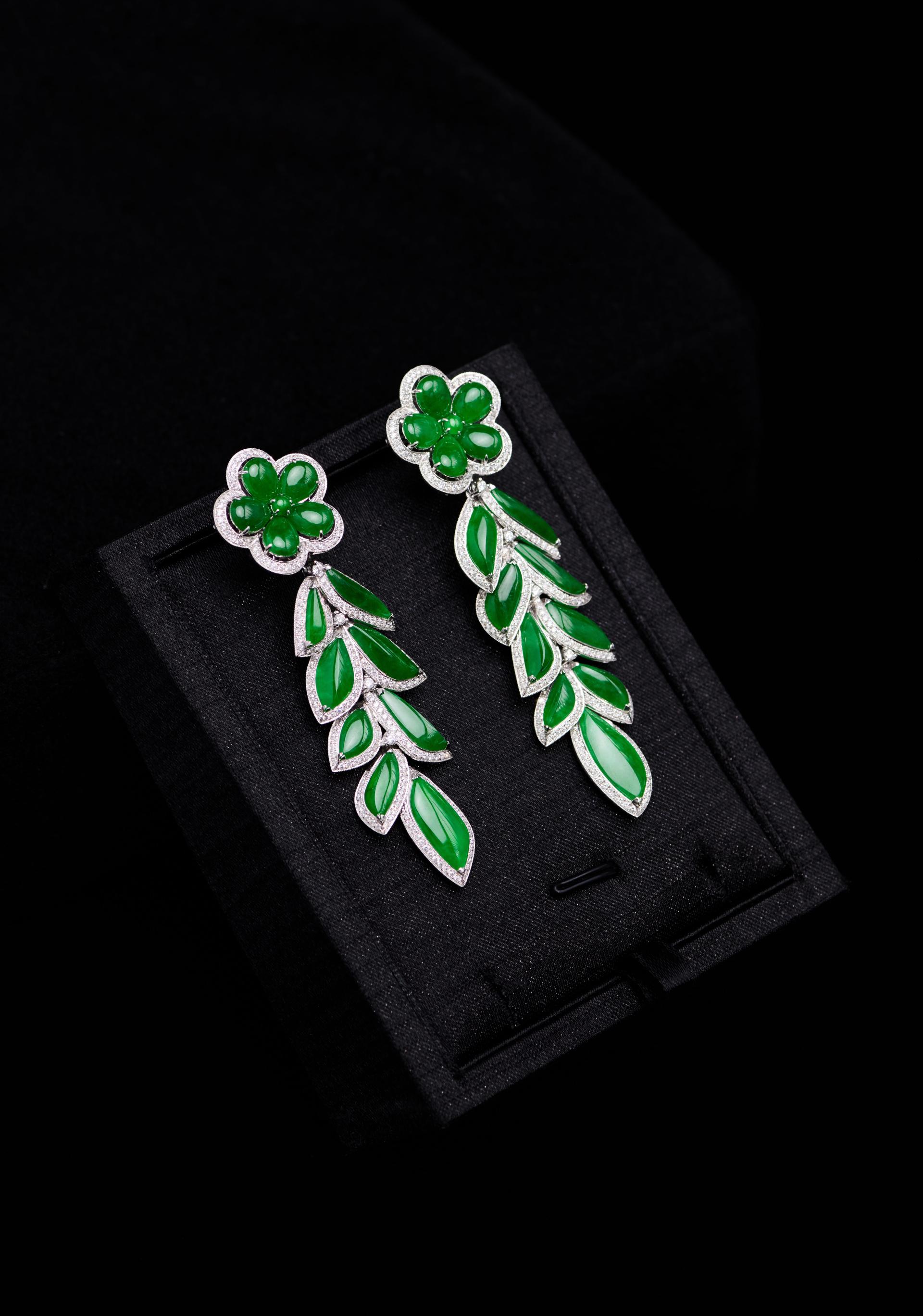 The Bloom Whisper draws inspiration from the delicate dance of flowers, their graceful charm, and their refined eloquence, embodying the elegant poise of jewelry that blooms from within and radiates outward. Centered on natural jadeite, the pieces feature a translucent green hue, warm and lustrous like jade, with a subtle glow that brims with vitality. Evoking the quiet blossoming of verdant floral shadows in a tranquil wilderness, the collection exudes a sense of dynamic elegance and refined serenity.