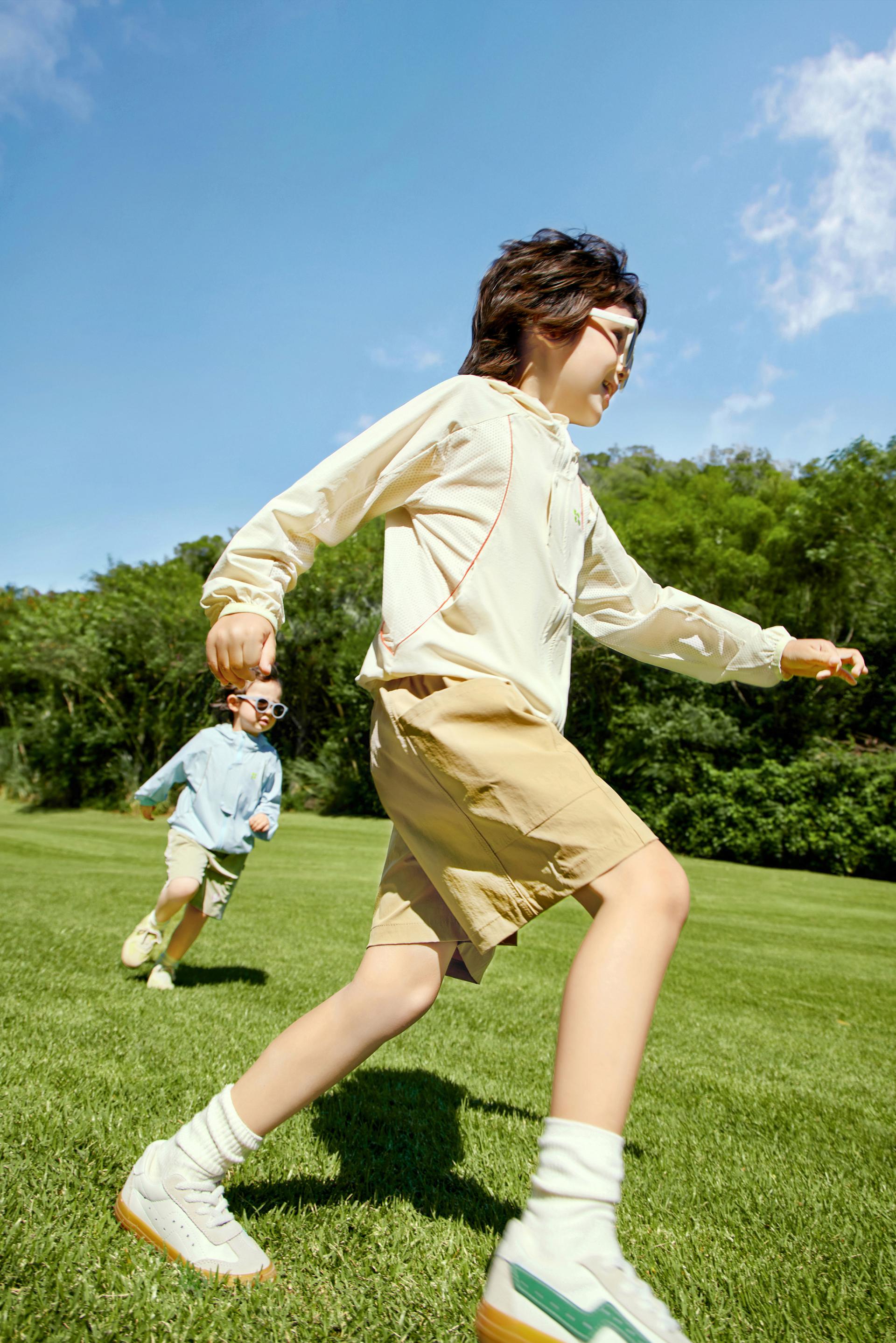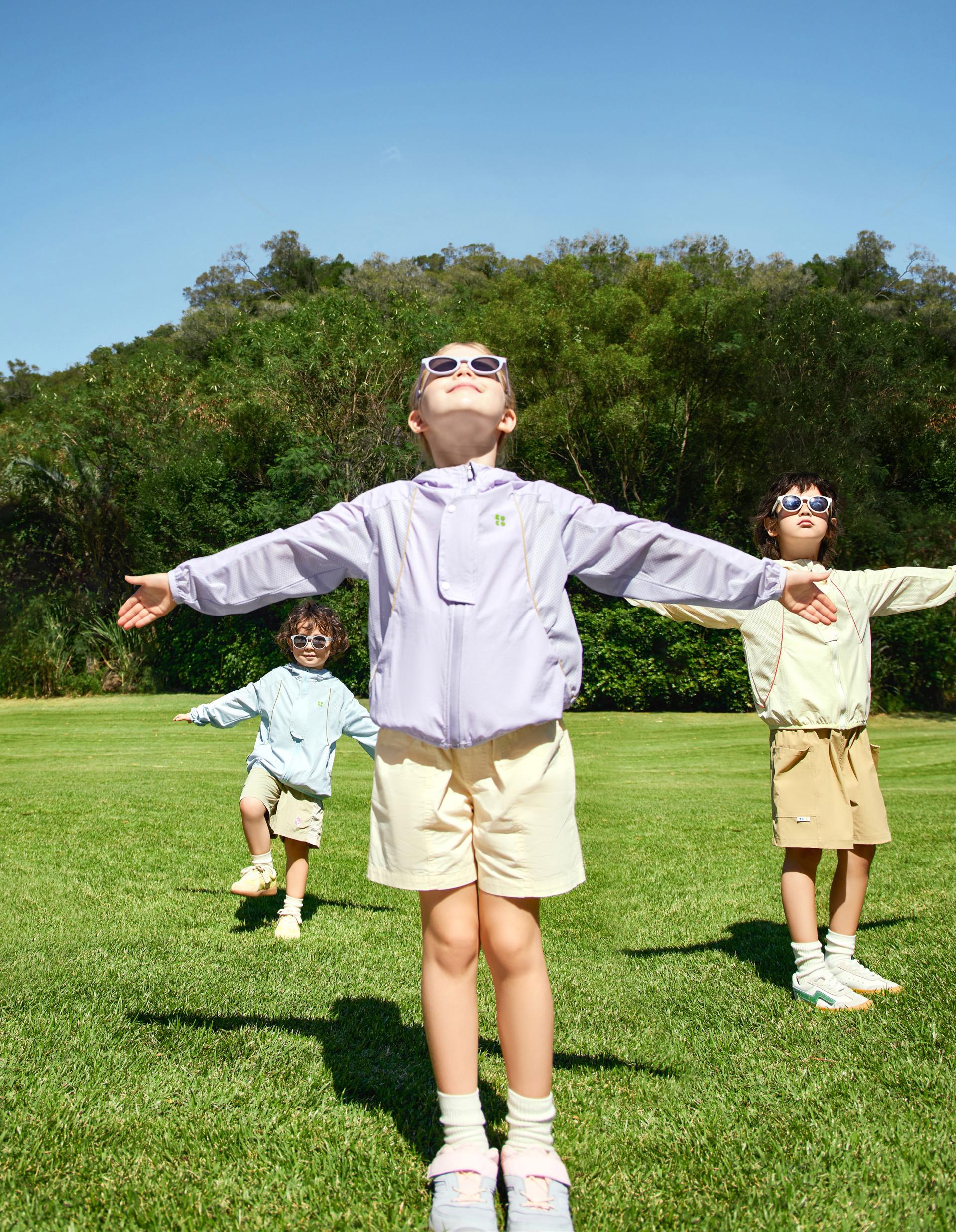 TiO2 UV-blocking factors are directly woven into the yarn to maintain an impressive UPF 91, a UVA protection factor of 2.88 % and a heat shielding rate of 45.1% even after 1,000 washes, ensuring superior protection for delicate young skin. Additionally, cooling agents are embedded into the yarn core to craft an intrinsically temperature-regulating material. With a 0.27 cooling coefficient (maintained through 1,000 washes) and full-mesh construction, it creates instant "micro-ice tunnels" for rapid heat dissipation, delivering both tangible coolness and visual freshness. The garment's strategic micro-perforations and large-mesh sweat zone panels achieve an outstanding 208 mm/s air permeability and 13,200 g/sq.m./24h moisture-wicking performance, allowing children to stay cool and comfortable even during active outdoor play under intense sunlight. Moreover, this product revolutionizes traditional chemical-based antibacterial methods by utilizing photon broadband irradiation to alter the molecular structure of the yarn, forming a "super-powered antibacterial shield". Even after 1,000 washes, it maintains antibacterial performance far exceeding the 7A-grade standard, offering unparalleled safety and purity. This innovation perfectly embodies the brand's commitment to "healthy care" for children.