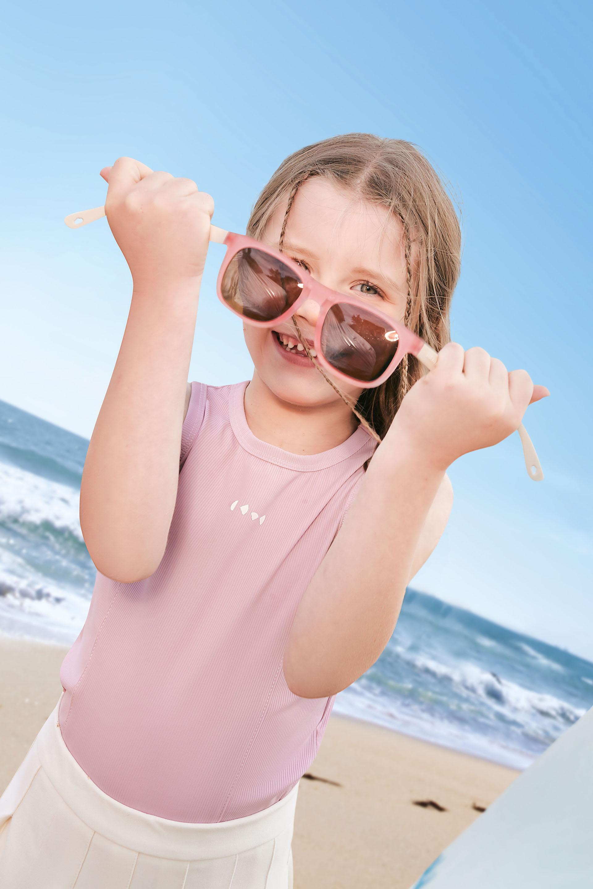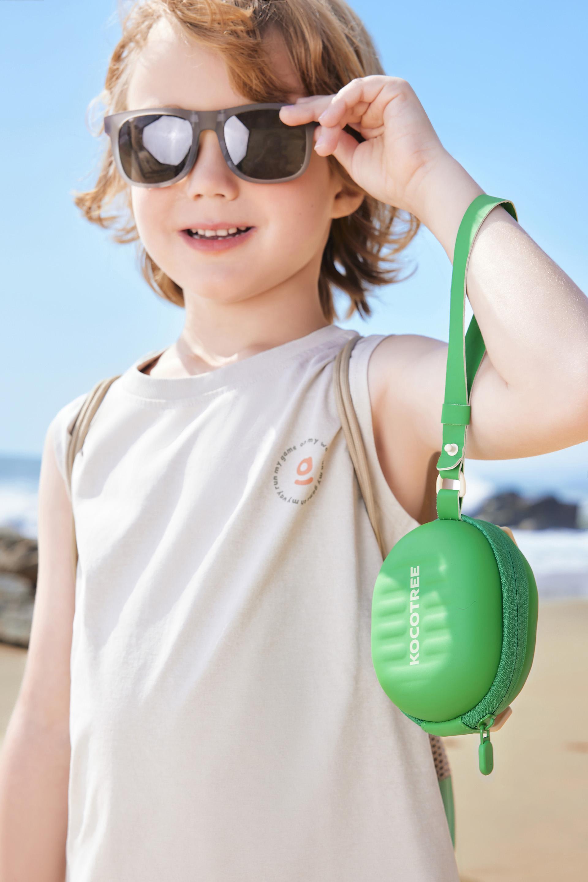 Kocotree Foldable Aviator Sunglasses are tailored to accommodate children's facial development. The 8° frame tilt system and louver-inspired polarization enhance visual clarity and reduce light interference during outdoor activities. The sweat-guiding nose pads are crafted with soft, flexible material, ensuring a comfortable and lightweight fit that prevents slipping even during vigorous exercise or sweating. The modular design incorporates practical accessories like detachable anti-loss straps and a foldable storage case, transforming functionality into trendy designs. Striking color-block contrasts ignite children's interest, enhancing their outdoor protection awareness.
