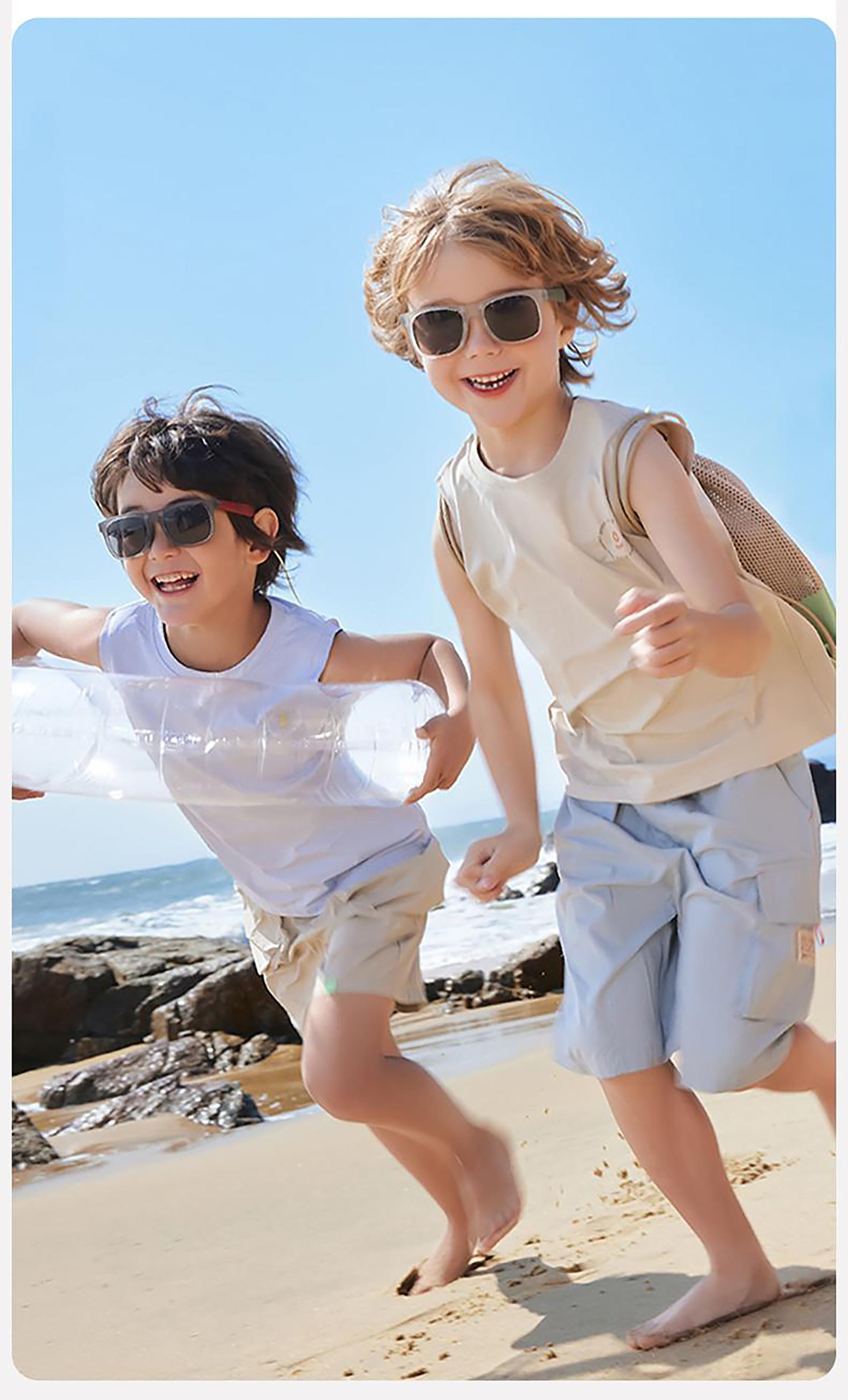 The frame harnesses the hyper-flexibility of TR and 360° rebound properties of TPEE, resulting in a lightweight yet virtually "unbreakable, twist-resistant" structure. The smart triple-hinge folding mechanism enables compact storage and perfectly adapts to children's dynamic outdoor activities. The lenses feature a composite 7-layer optical protection system with UV400 coating, effectively blocking 99.9% of harmful ultraviolet rays. Additionally, the polarized filters, leveraging the principle of natural light filtration, eliminate glare from highly reflective surfaces like water and snow. This ensures optimal visual clarity for children while minimizing ciliary muscle fatigue.