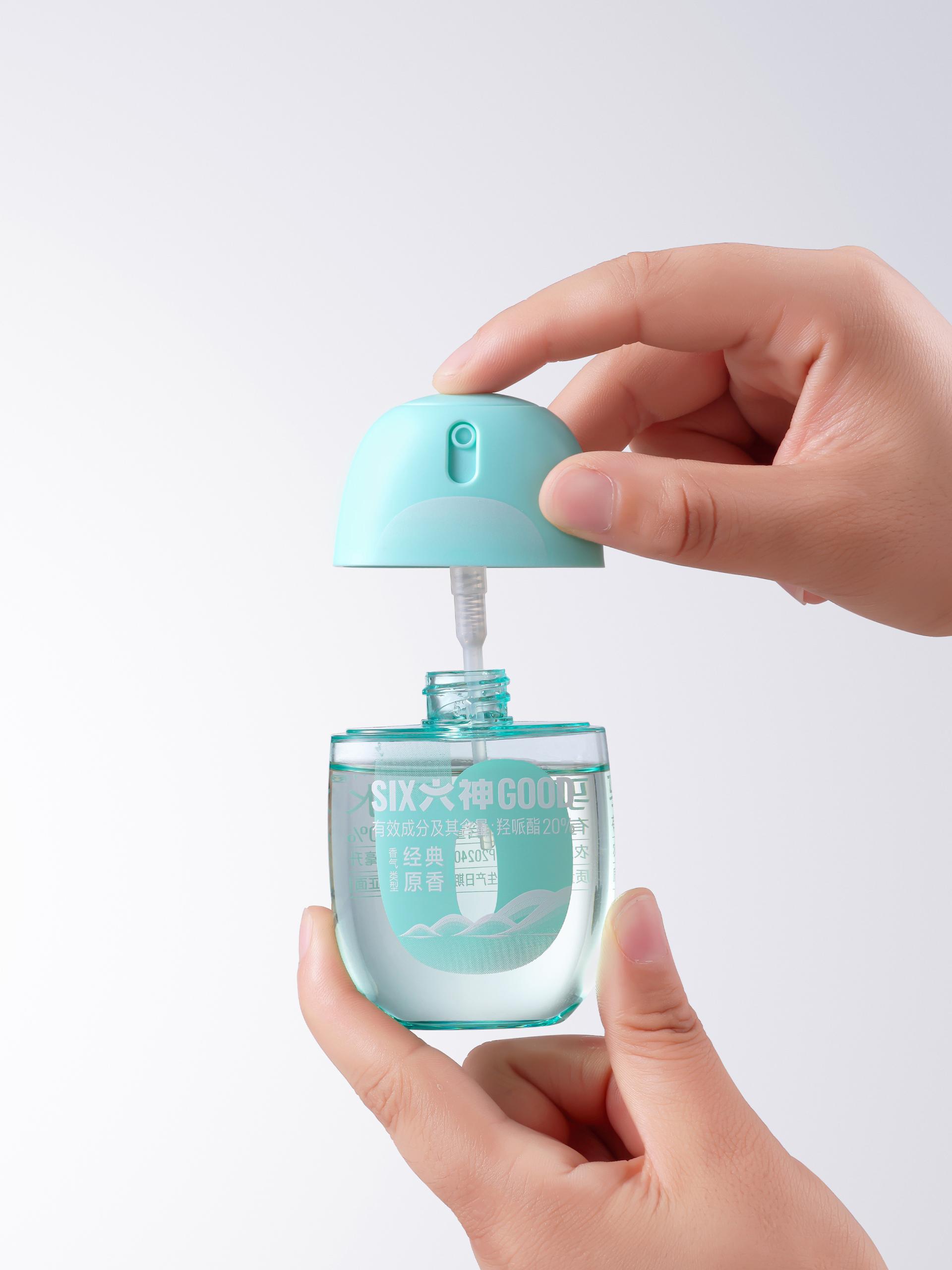 At the core of the design is a creative reinterpretation of the curved numerical “6” from the brand name, which has been reimagined as an egg-like silhouette that blends futuristic flair with approachable charm. This transformation not only gives the product a sleek, organic form but also reflects the brand’s deep roots in traditional herbal wisdom, as embodied in the name “Six Good,” which originates from its signature formula of six carefully selected herbal ingredients and the philosophy of natural healing. By echoing the number “6” throughout the design, the packaging bridges cultural symbolism with modern visual language. In Eastern culture, the egg symbolizes renewal and protection—a metaphor that reinforces the role of Six Good Mosquito Repellent Florida Water as a trusted “Summer Guardian.” Ergonomically crafted, the egg-shaped bottle naturally fits common grip styles among Asian users, with a dual-curved structure ensuring comfortable one-handed use, even for children. These thoughtful details highlight the product’s positioning as a convenient, lightweight essential—always within reach, like a personal “portable egg.”