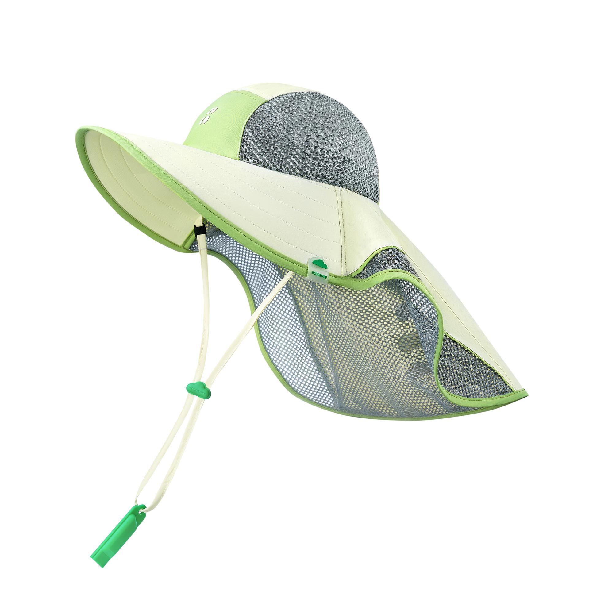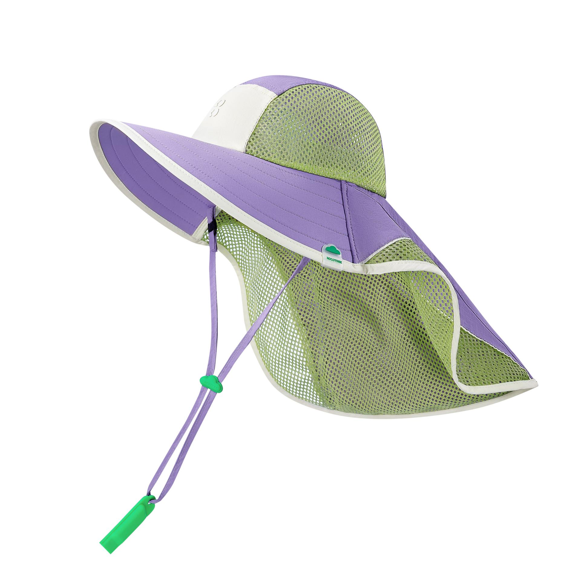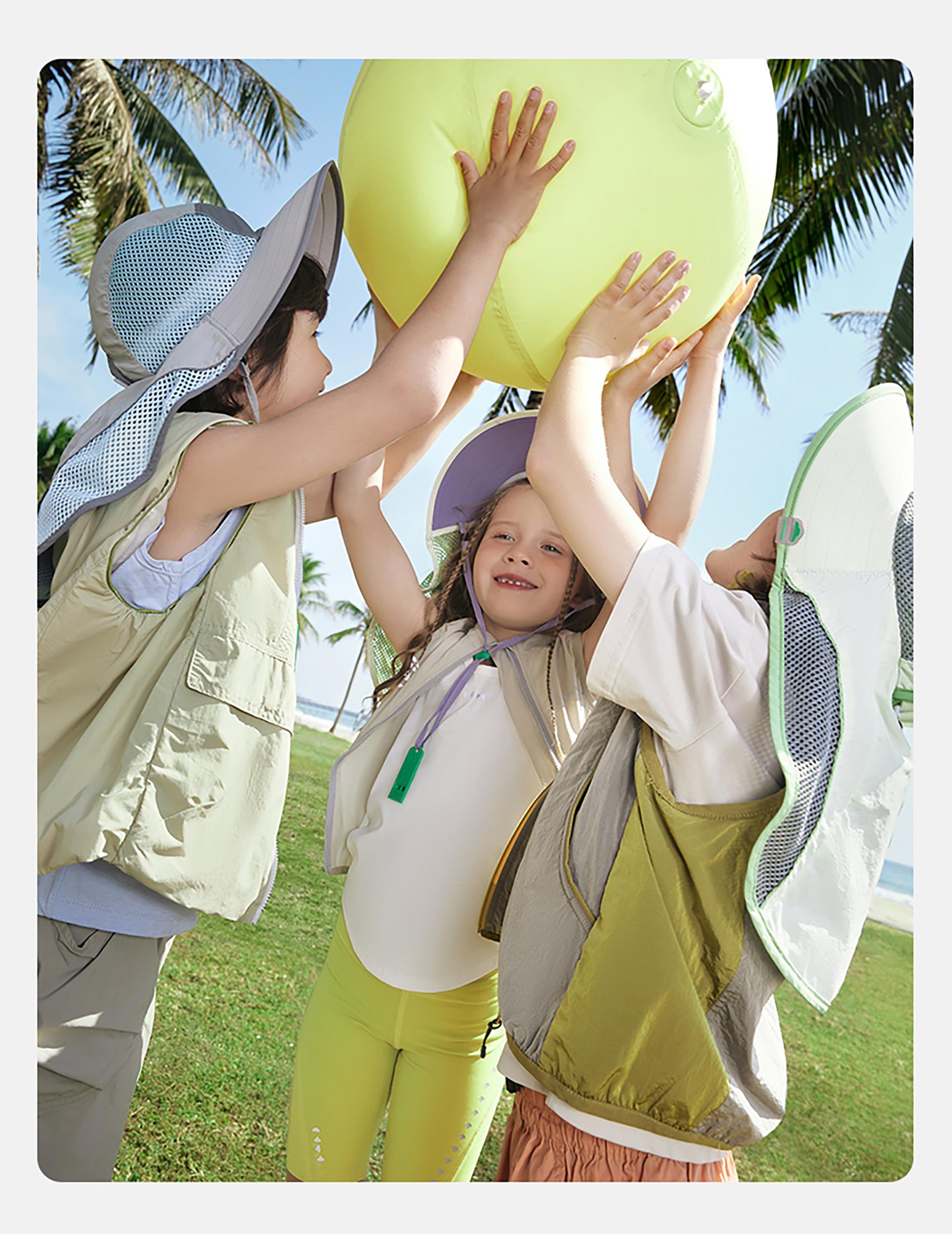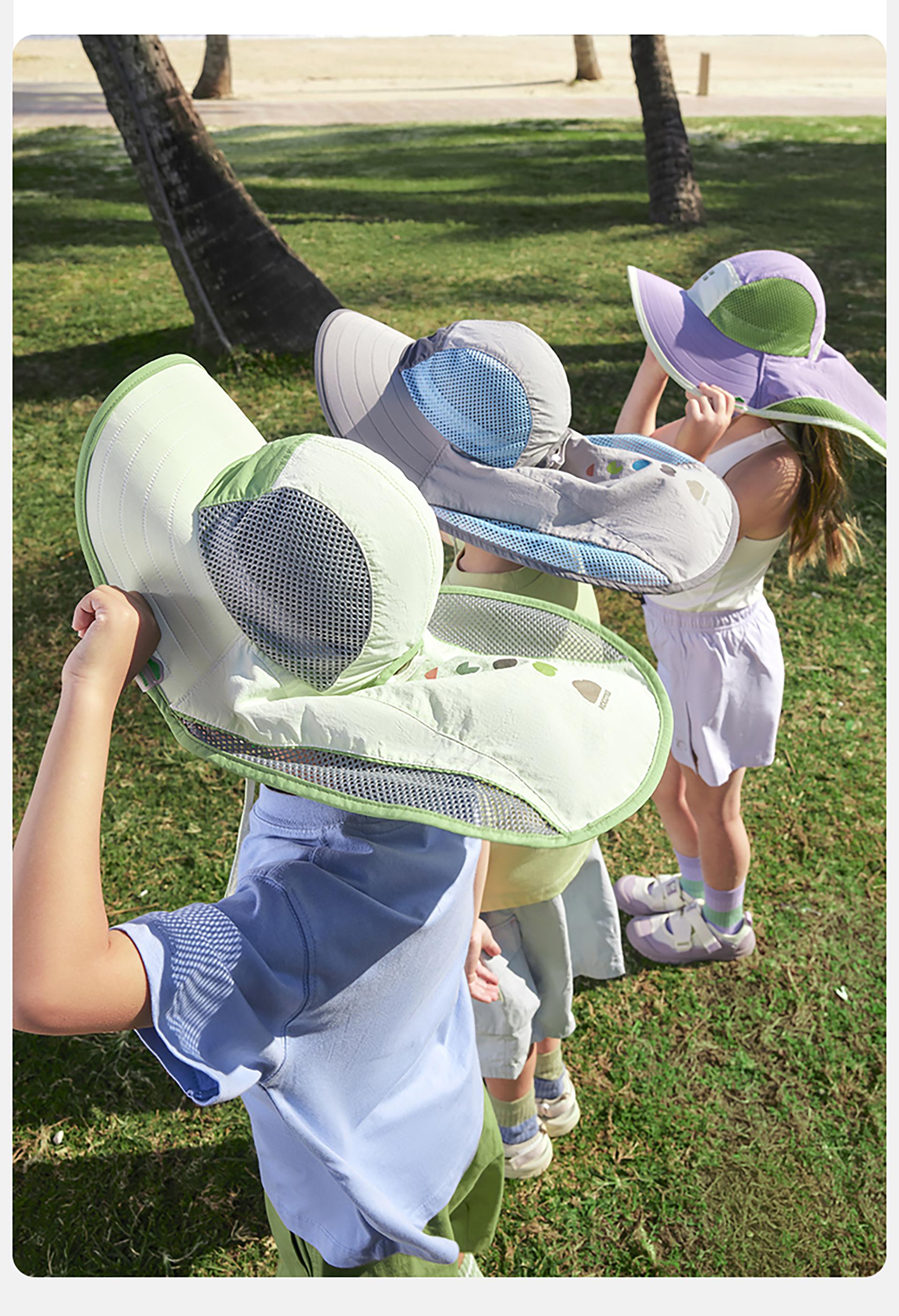 The UV-sensitive color-changing materials and reflective printing technology transform outdoor UV intensity and low-light conditions into real-time visual alerts, turning passive sun protection into active, interactive safety. The oversized brim and shawl design provide 360° head-to-shoulder coverage, while the adjustable cloud-shaped snap buttons and windproof straps ensure a secure, comfortable fit during active play. Additionally, the detachable safety whistle crafted with food-grade materials offers a reliable emergency response tool, blending practical functionality with thoughtful care.