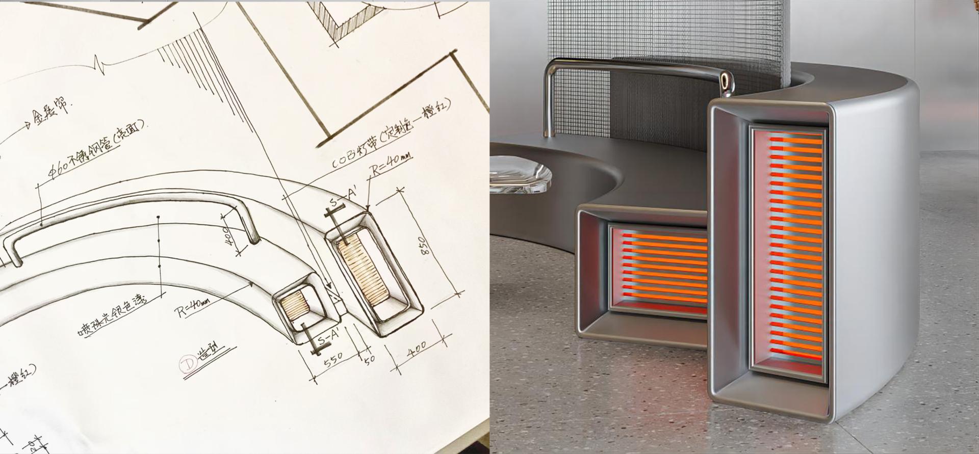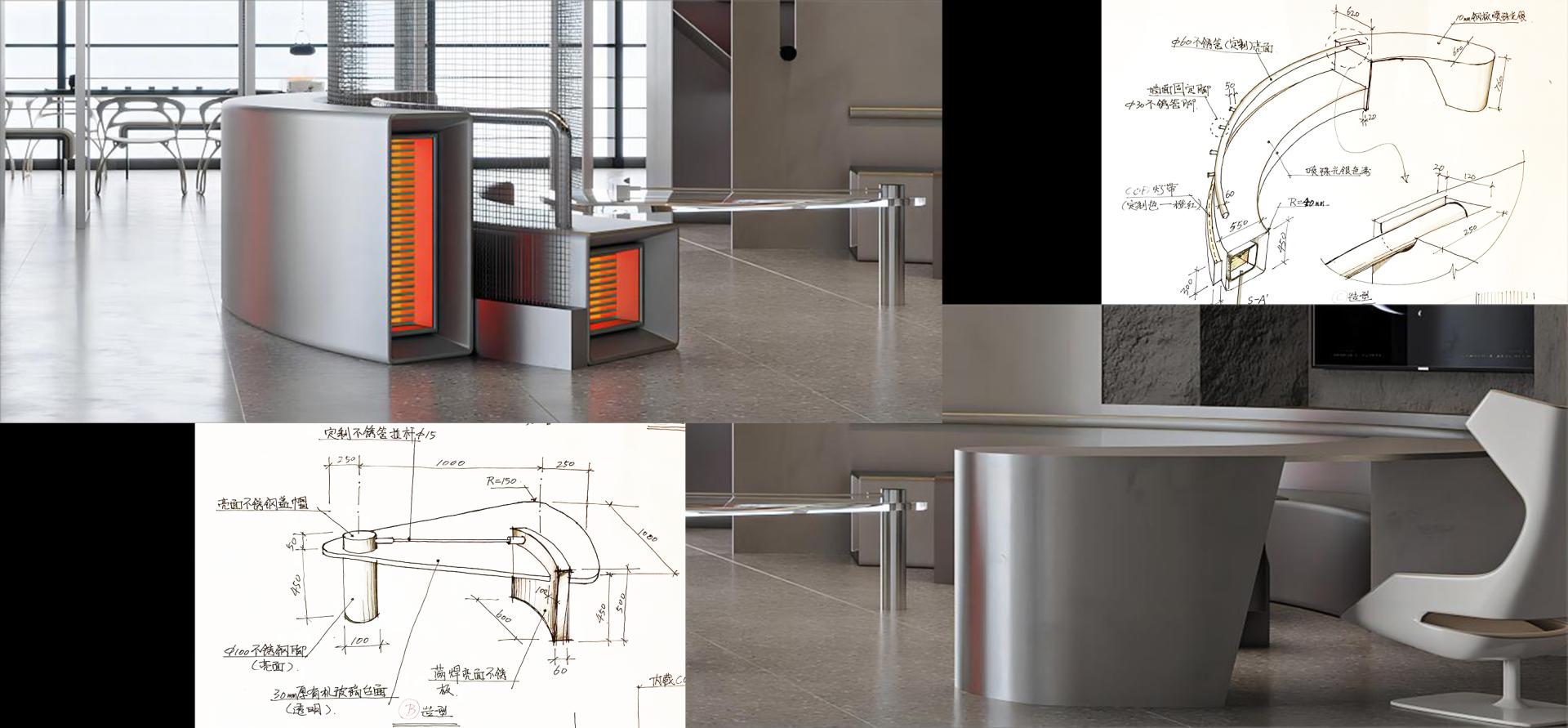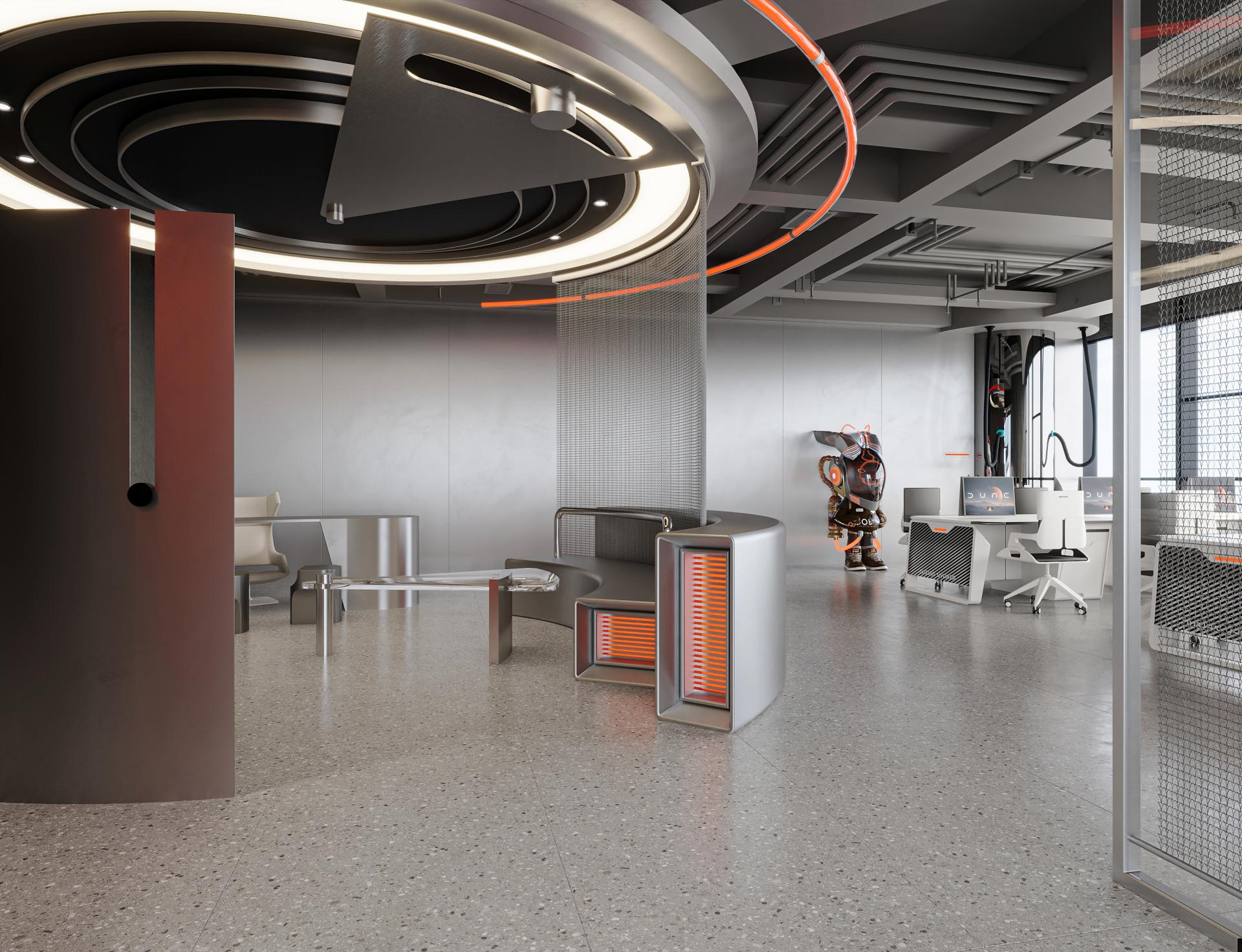ZNINI is a cross-border company specializing in the trade, maintenance, and appraisal of international designer toys and collectible figures. The design of its headquarters reflects the company’s futuristic vision and niche cultural identity, blending futurism with mecha aesthetics through a striking juxtaposition of sleek metals and rugged stone textures.